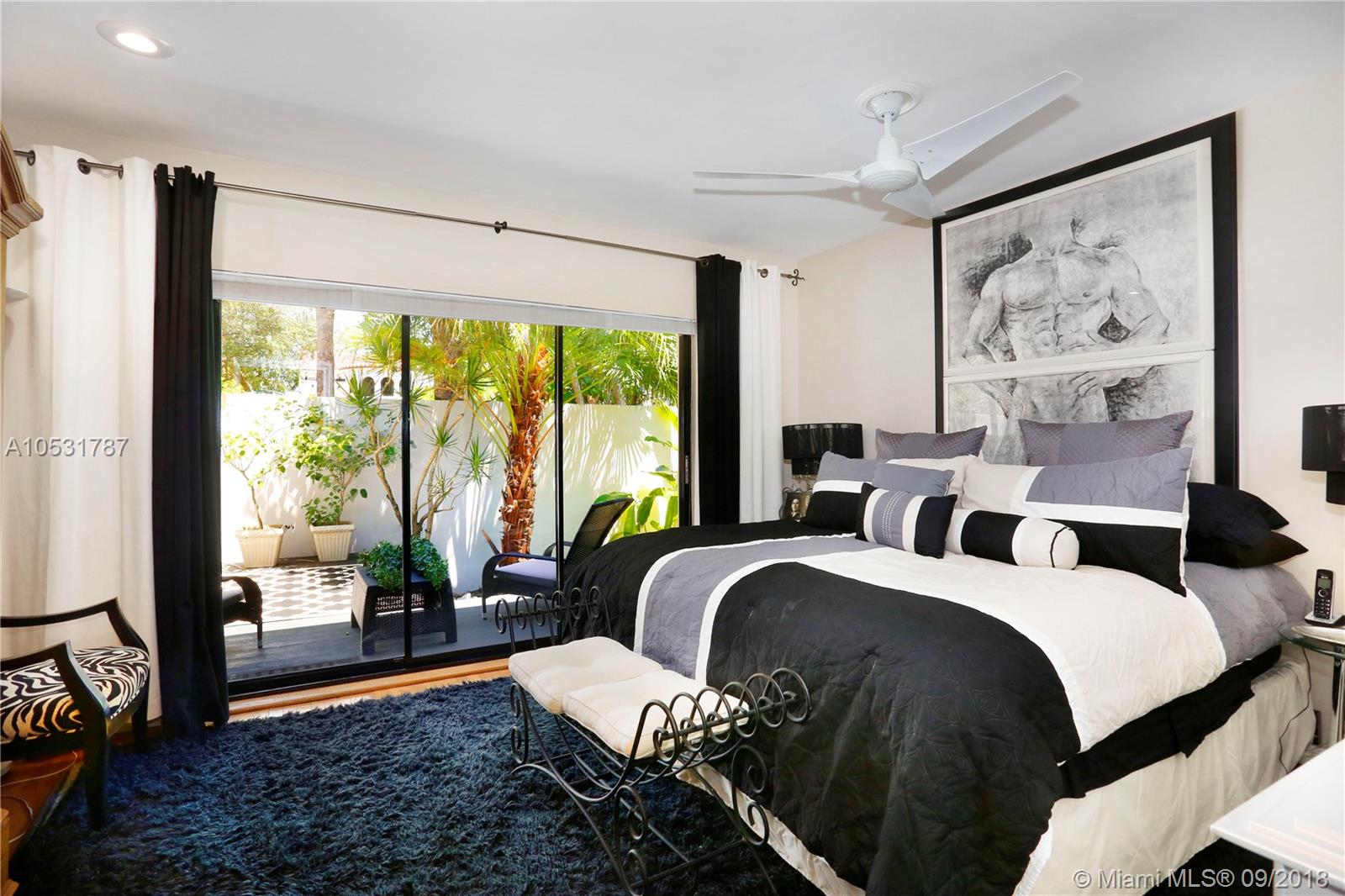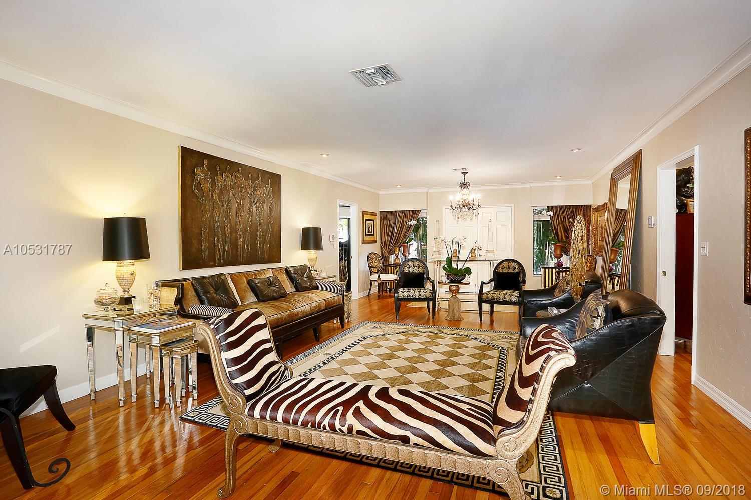 An ultra-private, walled & gated retreat in prestigious South Coconut Grove. Stunning, light-filled living areas feature volume ceilings & walls of glass, creating a seamless blending of indoor & outdoor spaces. Recently renovated w/ luxury finishes & fixtures throughout. Elegant formal living & dining room overlooks spectacular pool with fountains and tumbled marble deck surrounded by up-lit palms. Sleek euro-style kitchen w/custom wood cabinetry, granite countertops & high-end stainless appliances.Luxurious master suite features walk-in closet/dressing area, private terrace, 12’ stone shower & jetted tub. Ample parking: covered parking for 2 cars & circular driveway. Walk to the Grove village center’s boutiques, cafes and bayfront parks & marinas. Minutes to downtown, MIA & the Beaches.
