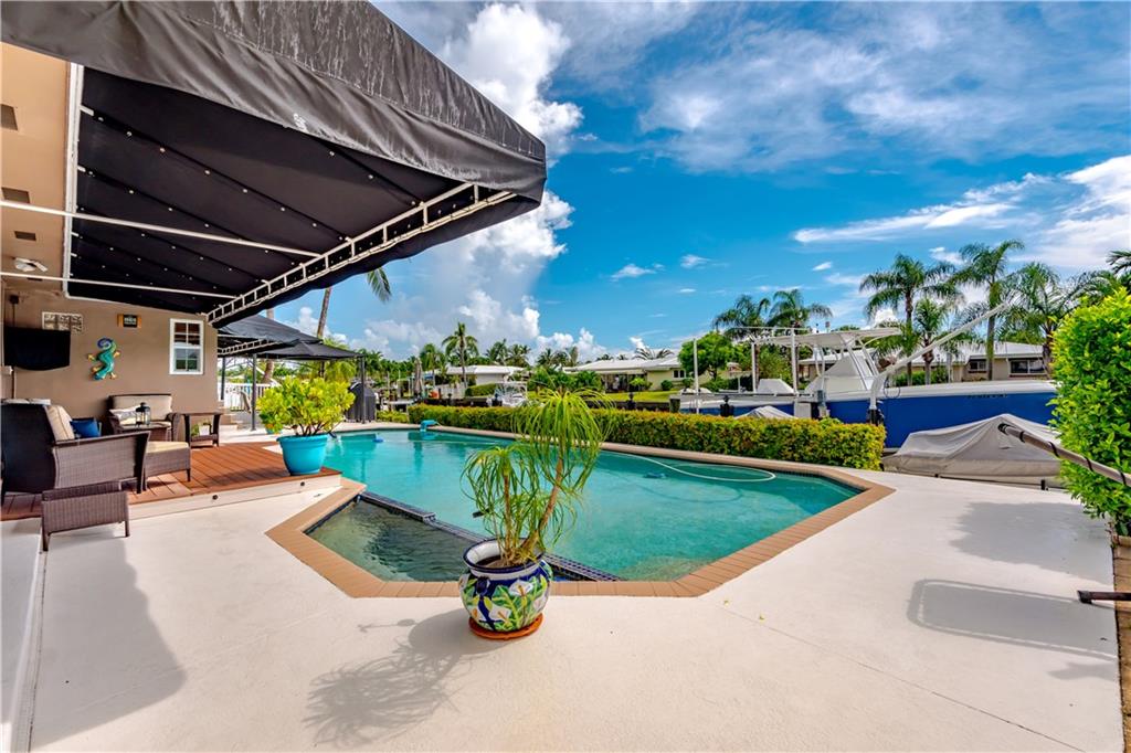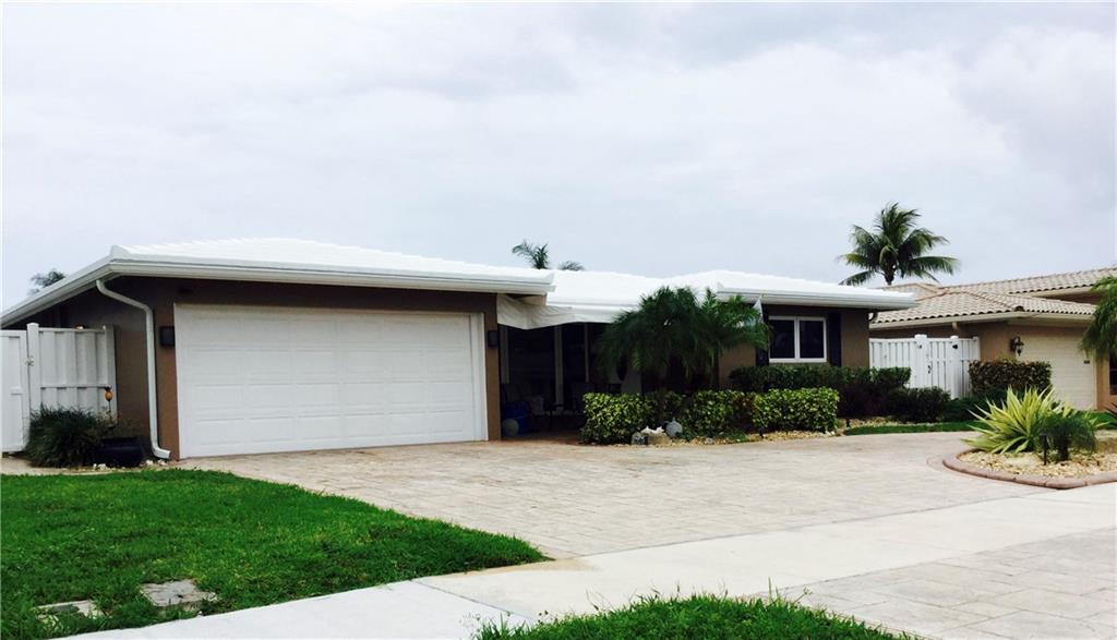 Enter this beautiful waterfront home to a wall of windows overlooking the oversized pool and jacuzzi, new 70' TREX dock with 10,000 pound boat lift, 800 pound jet ski lift, water and 50/30 AMP electricity at dock. A boater's dream with 1 high fixed bridge at Federal Hwy. Impact windows and doors, whole house backup generator, electric and plumbing have been updated. Open floor plan! Gorgeous updated/upgraded kitchen with breakfast bar and wine chiller, oversized pantry with pullouts. 2 upgraded bathrooms, one cabana bath with a sky light, his & hers master bathroom. 3 big bedrooms (split plan), tons of storage. V-MAX 6 zone camera system. Everything you could want in your new home! Truly a special home that must be seen!