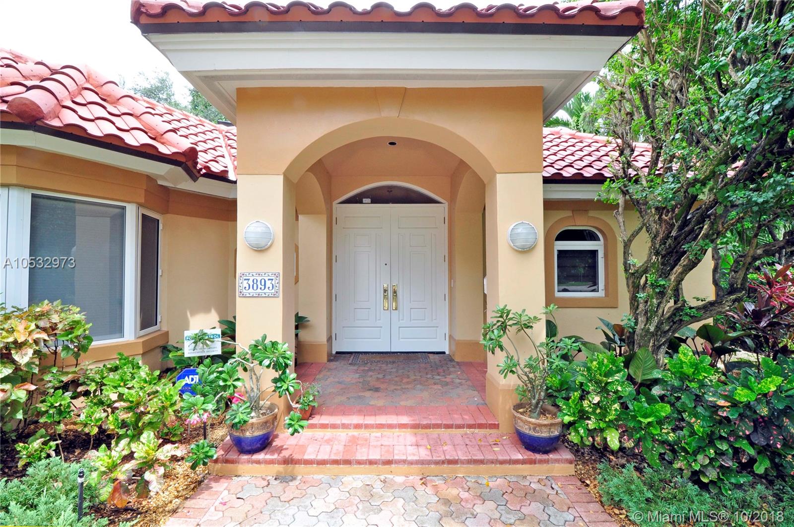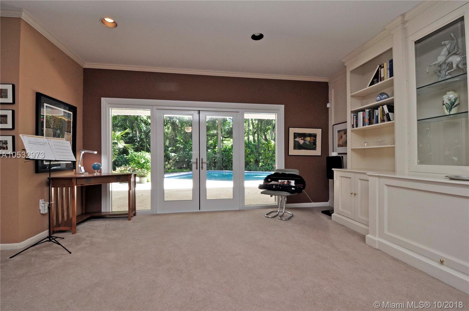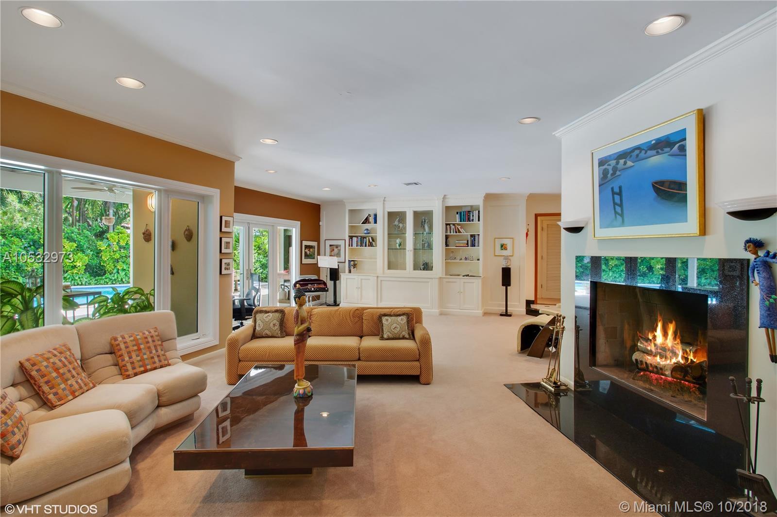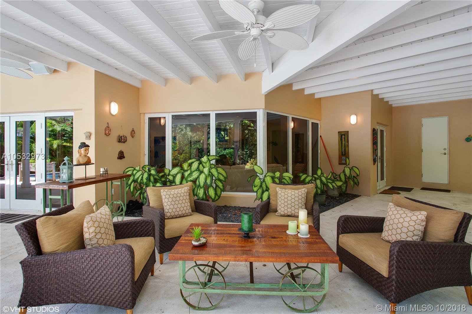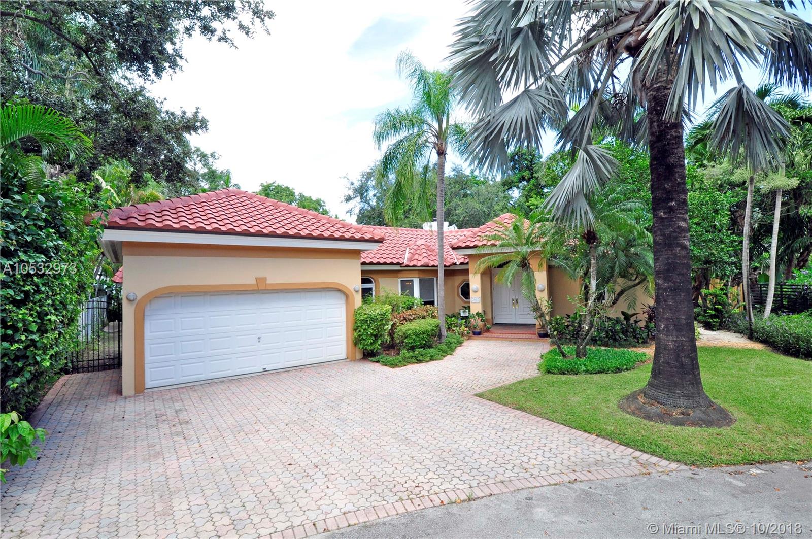 An amazing 3 bedroom 3 bath pool home located in desirable South Coconut Grove. Situated on a large 11,632 sf tropical lot inside a quiet cul-de-sac that is accessed only on a no-thru street. This architecturally interesting home has oversized impact windows & doors inviting grand vistas of lush landscaping surrounding the private fenced yard and pool. Moonlit nights treat all to quite a romantic event. Enter thru a foyer to the dramatic open living room, w/ fireplace, and formal dining room; allowing for free-flowing entertainment to the large covered patio,pool, & grounds or to the open kitchen & family room. The Master bedroom is huge, featuring large bath w/ marble/Coral Rock accents, & 3 double-sized walk-in closets. Two additional "split" bedrooms & garage complete this magical home!