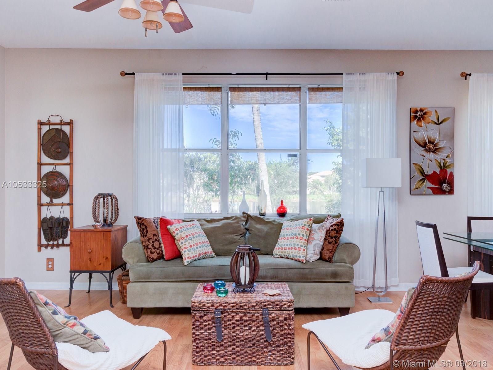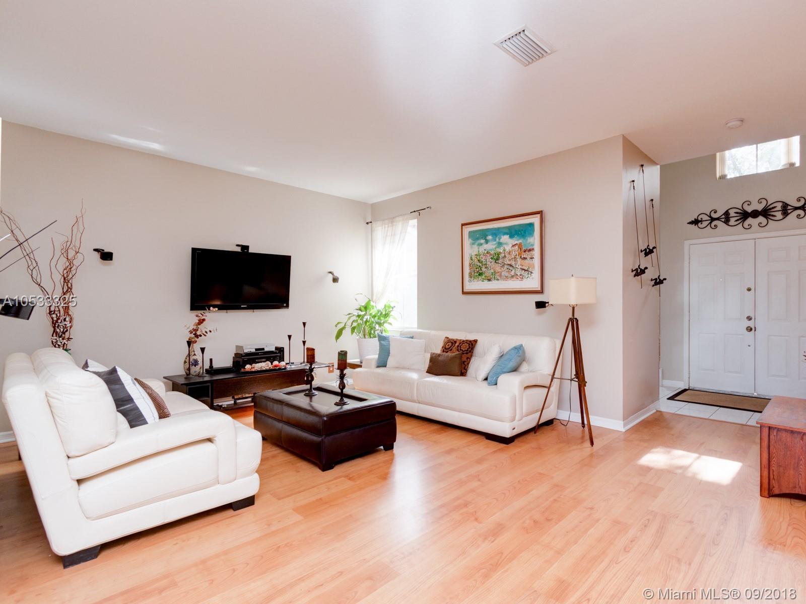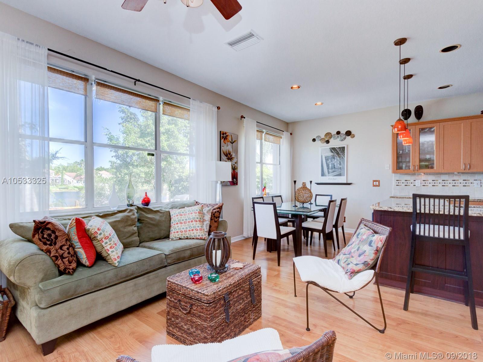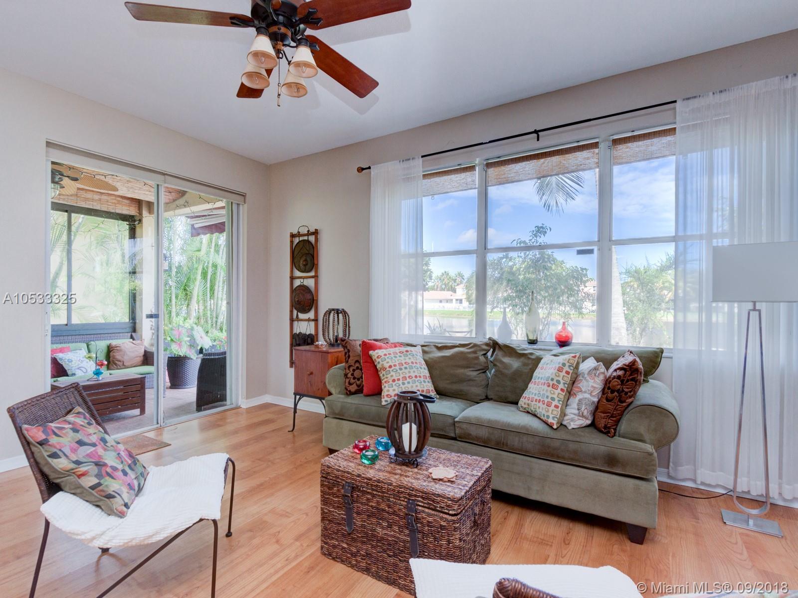 BEAUTIFUL AND LOVINGLY MAINTAINED TURNKEY HOME IN DESIRABLE WESTON! THIS HOME BOASTS WITH NATURAL LIGHT THROUGHOUT GIVING THE HOME A LIGHT AND AIRY FEEL. LAMINATE FLOORING DOWNSTAIRS AND UPSTAIRS. THE MASTER BEDROOM SUITE IS CONVENIENTLY LOCATED ON THE FIRST FLOOR .... SPACIOUS AND INVITING KITCHEN FEATURES WOOD CABINETRY AND GRANITE COUNTERTOPS. ACCORDION SHUTTERS THROUGH OUT, VERY PRIVATE BACKYARD WITH CAPTIVATING WATER VIEW IS PERFECT FOR ENTERTAINING. HOME IS WITHIN CLOSE PROXIMITY TO SCHOOLS, SHOPPING AND MAJOR HIGHWAYS.