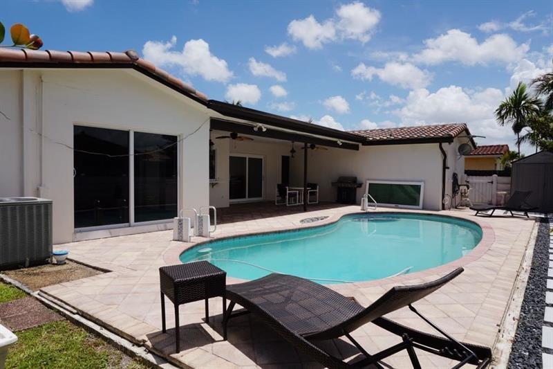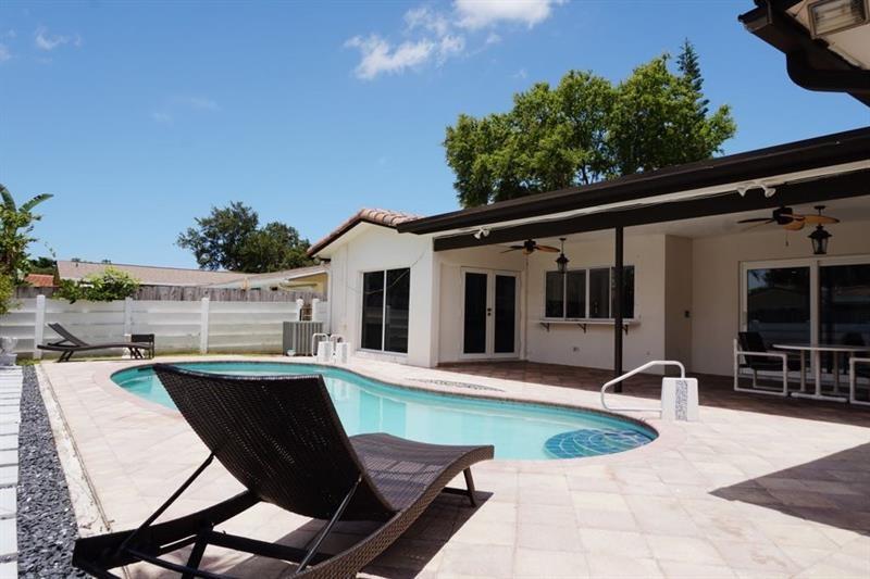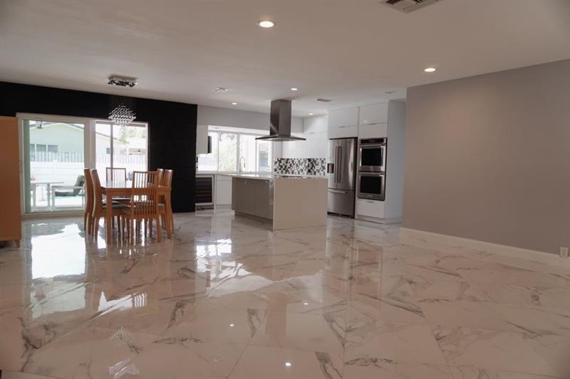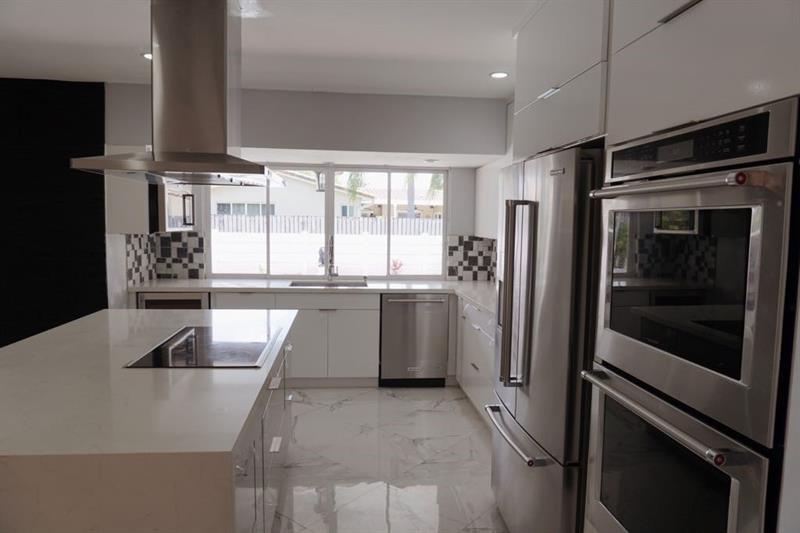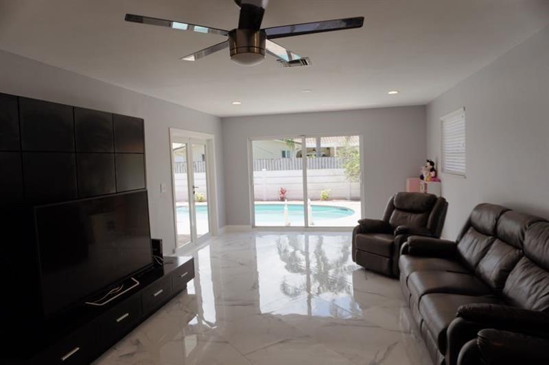Modern luxurious pool home with huge family room 2 car garage, open spaces, tastefully renovated, everything is new!!! Mix of Marble, Tile and Bamboo hardwood floors. New bathrooms, doors, levers, new electric box, new barrel tile roof and flat roof, hurricane impact sliding doors, updated lighting fixtures, new kitchen with quartz counter tops and waterfall, new cabinets in gloss white finish and soft closing doors. Kitchen Aid appliances, decorative wall with black stacked stones. Pavers and much more.