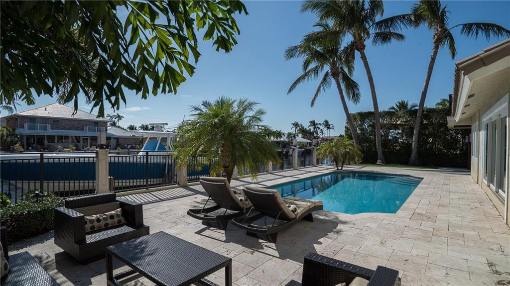 Gorgeous, renovated waterfront home in Bermuda Riviera! Deepwater estate w/80' dock & 18,000 lb. boat lift on a wide canal, just moments to the Intracoastal. The open floor plan of this custom home is perfect entertaining. Marble and hardwood floors, heated pool, built-in office, steam shower, custom landscaping & lighting. Smart home w/security systems. Huge master suite w/private balcony & ICW views. Great cul-de-sac location, easy walk to private Bermuda Riviera beach access! Gated community.