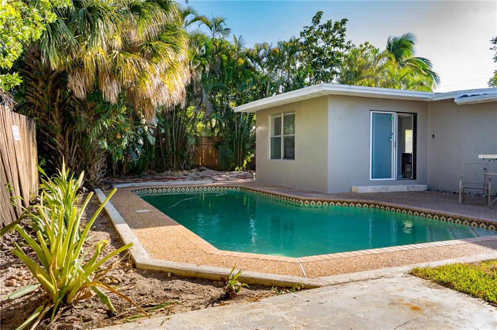 WHY BUY A CONDO WHEN YOU CAN HAVE YOUR OWN HOME WITH A POOL, 2 1/2 MILES FROM THE BEACH! Completely remodeled, modern style home, with updated kitchen and bath. Beautiful white tile throughout the house. Very light and bright with lots of windows with views of the pool and garden. Outside marble wet-bar and tanning area! Home also features new energy efficient ductless AC units, installed this year. Roof is only 6 years old. Minutes to the beach, park, jogging, and shopping. This home is a must See!