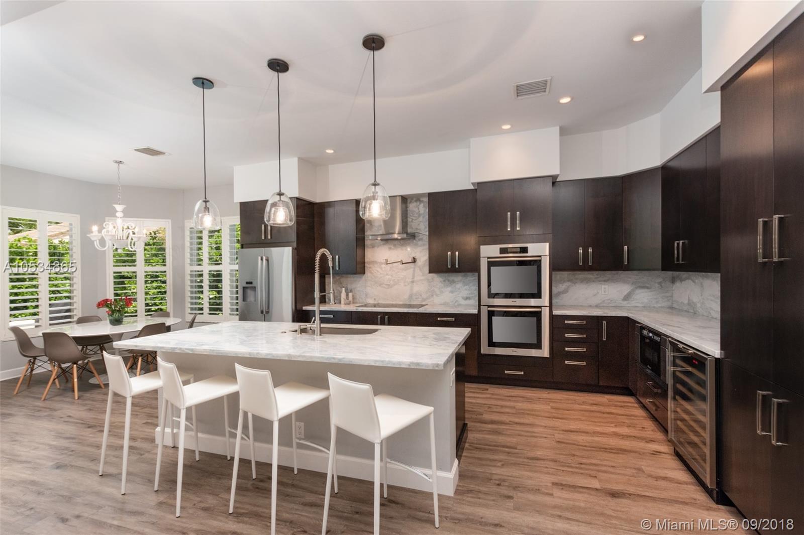 Talk about upgrades. Run to this one. Tucked on a quiet royal palm tree lined street in the gated community of Weston Hills. Every imaginable upgrade in this one popular one story masterpiece. Enjoy four spacious bedrooms and three full baths, all renovated in a contemporary style. State of the Art kitchen w/ white marble countertops and backsplash, Miele double ovens, bosch DW and Refrigerator and Decor microwave/drawer/cooktop. Just installed brand new floors. All baths remodeled with Toto toilets and contemporary flair. Master bath w/ body spray package, rainshower, jacuzzi air tub. Stunning wood floors flow throughout. Tons of light. Neutral colors. Lushly landscaped. Plenty of room to build your dream pool. Top of the line Maytag washer/steam dryer. 4 “ high hats in every room