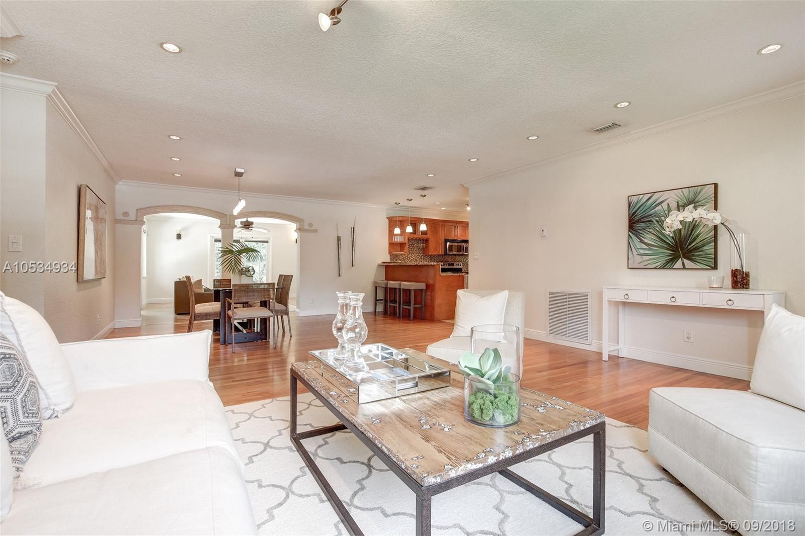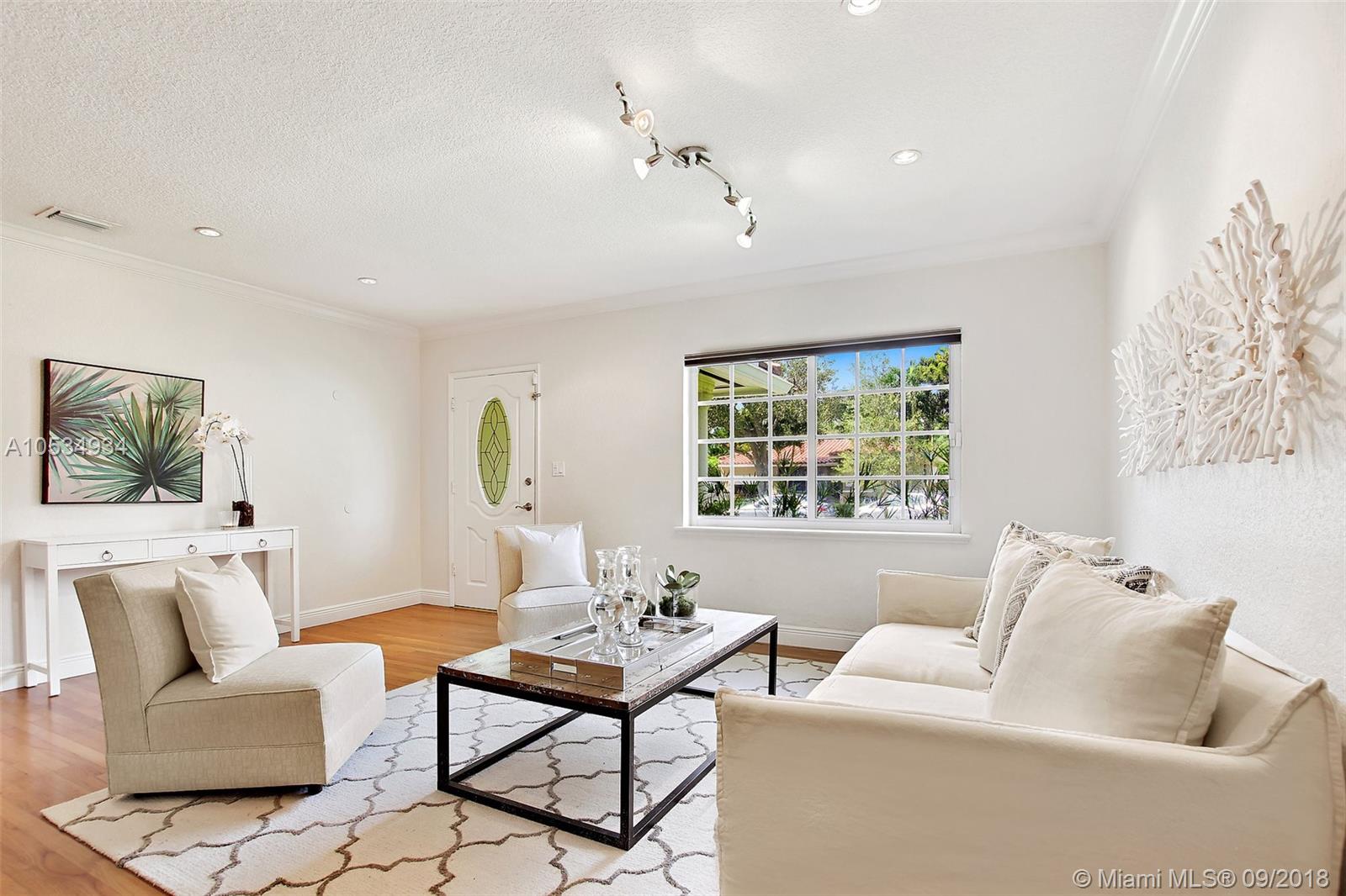 LOOK NO FURTHER! A perfect "10" centrally located 3/3 completely updated Gables home. Open floor plan featuring impact windows/doors, gleaming wood flooring throughout, renovated bathrooms, stainless steel kitchen plus amazing closets. Only a few steps to the Trolley and access to central Coral Gables or the metro.