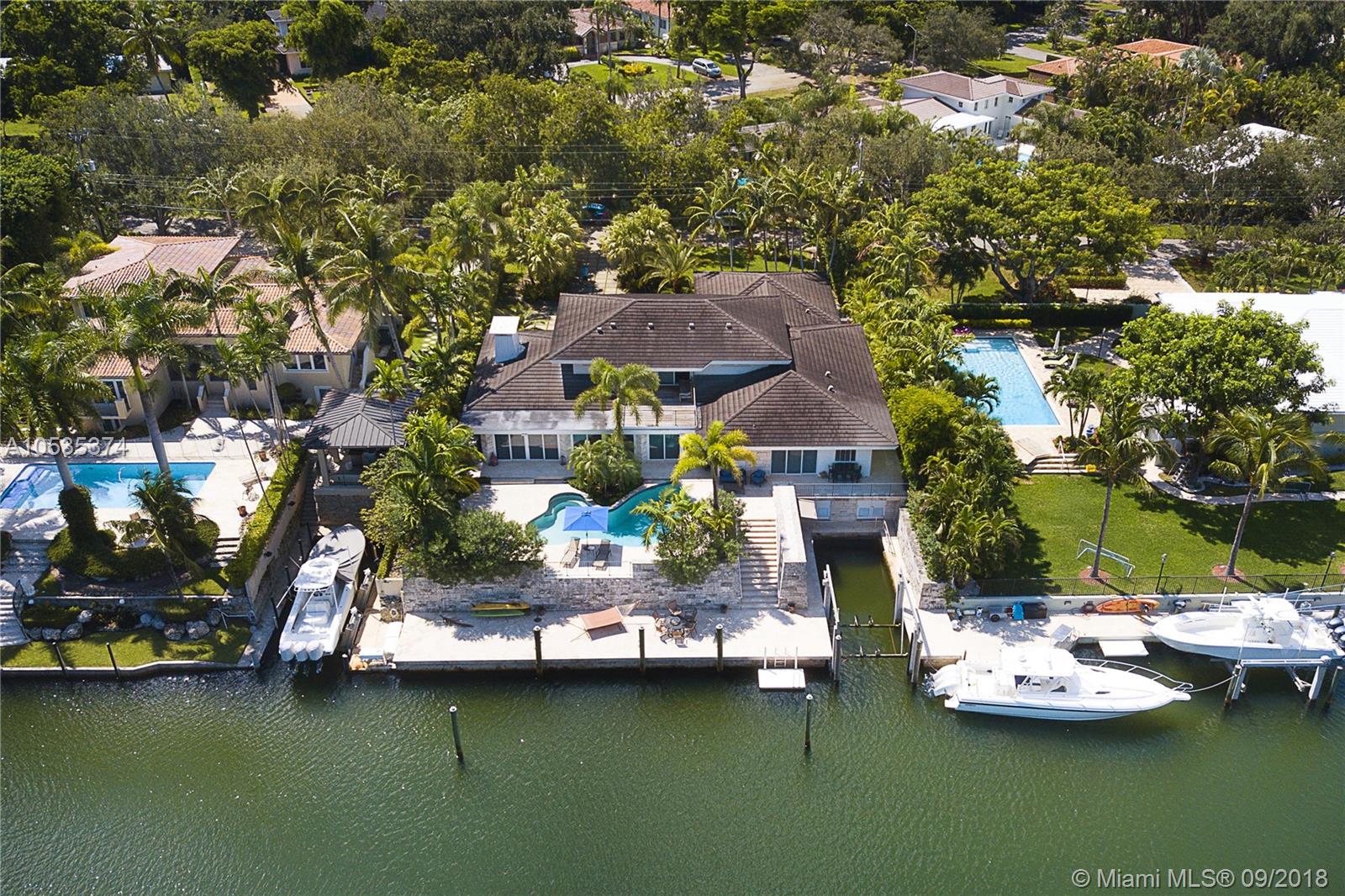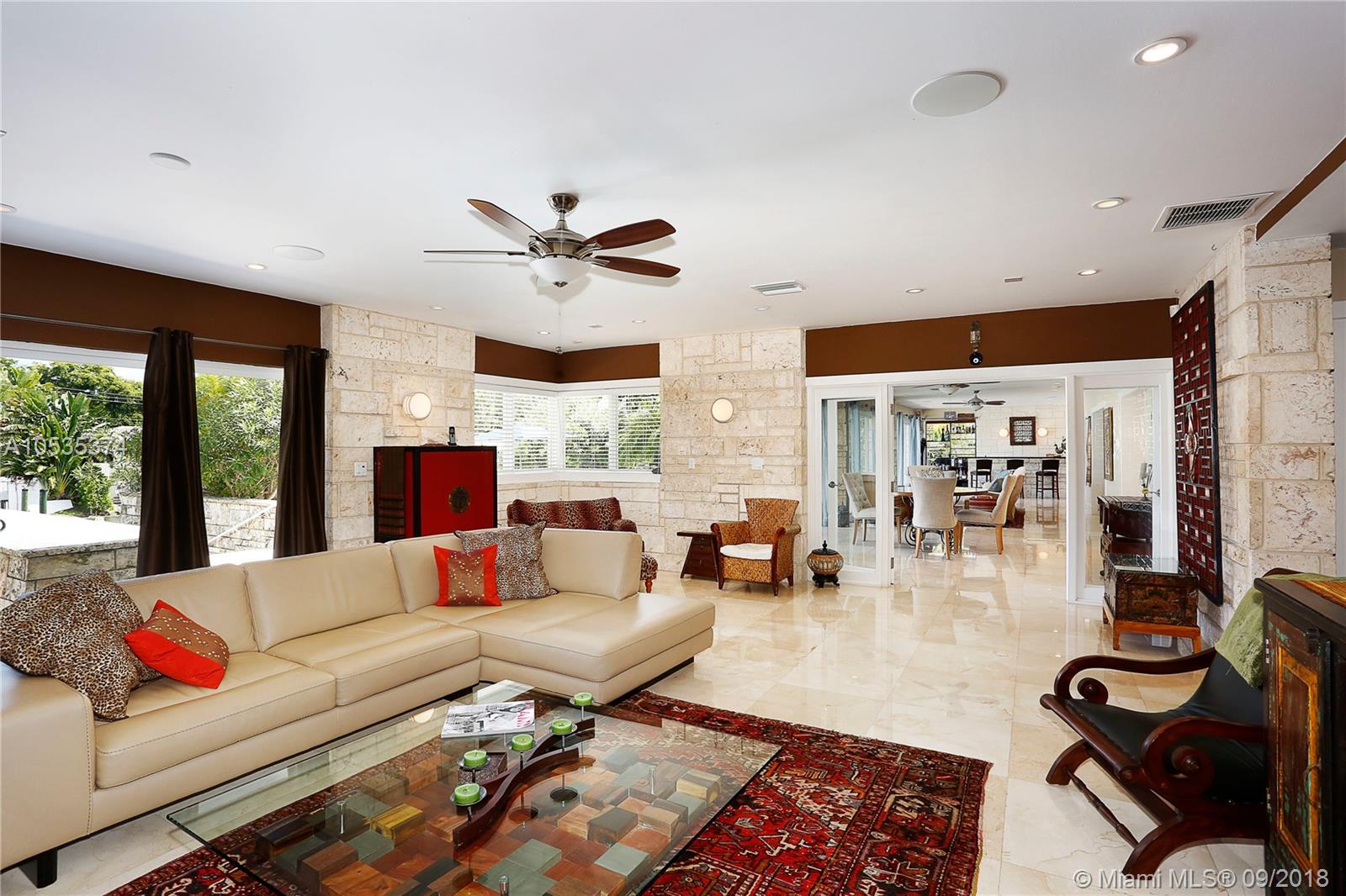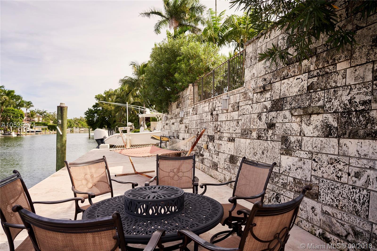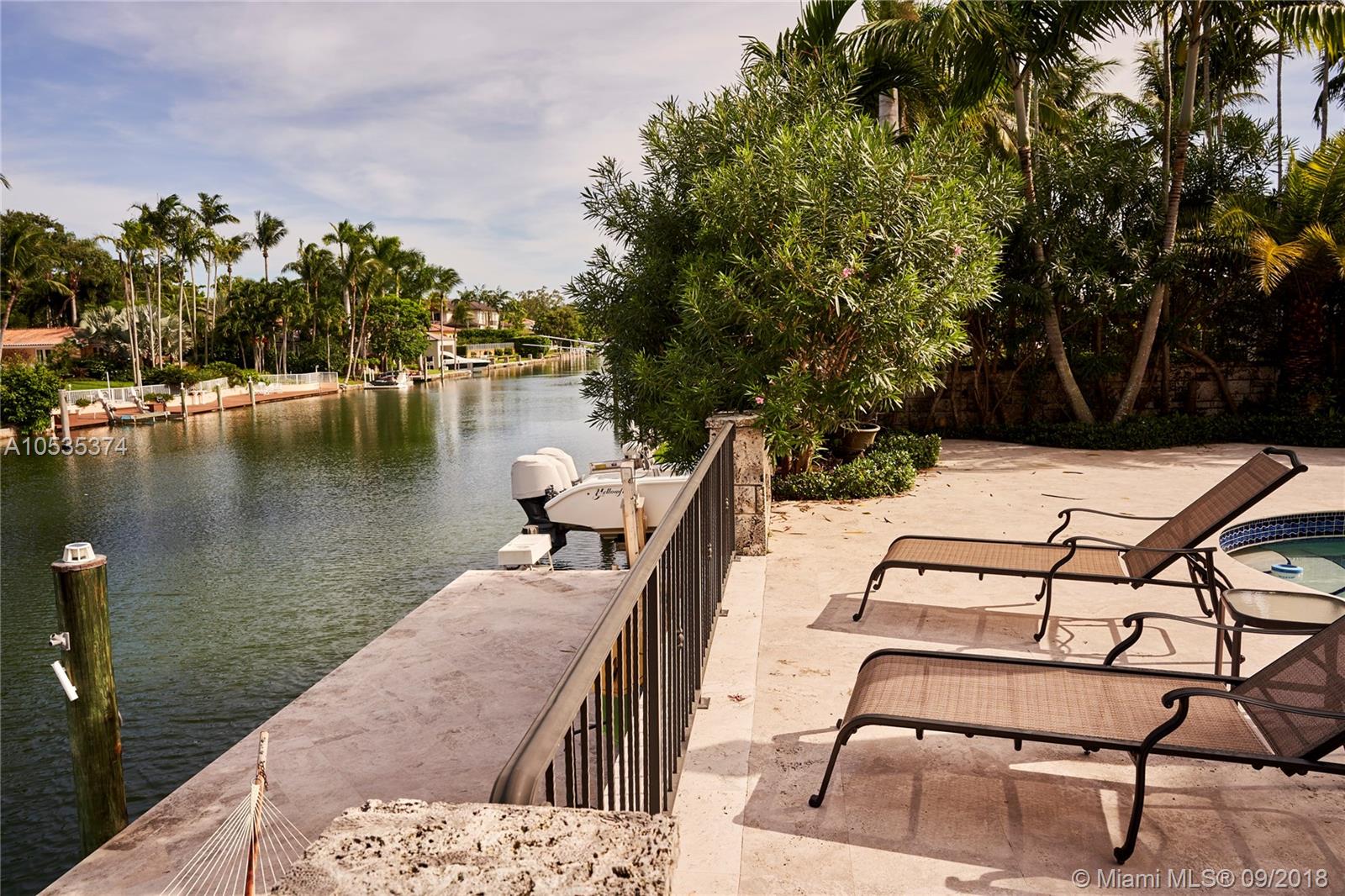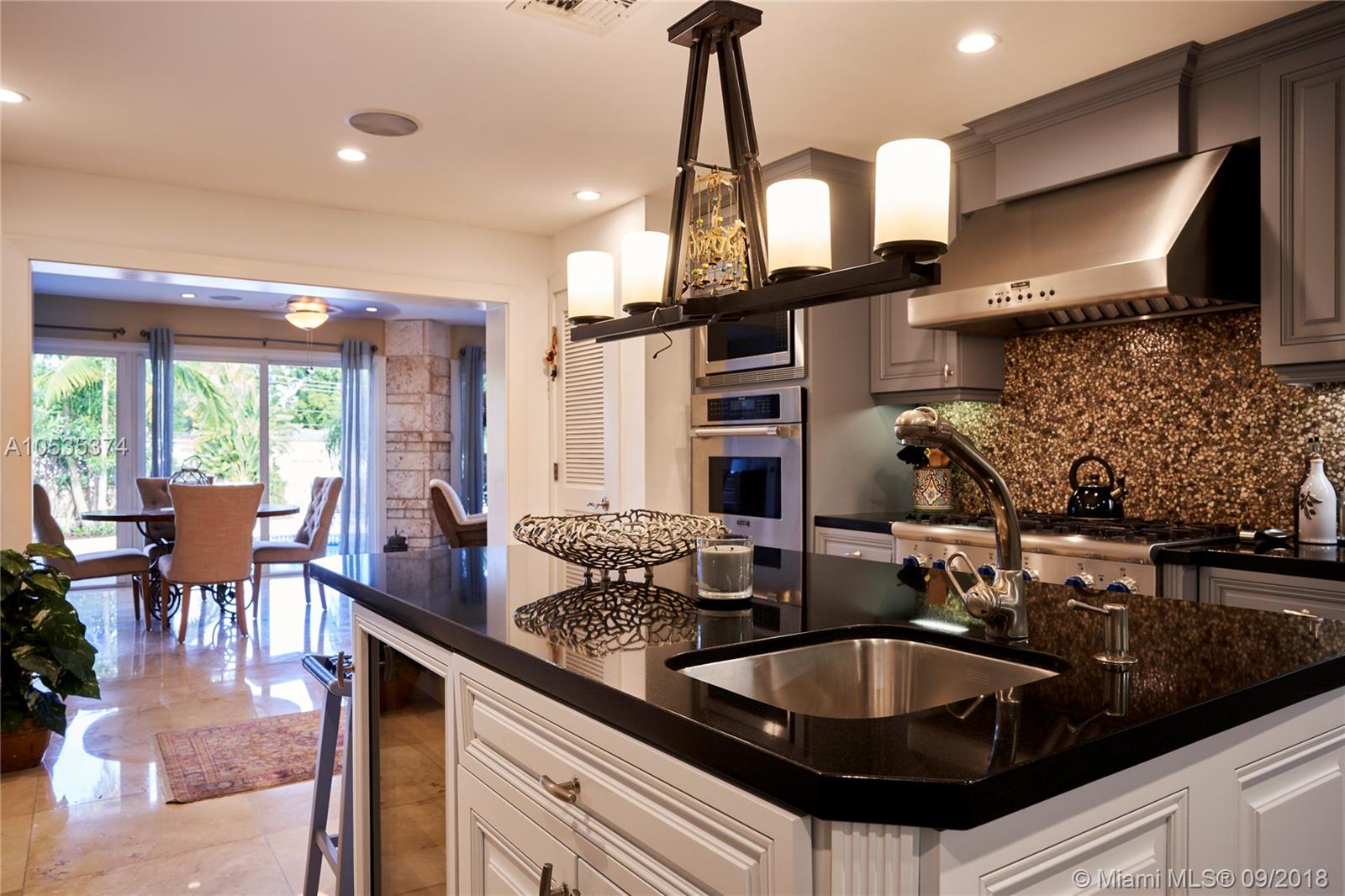 This beautifully renovated home offers a modern-flair & open spaces inside, with the most gorgeous pool, patio & oversized Keystone dock-the perfect place to entertain guests or relax for a quiet evening while taking in the waterway. The newly updated kitchen opens to the family area & features Thermador appliances, including a gas stove, lovely custom cabinetry & sleek marble counter tops. There are 3 bedrooms on the main floor all with en-suite bathrooms, a gorgeous master suite privately situated upstairs with his and her bathrooms, large walk-in closet, wood deck overlooking the waterway, & office, & a captain's room downstairs off the cutout boat slip. 2 car garage, fireplace, impact windows throughout, newer roof, laundry room & so much more make this a true dream home!