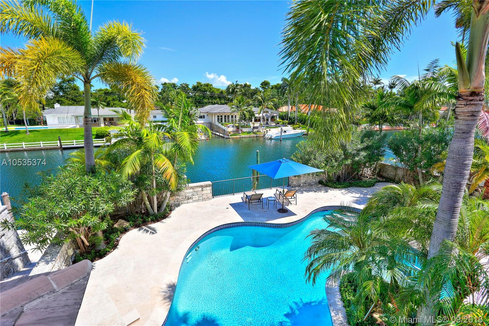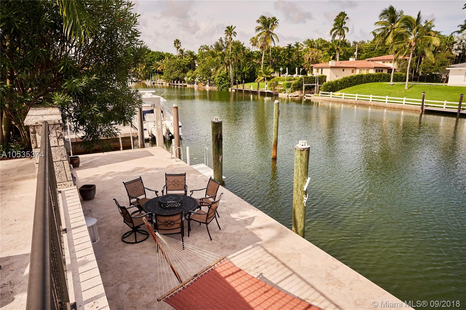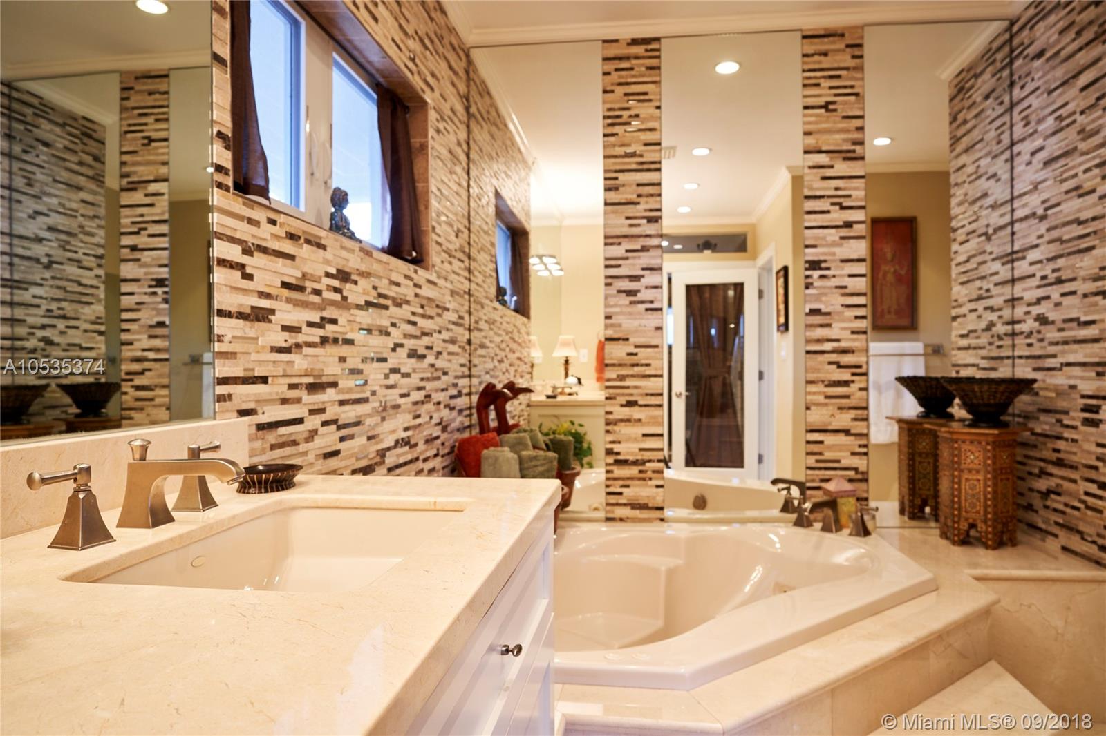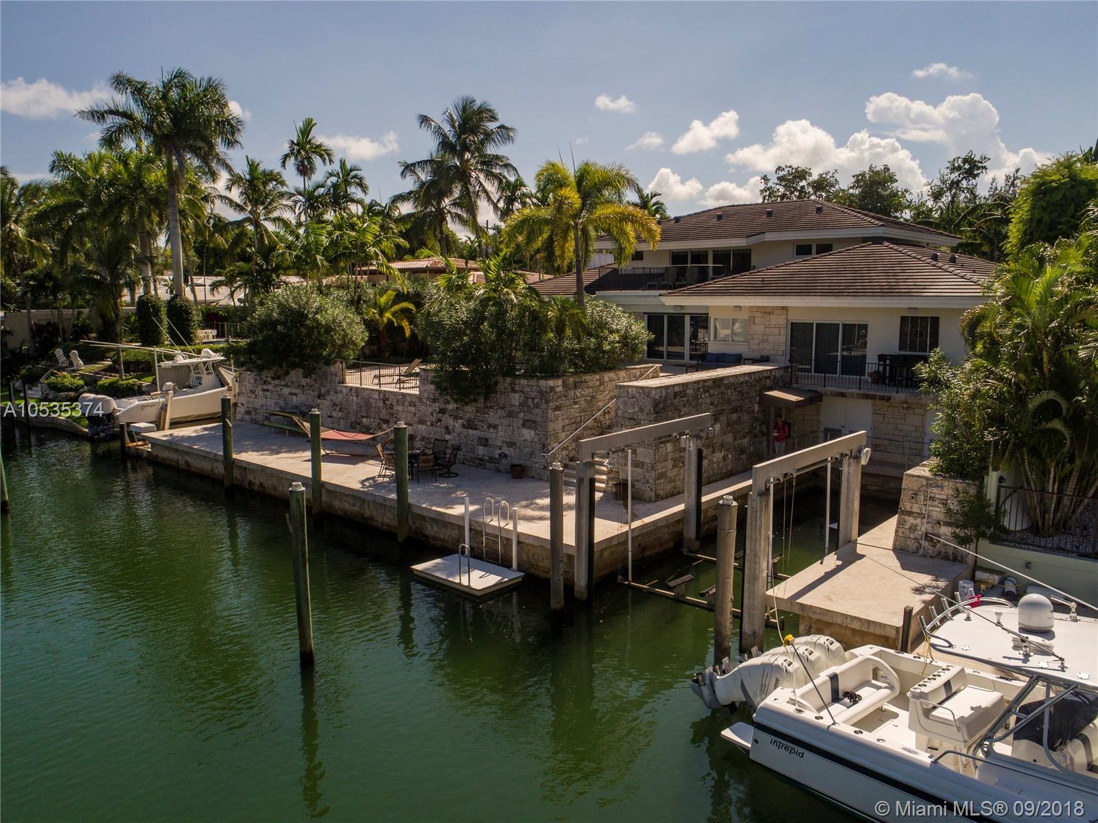 This beautifully renovated home offers a modern-flair & open spaces inside, with the most gorgeous pool, patio & oversized Keystone dock-the perfect place to entertain guests or relax for a quiet evening while taking in the waterway. The newly updated kitchen opens to the family area & features Thermador appliances, including a gas stove, lovely custom cabinetry & sleek marble counter tops. There are 3 bedrooms on the main floor all with en-suite bathrooms, a gorgeous master suite privately situated upstairs with his and her bathrooms, large walk-in closet, wood deck overlooking the waterway, & office, & a captain's room downstairs off the cutout boat slip. 2 car garage, fireplace, impact windows throughout, newer roof, laundry room & so much more make this a true dream home!