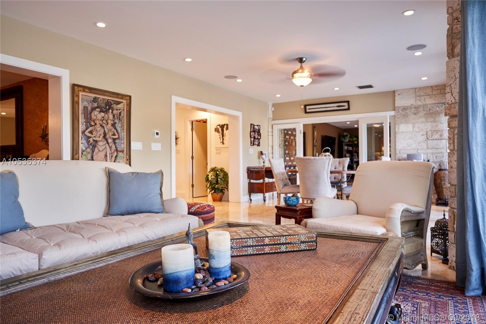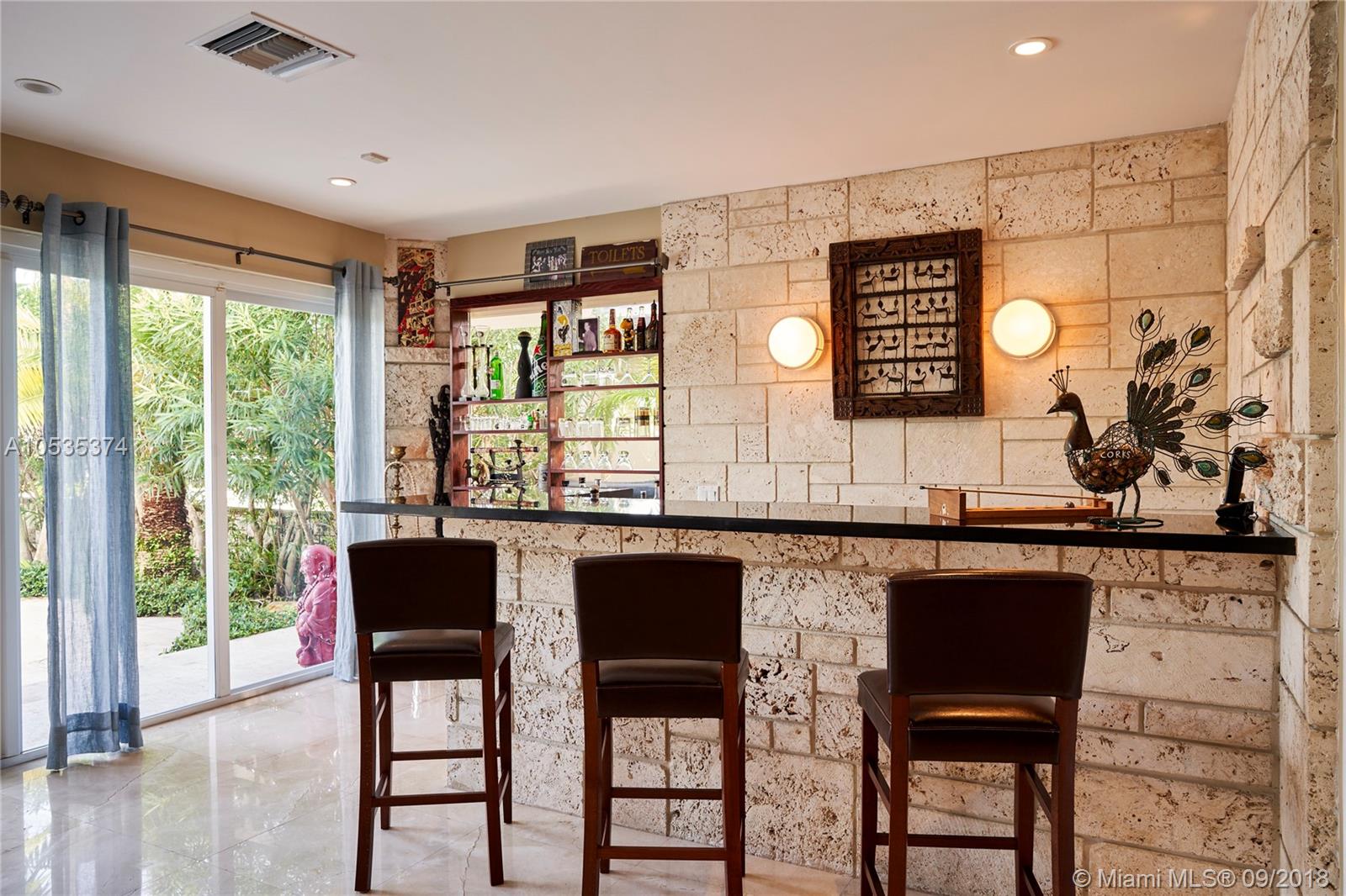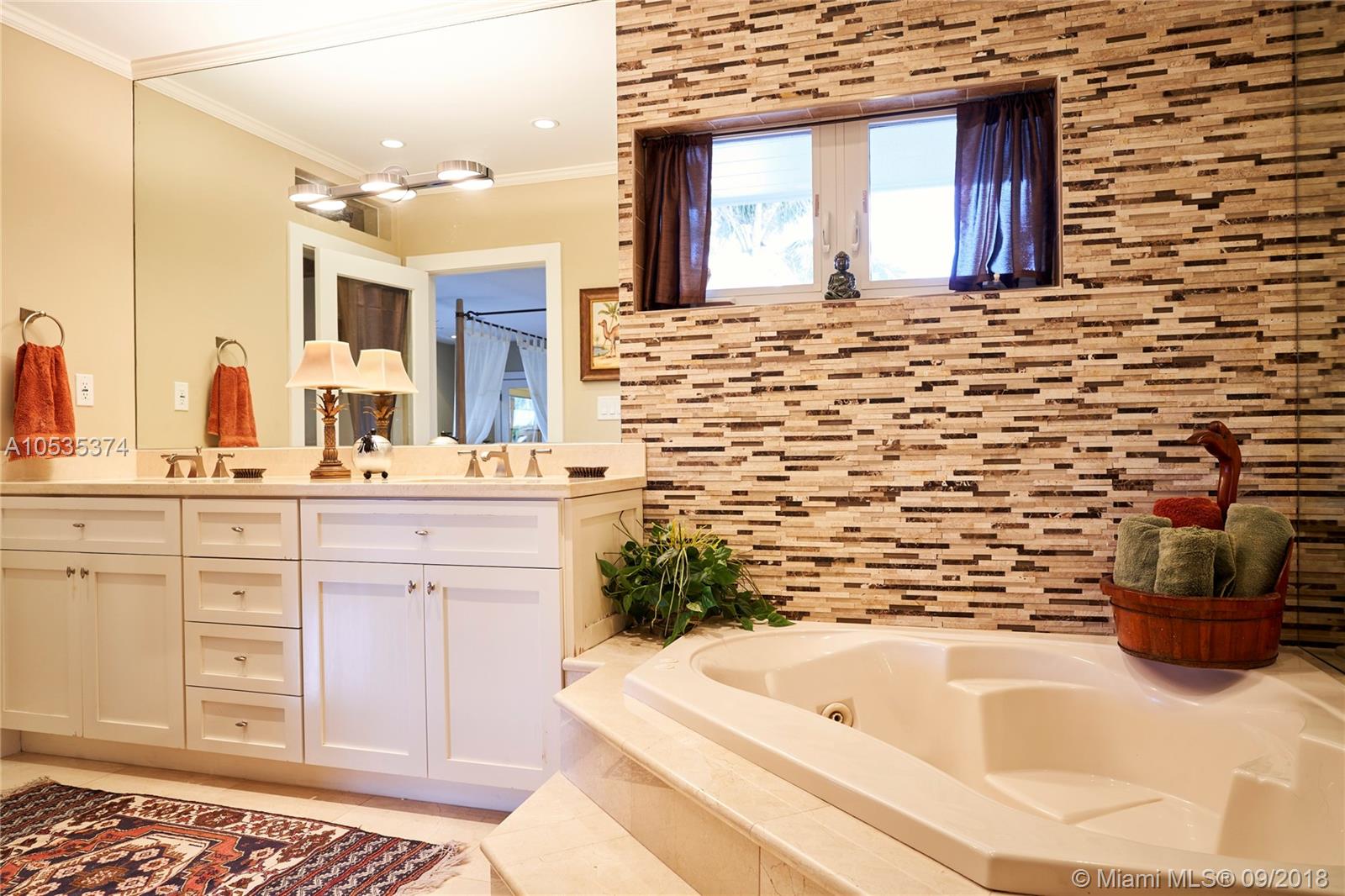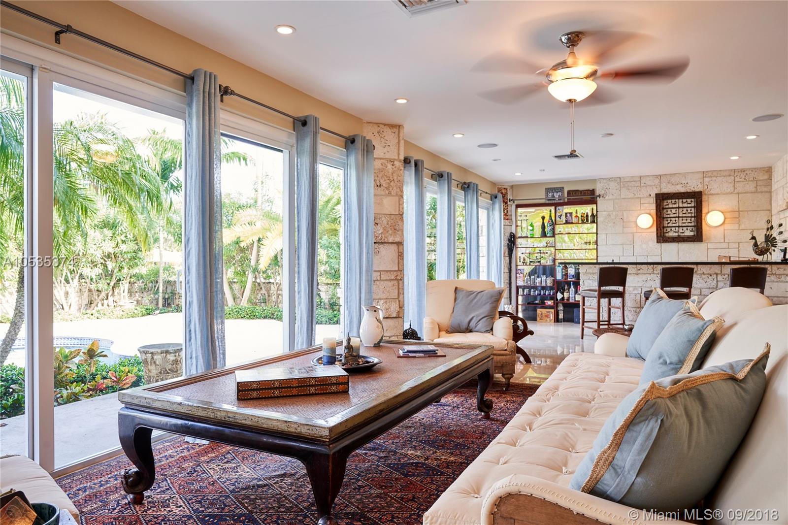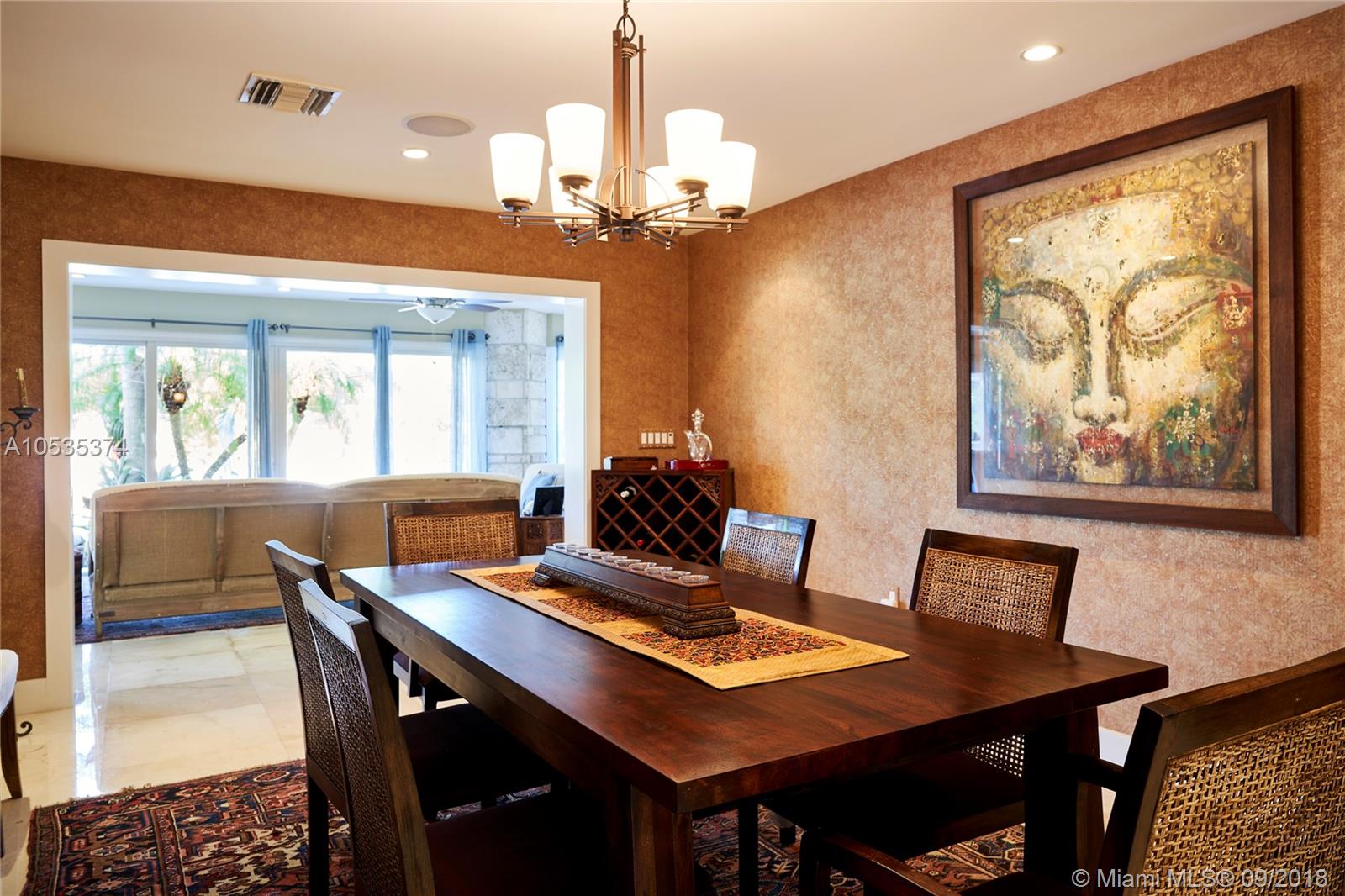 This beautifully renovated home offers a modern-flair & open spaces inside, with the most gorgeous pool, patio & oversized Keystone dock-the perfect place to entertain guests or relax for a quiet evening while taking in the waterway. The newly updated kitchen opens to the family area & features Thermador appliances, including a gas stove, lovely custom cabinetry & sleek marble counter tops. There are 3 bedrooms on the main floor all with en-suite bathrooms, a gorgeous master suite privately situated upstairs with his and her bathrooms, large walk-in closet, wood deck overlooking the waterway, & office, & a captain's room downstairs off the cutout boat slip. 2 car garage, fireplace, impact windows throughout, newer roof, laundry room & so much more make this a true dream home!