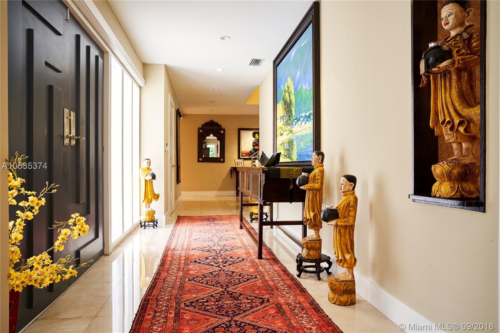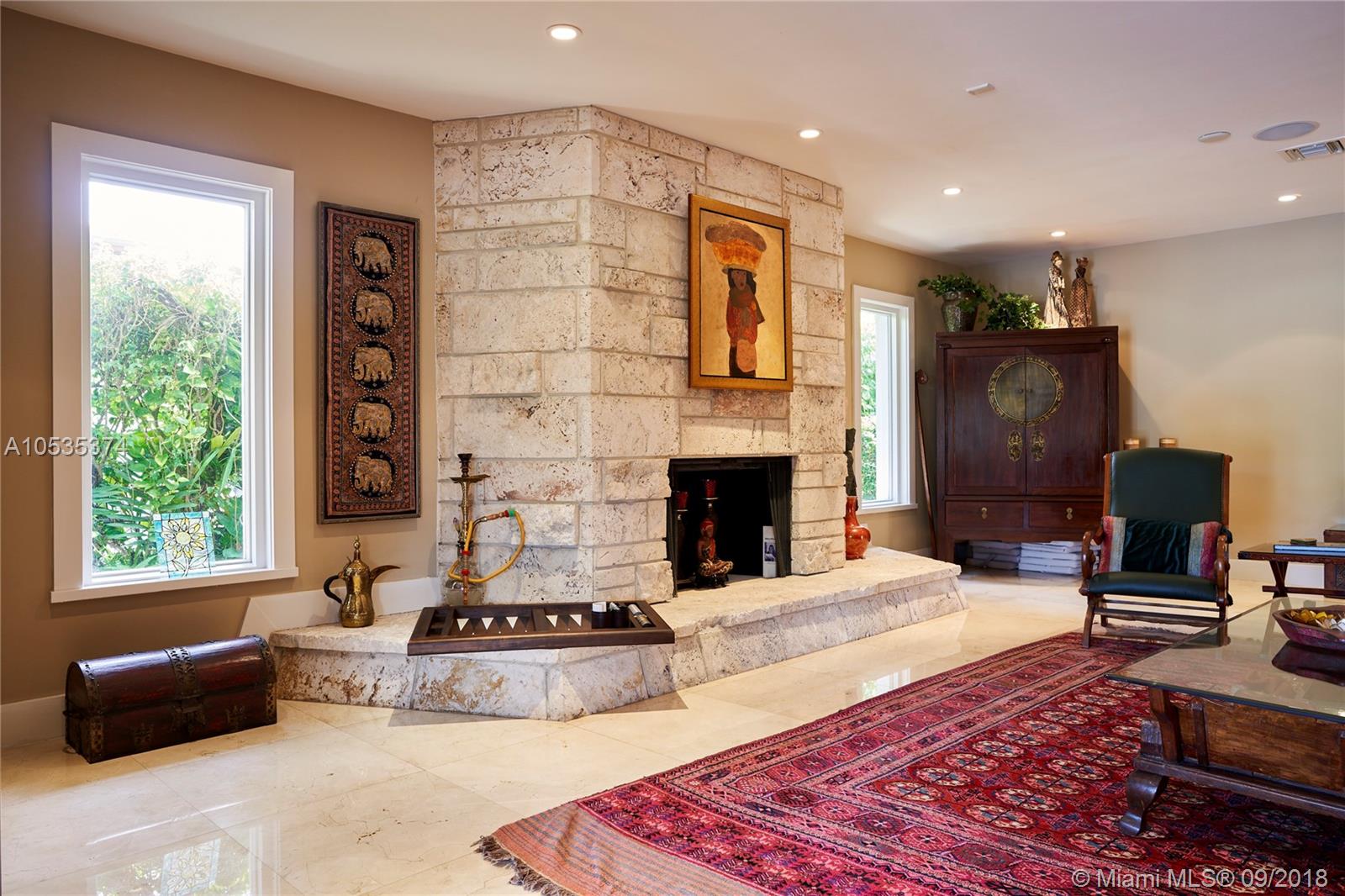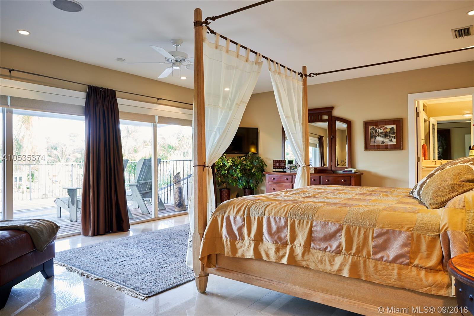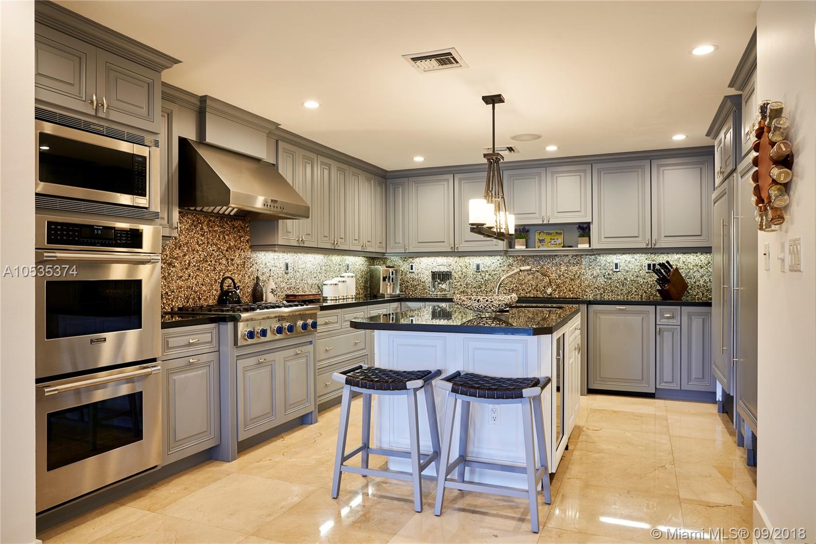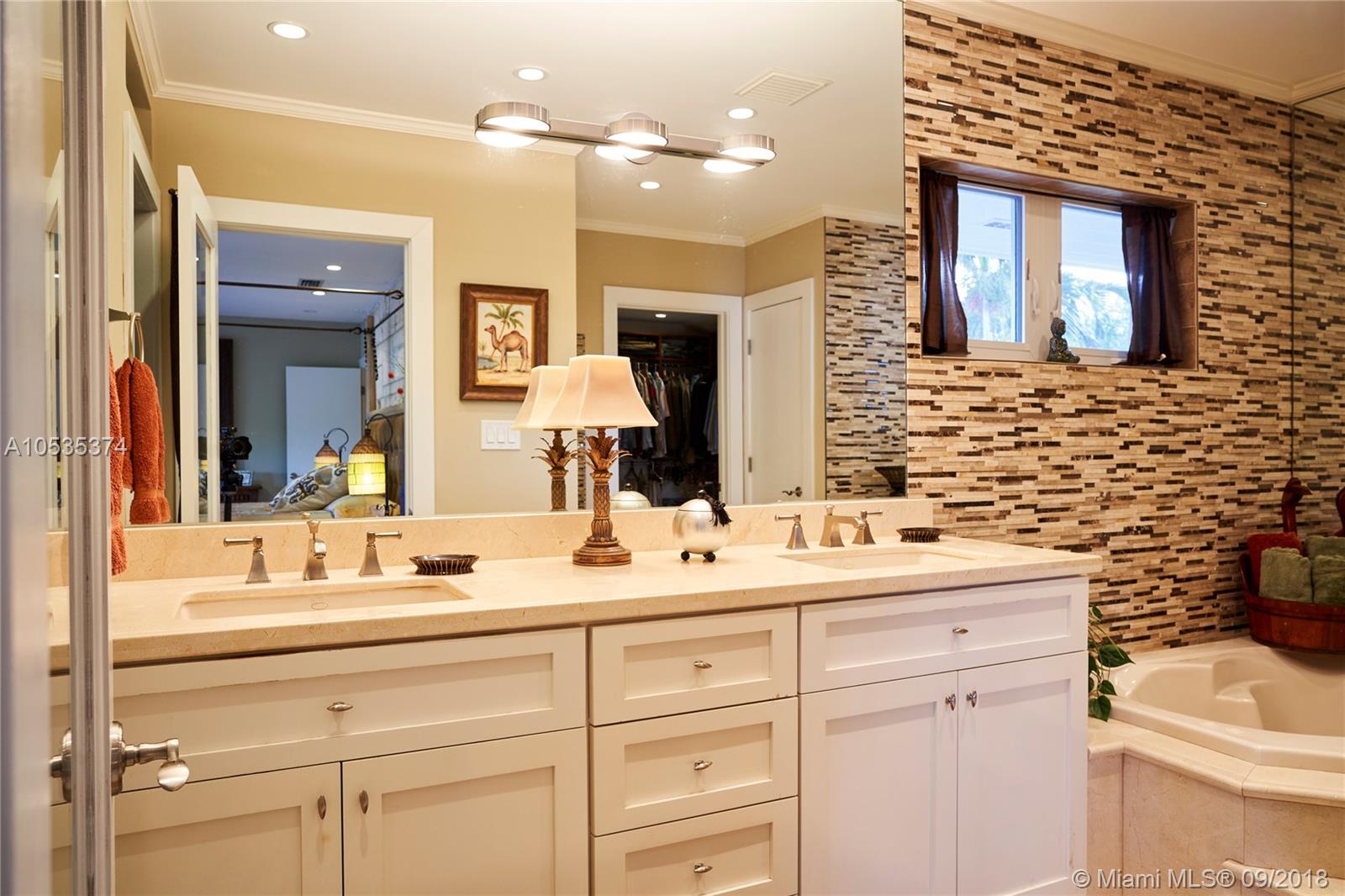 This beautifully renovated home offers a modern-flair & open spaces inside, with the most gorgeous pool, patio & oversized Keystone dock-the perfect place to entertain guests or relax for a quiet evening while taking in the waterway. The newly updated kitchen opens to the family area & features Thermador appliances, including a gas stove, lovely custom cabinetry & sleek marble counter tops. There are 3 bedrooms on the main floor all with en-suite bathrooms, a gorgeous master suite privately situated upstairs with his and her bathrooms, large walk-in closet, wood deck overlooking the waterway, & office, & a captain's room downstairs off the cutout boat slip. 2 car garage, fireplace, impact windows throughout, newer roof, laundry room & so much more make this a true dream home!