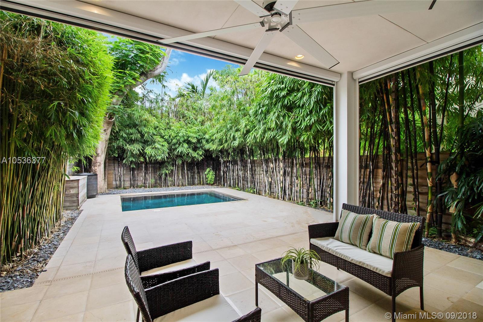 Modern 3-Bed/2.5-Bath gated townhome in Center Coconut Grove offering 2,440 SF of high-designed interiors & a spectacular lush outdoor area featuring a unique convertible Florida room with Phantom blinds & private pool. This luxury home offers a formal living/dining room, family room & gourmet kitchen with Wolf/SubZero appliances, real wood cabinetry, Quartz countertops, chef's island with GAS cooktop & built-in bar. Master suite boasts oversized walk-in closet & spa-like bathroom with dual sink vanity, glass-enclosed steam shower & water closet. 36" porcelain flooring, Lutron lighting, hurricane-impact windows/doors, California closets, Luxul wireless internet & Ring system throughout. Ideally located behind CocoWalk--steps from an array of restaurants, shopping, parks & marinas.