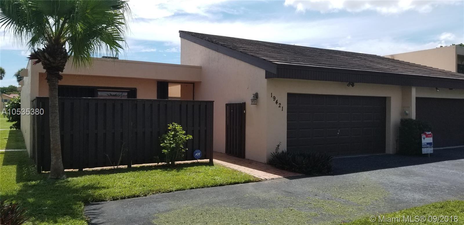 Big 1 story townhome on Golf Course, Country Club of Miami. Lush green spacious view. 2 large Bdrms/2 Bths, 2 car gar, corner unit. Master Bdrm & baths renovated, new vanities (dual sinks master Bth) shower, toilets, mirrors. 2 Central AC's, new electric panel. Replaced tile roofs & flat roof under warranty. New tankless water heater, gate & fencing, covered porch w/newly tiled floor. Dues only $200/YEAR! Kitchen & LR floor need updating.