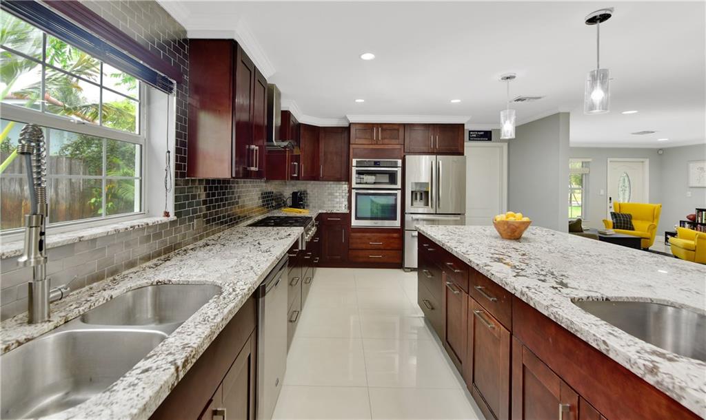 Come and experience this fresh clean & bright home with wide open spaces! Simply gorgeous! Nestled in a quiet neighborhood close to major roadways, beaches, airport and night life. House has been freshly painted inside and out with upgraded landscaping, new gas water heater, new floated ceiling w/upgraded LED lighting throughout, 24" porcelain tile flooring throughout, upgraded master bath, upgraded kitchen w/ built-in oven & microwave, wine cooler, 6 burner gas stove, Vivint home security system included! This 3/2 home is certainly one you and your family will enjoy for many years to come. French doors open off master to lovely patio for morning coffees and evening gatherings. The paver circular drive & car port offers plenty of room for parking. NEW AC! Room 4 pool, proposal available.