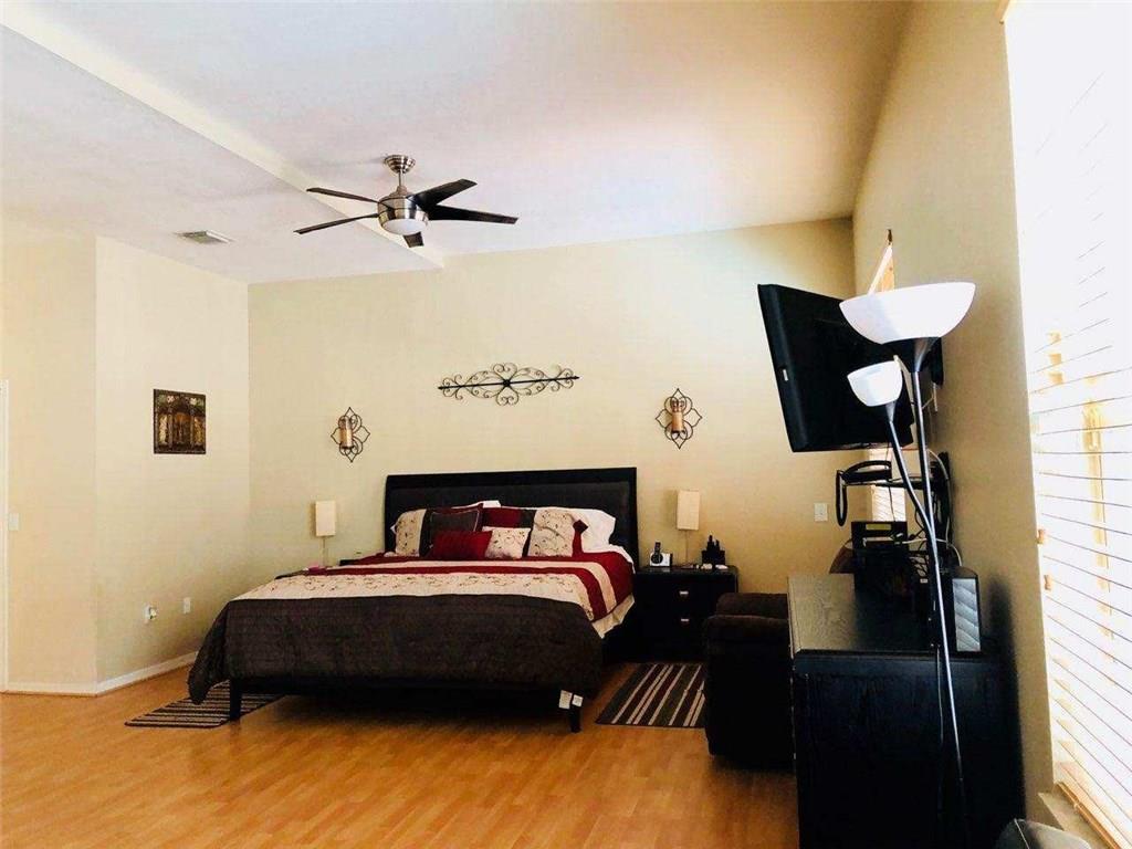Spectacularly upgraded 2 story home with remodeled kitchen featuring granite, new stainless appliances & gorgeous cabinets. Spacious master bedroom (1st floor) has 2 walk-in custom closets. Master bath has dual sinks, bidet & Jacuzzi tub. Huge loft-playroom. Fenced yard with covered patio, screened heated pool & spa and a view of the lake. Laminate flooring upstairs and Master bedroom. Hurricane shutters. 2 AC units. Newer water heater, pool pump, and sprinkler pump. Gated Community close to I-75.