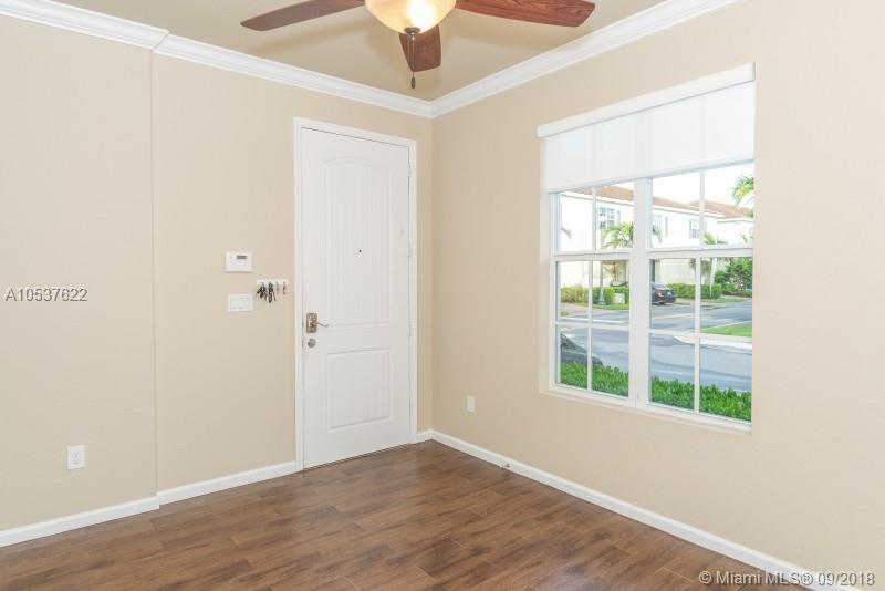 Stunning lake front view, freshly upgraded home. Upgrades include: Brand New carpet upstairs, Brand New recessed kitchen lighting with 2- nickel plated pendants, and nickel chandelier. New remote nickel planted Hunter fans in all rooms. Updated light fixtures in all bathrooms,Sun Shades on all windows, Remote black out shade for master bedroom. professional grade epoxy installed in the garage, with a fresh coat of paint throughout the house. This townhouse features separate living, dining and den with 9-foot ceilings throughout. Kitchen upgrades include wood cabinets, granite counters, and top of the line stainless steel appliances incl. larger refrigerator. All windows are impact glass. Washer and Dryer conveniently located upstairs. Community pool and clubhouse with Gym.