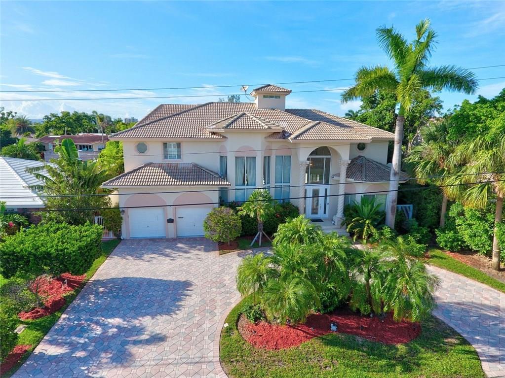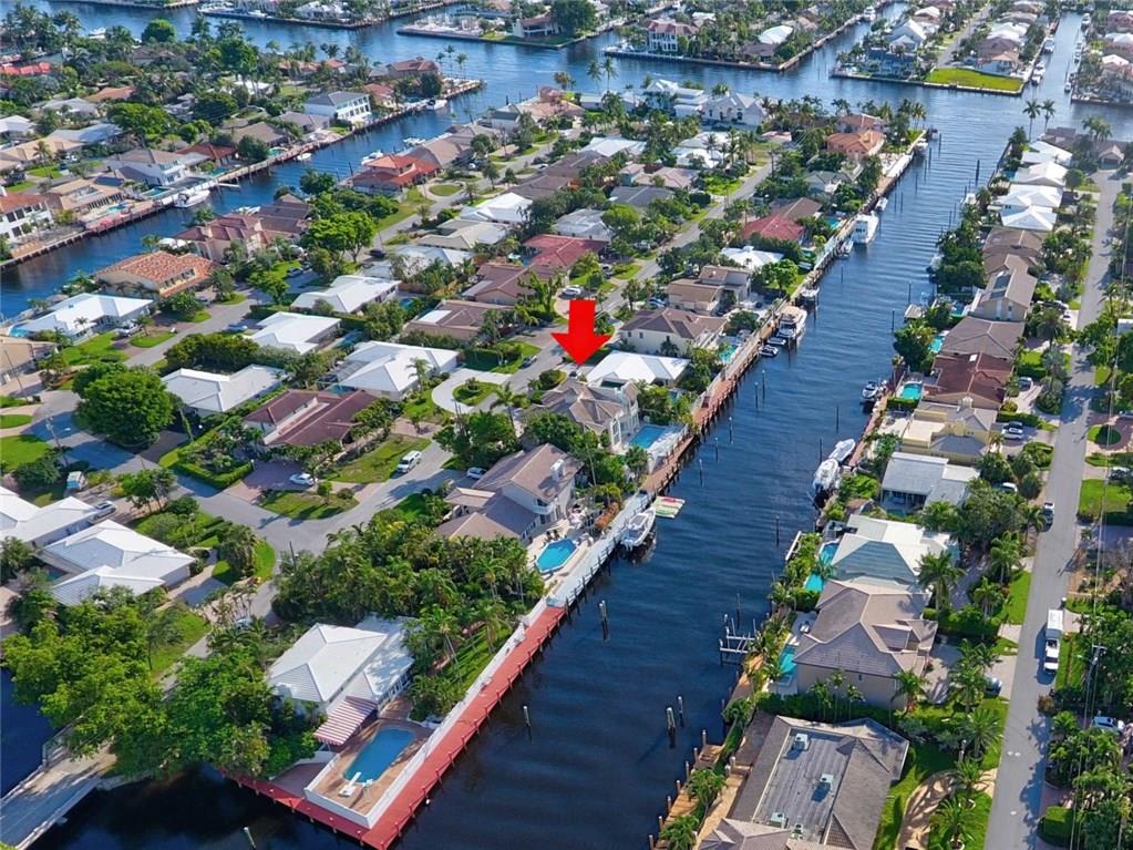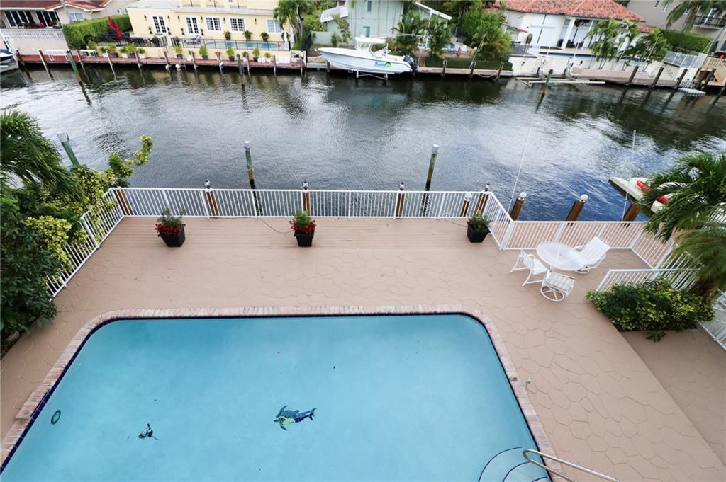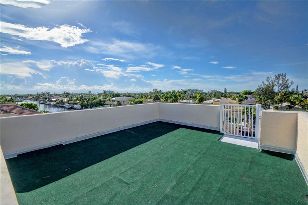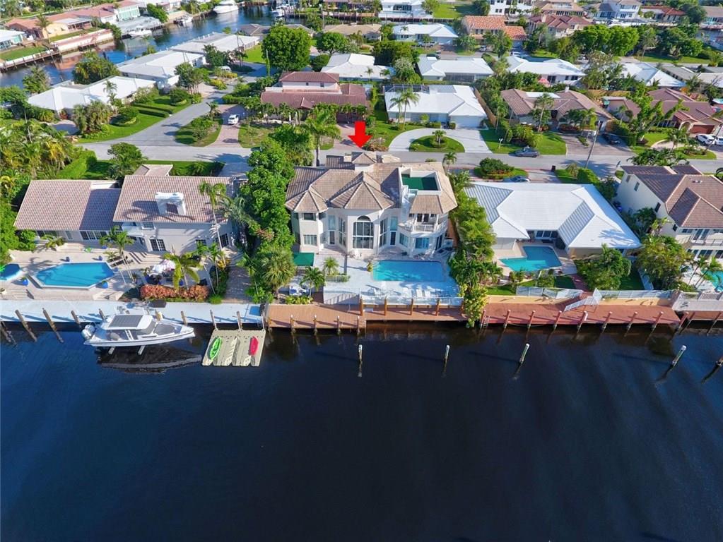 Stunning waterfront home located in the beautiful gated Bermuda Riviera neighborhood of Fort Lauderdale Beach. The extra wide protected canal and large dock area is perfect for boaters. Walk to the beach, shopping and dining from this incredible location. The open floor plan with dramatic 2 story windows provides for amazing waterfront views throughout the house. Kitchen includes a walk-in pantry, breakfast bar and casual dining space in addition to the formal dining area. The master suite boasts a private balcony with pool and waterfront views, his/her closets and sink areas, large shower and luxury jetted tub. Split bedroom plan. Rooftop terrace with unbelievable views. Den on first floor could be office or 4th bedroom. Large back patio with heated pool overlooks the private waterfront.