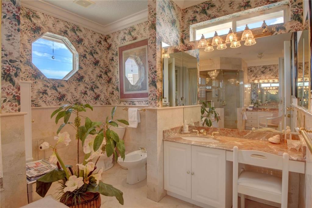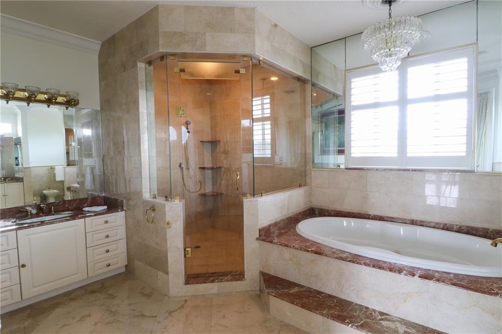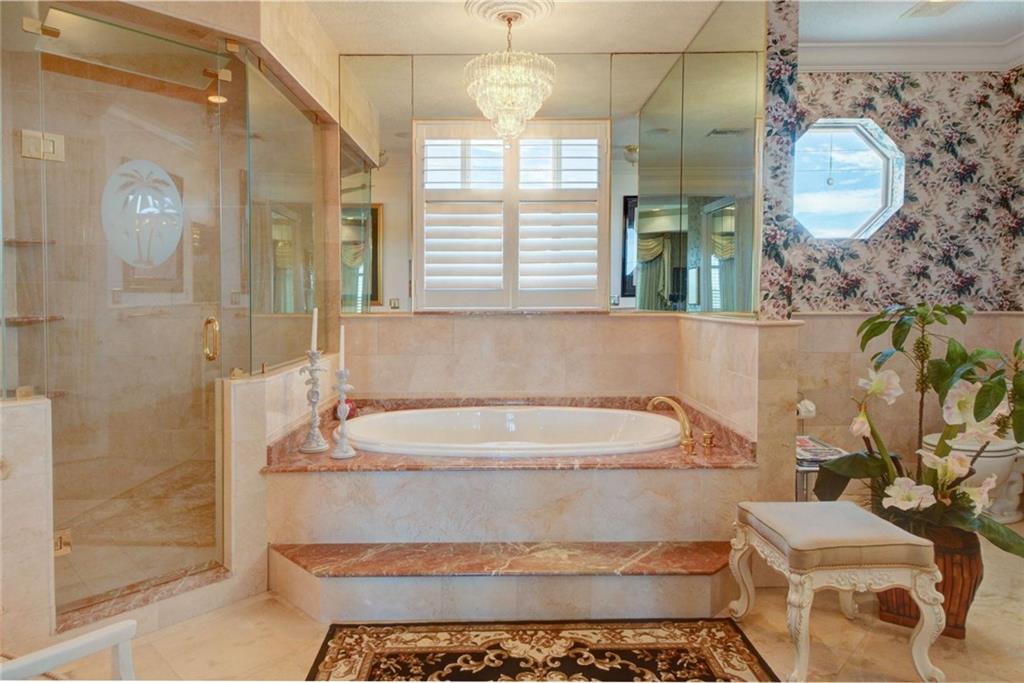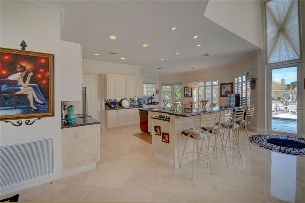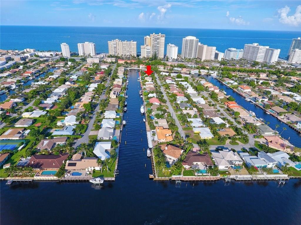Stunning waterfront home located in the beautiful gated Bermuda Riviera neighborhood of Fort Lauderdale Beach. The extra wide protected canal and large dock area is perfect for boaters. Walk to the beach, shopping and dining from this incredible location. The open floor plan with dramatic 2 story windows provides for amazing waterfront views throughout the house. Kitchen includes a walk-in pantry, breakfast bar and casual dining space in addition to the formal dining area. The master suite boasts a private balcony with pool and waterfront views, his/her closets and sink areas, large shower and luxury jetted tub. Split bedroom plan. Rooftop terrace with unbelievable views. Den on first floor could be office or 4th bedroom. Large back patio with heated pool overlooks the private waterfront.