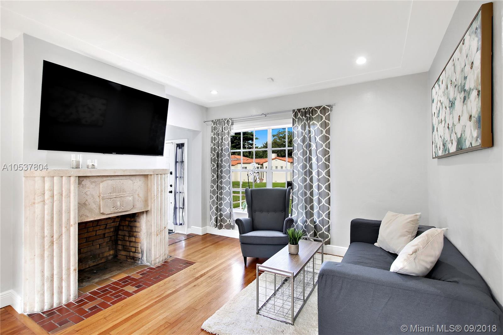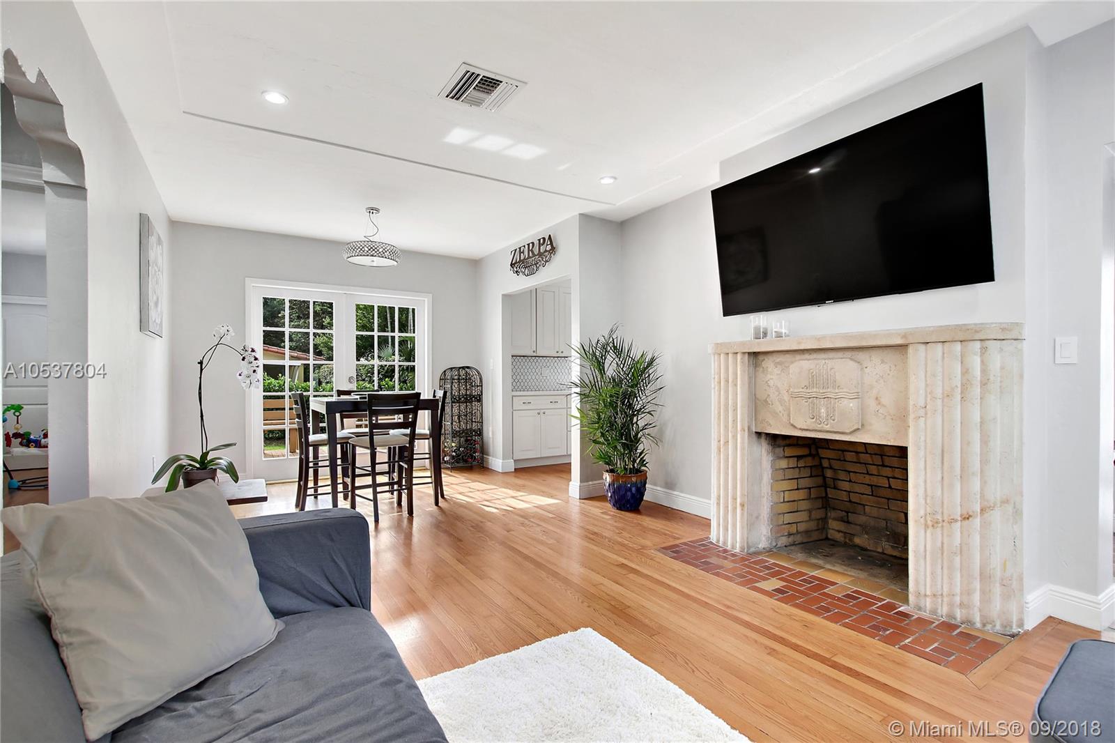 Substantially remodeled Gables charmer on a quiet tree lined street. This house has many fantastic renovations while maintaining its worldy charm with beautiful hardwood oak flooring, a gorgeous working fireplace, and a lovely foyer. Updates include a beautiful new kitchen, new marble bathroom, new drain pipes, a new septic system relocated to front, and a completely new A/C system and duct work. The home exterior has been entirely re-plastered and painted. The 6060 SF lot has room to add a pool or family room addition. Call for an appointment!