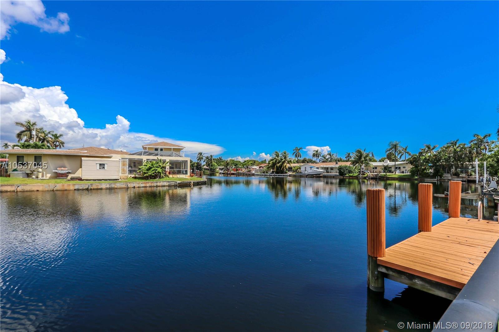 Great Location with Fantastic Water View~Ocean Access with 17' Dock~3 Bedroom/2 Baths~Bright Home with Lots of Windows with Lots of Natural Light~Double Door Entrance with a Massive Foyer~Satillo Tile~Open Kitchen with Bar Area connected to an Island w/a Cooktop~Black Granite Countertops~Vaulted Ceiling with Exposed Beams~Crown Molding~Living Room, Formal Dining Room, Family Room~Sunroom~Master Suite w/ French Doors Looking out to the Water and leads you to one of the Patio areas~Double Closet and Crown Molding~Guest Bedrooms Share a Jack & Jill Bath~2 Covered Patios, Great for Entertaining~1 Carport~Storage Shed~Seawall Reinforced approx 10 yrs ago~Fenced Backyard~Tented 8/23/18 w/Warranty~4 Fixed Bridges~Appliances 2yrs~Roof 2006~Close to Beachs, Gulfstream Park, Downtown Hollywood