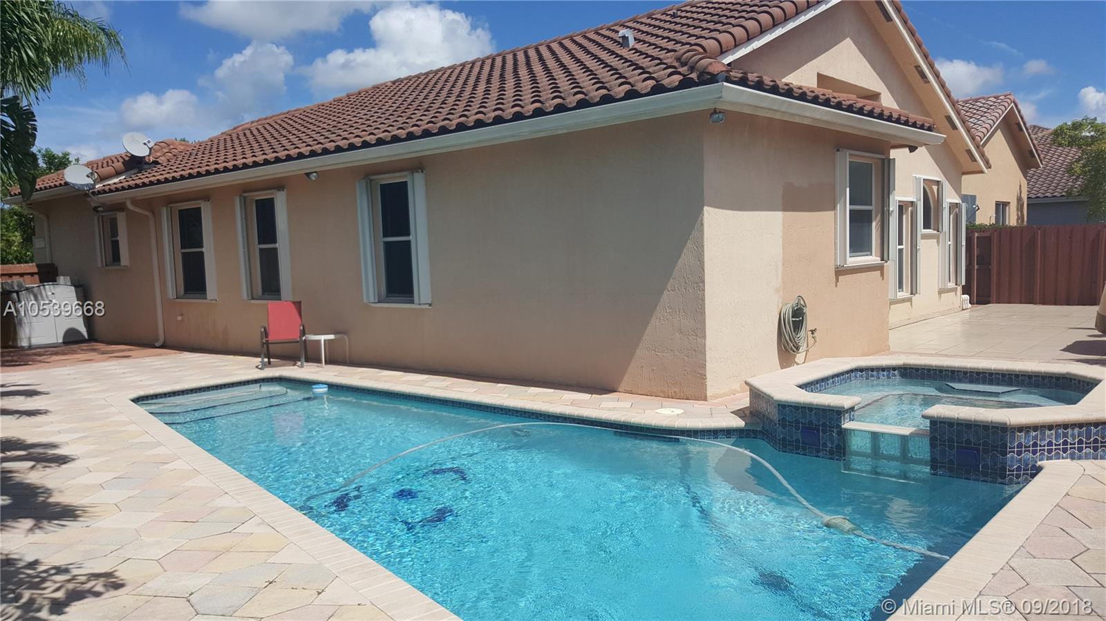 Somerset Country Club at Vizcaya Homes, Great Location, very well kept one story Single family home with 3 Beth's 2 baths, amazing pool and jacuzzi, 2 car garage, accordion shutter, Kitchen with ss appliances granite counter top and wood cabinets, washer and dryer in garage, gated Community, owner very motivated.