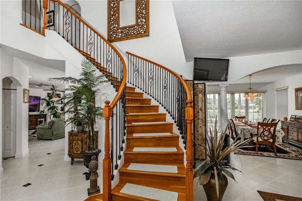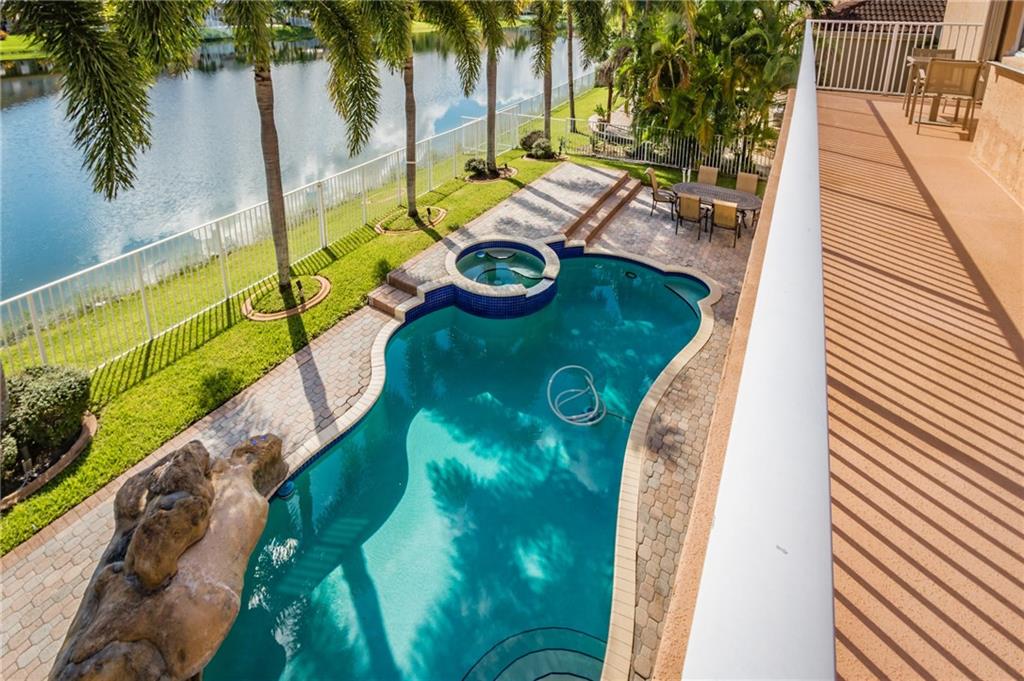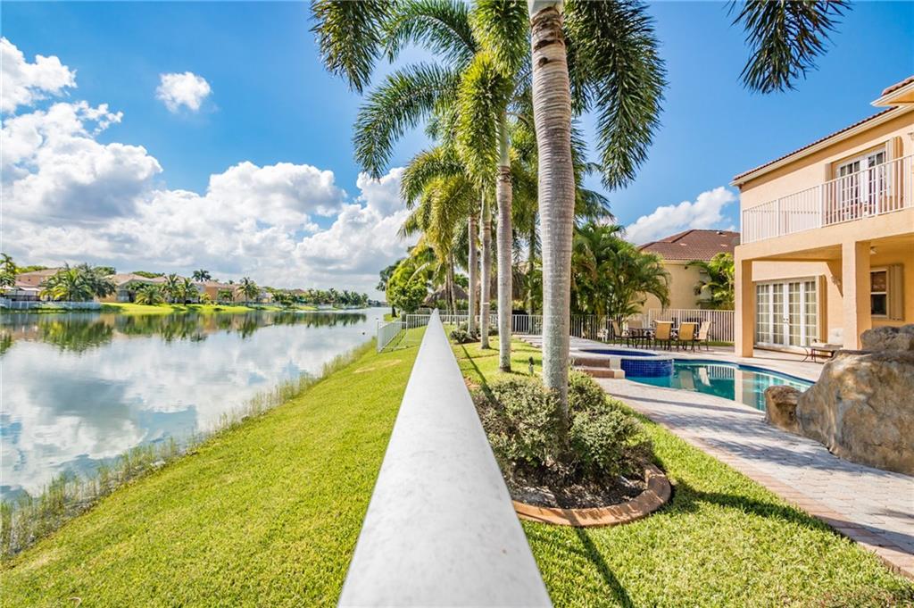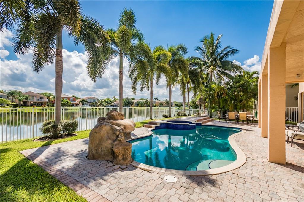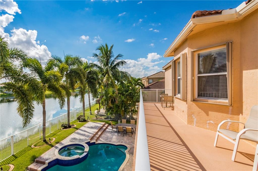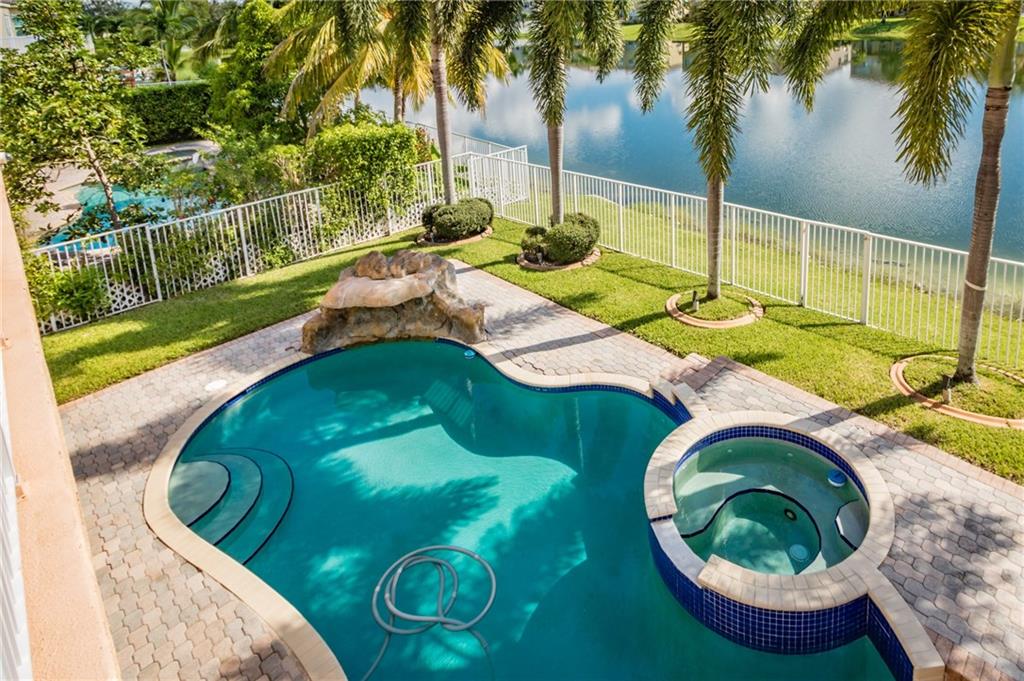 Breathtaking views from this gem in Portofino, the heart of Riviera Isles. Enjoy the scenery over the water from the deck around your pool, or from the balcony from your bedroom. This 2-story, 5 bedroom, 4 bath, 3 car garage beauty leaves nothing to desire. A bonus room on the first floor could be a 6th bedroom with a bathroom, or leave it as a gameroom to add to the perfect layout for entertainment and/or family fun. This gated community lies in a great location with highway quick access to Miami, Ft Lauderdale, and the Palm Beaches. Original owner, upgrades, 15x30 pool with waterfall, spiral staircase leading to hardwood floors upstairs. Large master with an office inside, jacuzzi tub. Then 2 sets of bedrooms with each pair sharing a Jack and Jill bathroom. Don't miss this one!