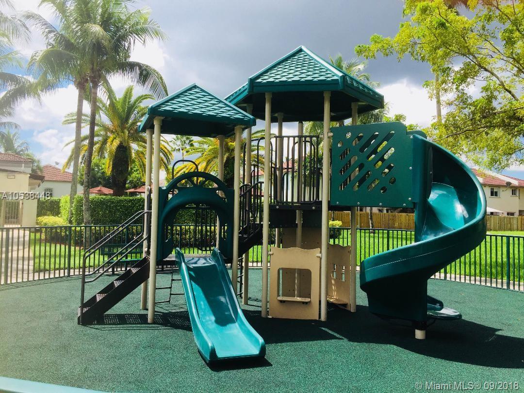 Cozy 2/2 Townhouse with one car garage and patio. Original owner, roof replaced in 2012. Corner lot in cul-de-sac right beside a beautiful and relaxing park. Accordion shutters. Gated community, quiet and safe with pool and children play area. Excellent location close to Turnpike, 826 and 836 Express Way, just minutes away from Miami Airport, Dolphin and International Mall. Call listing agent for appointment 24 hrs in advance.