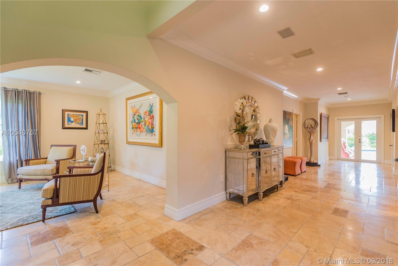 Exquisite 5 Bedroom, 5 Bath Home in the Prestigious, Gated, Gables by the Sea. This Masterpiece is Nestled on a Green Paradise Adorned w/Mature Trees & Boasts a Beautiful Private Heated Pool. Elegant Entry Way that Opens up to Impeccable Finishes. The Home Has Been Completely Re-Done w/Impact Windows & Doors, New Kitchen Incl. State of the Art Thermador Appliances w/Gas range & All New Baths. Master Suite Features Two Large Walk In Closets & Beautifully Renovated Spa Bath. Estate features 3 Bedrooms & Two Baths on One Side, 1 Bedroom, 1 Bath on the Other Side & a 2nd Master Suite upstairs Complete w/Bath, Walk-in Closet & Another Living Area. Live in a Safe, Quiet & Luxury Neighborhood close to the Best Public & Private Schools, Local Entertainment and the Bay.