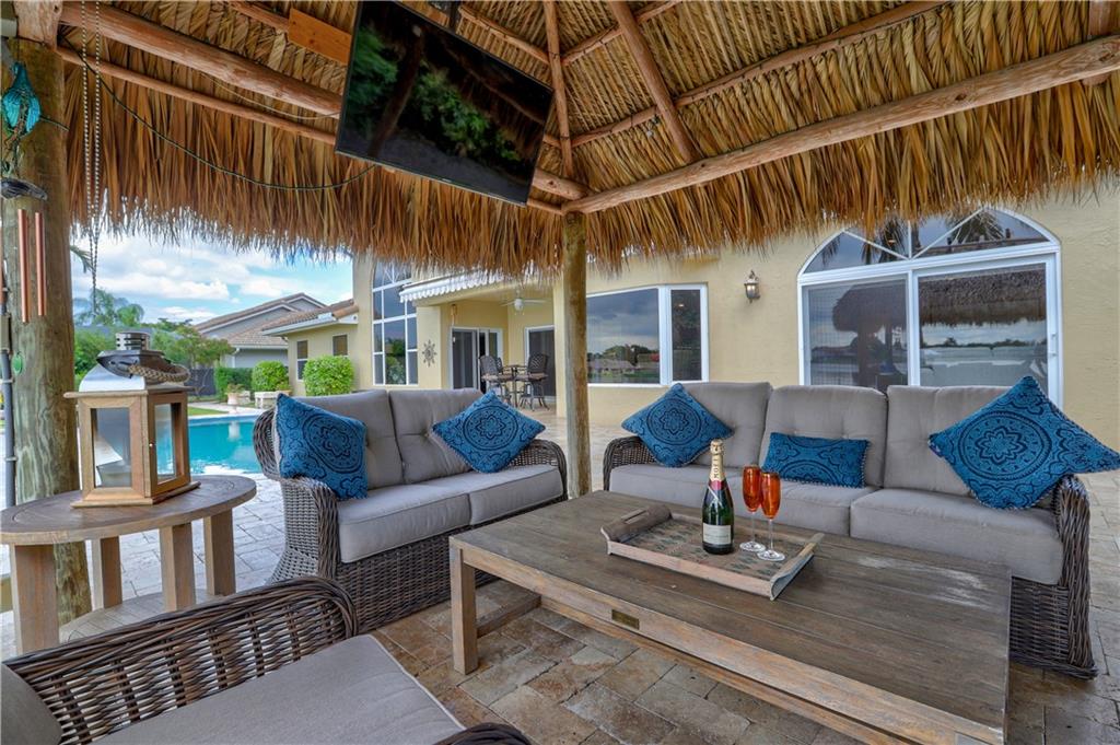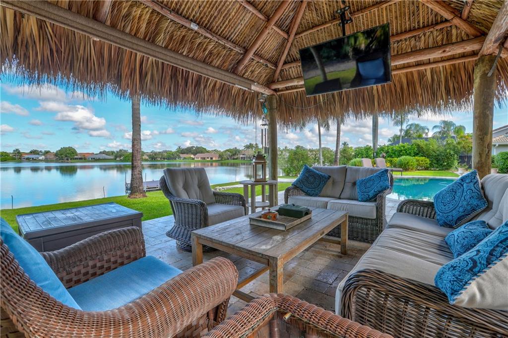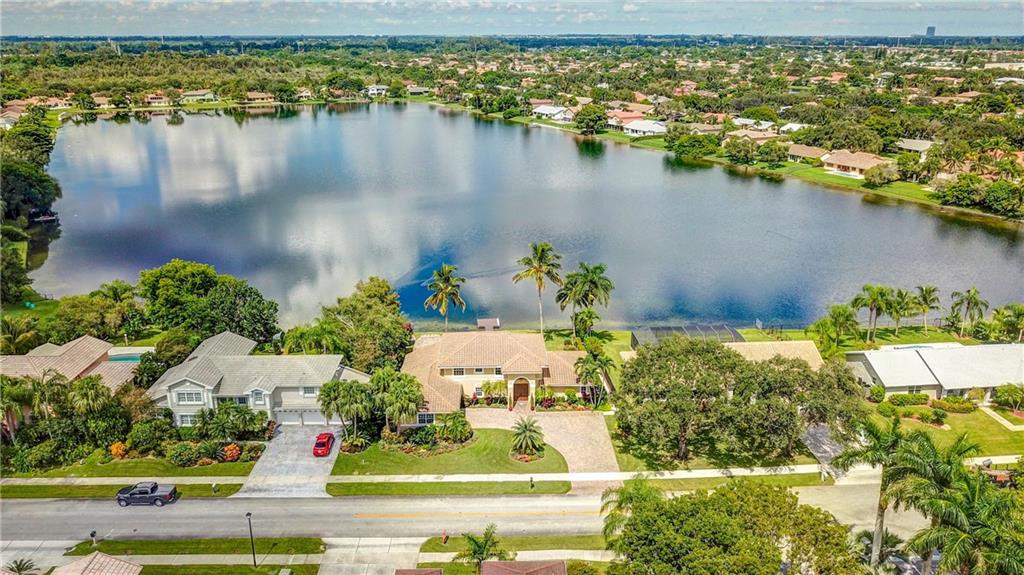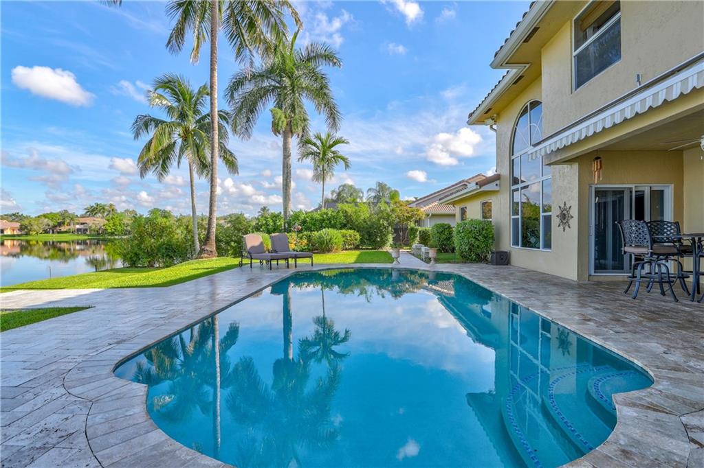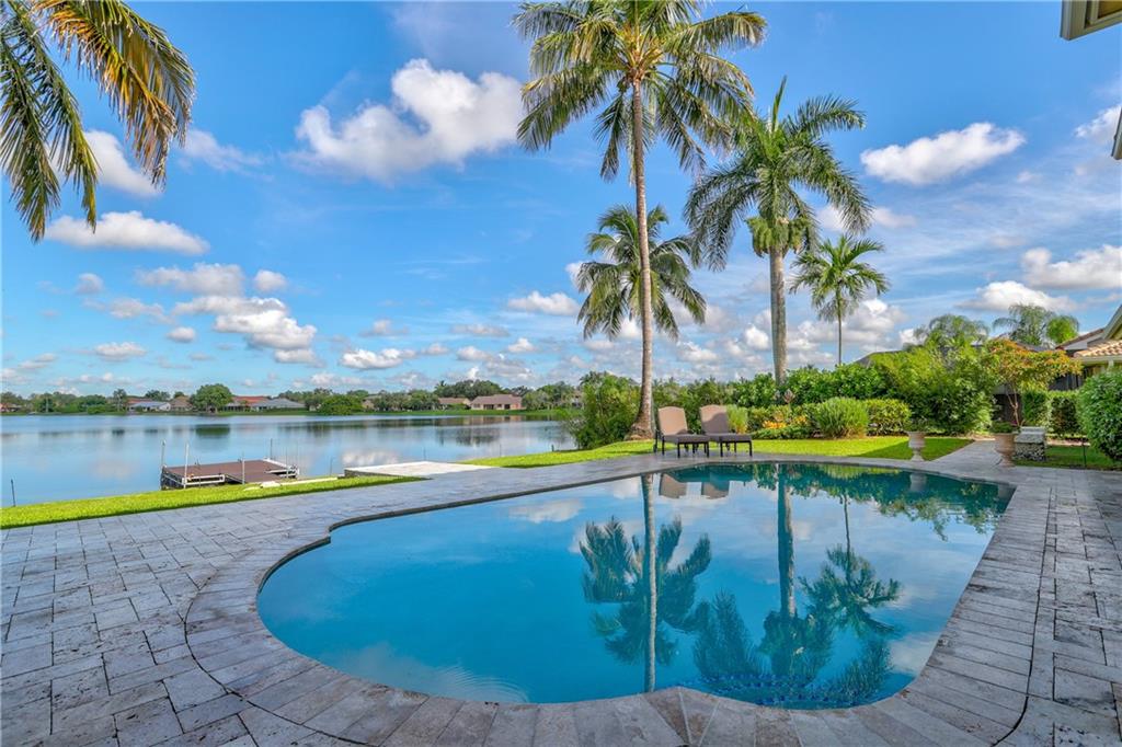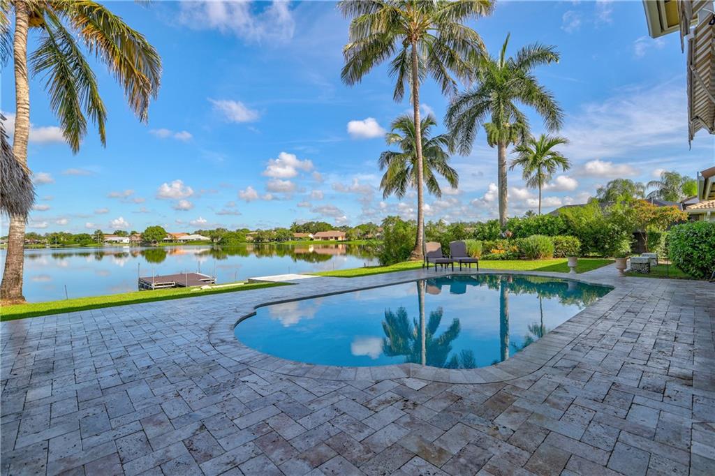 Orange, Pink, and Purple Sunsets overlooking the best water views in all of Davie. This 5/3 salt water pool home has been updated at every turn. Triple split floor plan including 2 master suites on the first floor. Spacious family room featuring volume ceilings and 20” foot custom stone/rock wall. Eat-in kitchen has been remodeled with granite counters, custom cabinetry, and new appliances. Backyard is an entertainer’s dream. Impact windows and doors, Newer Roof, security system and the list goes on.