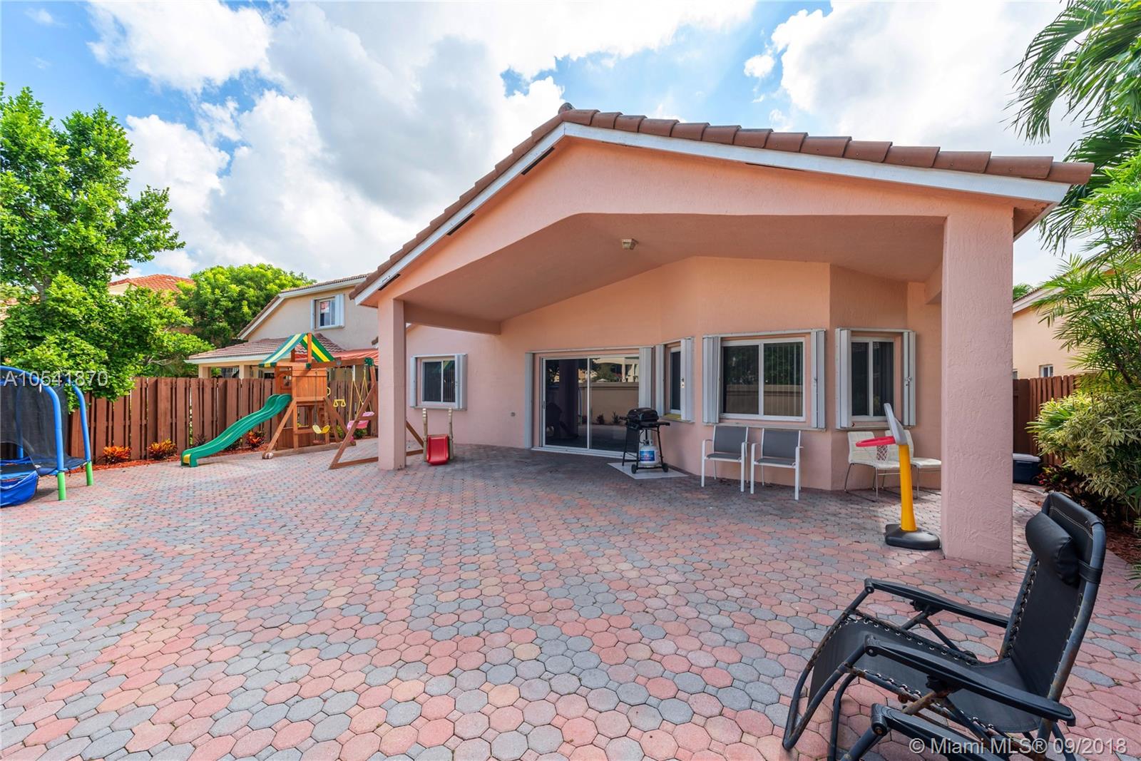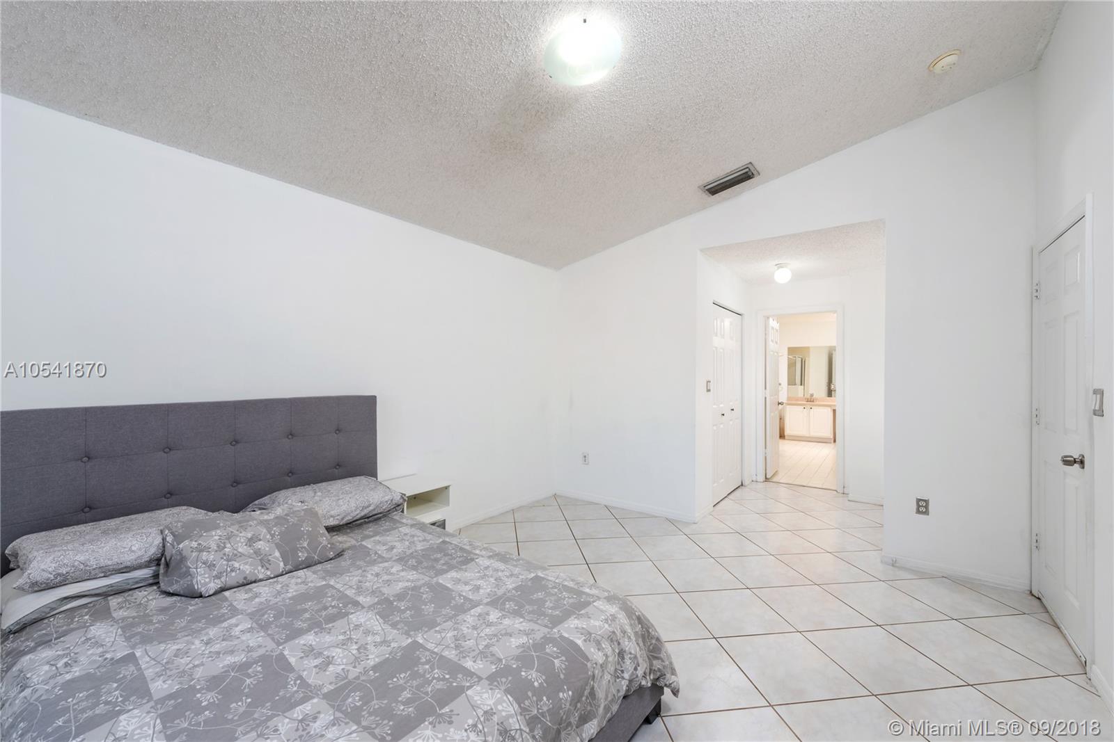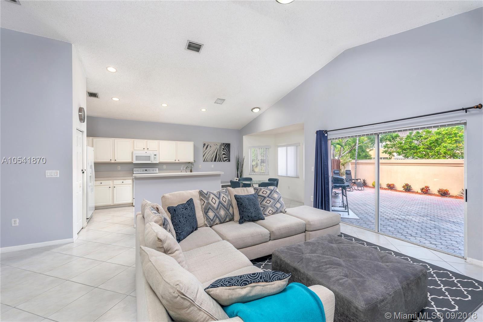 Ideally located in Doral Gardens gated community, This charming one story 4 bedrooms 3 baths residence features beautiful rarely seen vaulted ceilings, split floor plan, spacious master bedroom including two walk in closets, dual master bath sinks for his and hers, large bathtub and shower. Separate laundry room and tons of storage throughout with a two car garage. A paved well manicured fenced backyard with a covered terrace. Plenty of room for entertaining your friends and family, and let’s not forget enough room for a playground. Amenities include basic cable, alarm and security.
