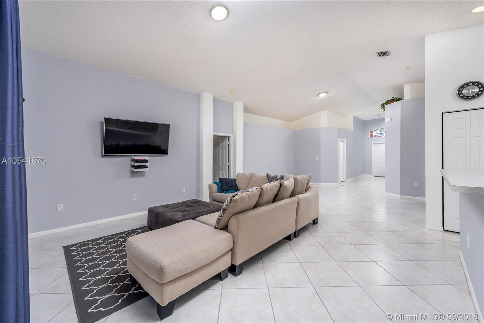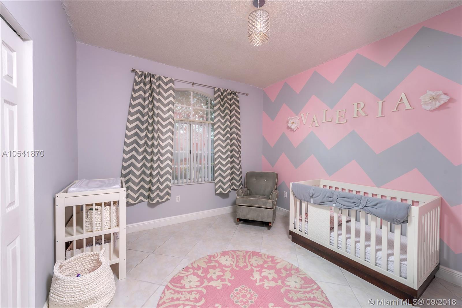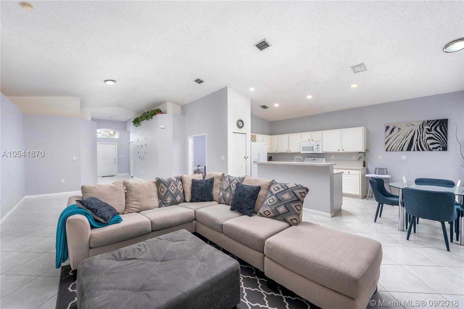 Ideally located in Doral Gardens gated community, This charming one story 4 bedrooms 3 baths residence features beautiful rarely seen vaulted ceilings, split floor plan, spacious master bedroom including two walk in closets, dual master bath sinks for his and hers, large bathtub and shower. Separate laundry room and tons of storage throughout with a two car garage. A paved well manicured fenced backyard with a covered terrace. Plenty of room for entertaining your friends and family, and let’s not forget enough room for a playground. Amenities include basic cable, alarm and security.