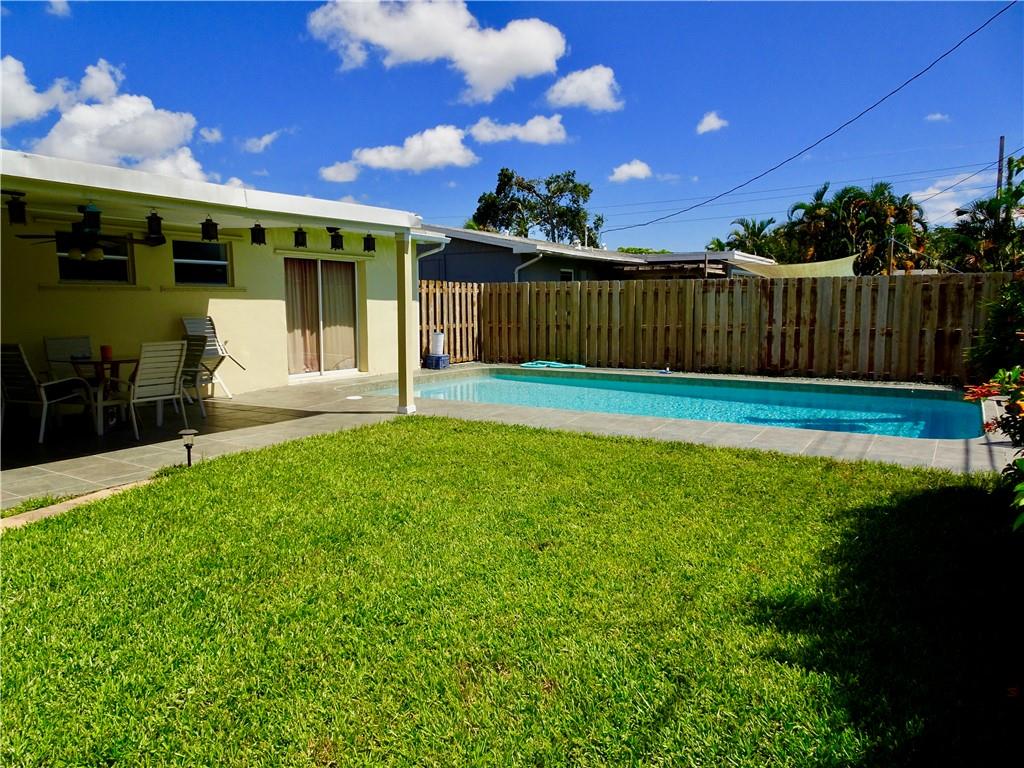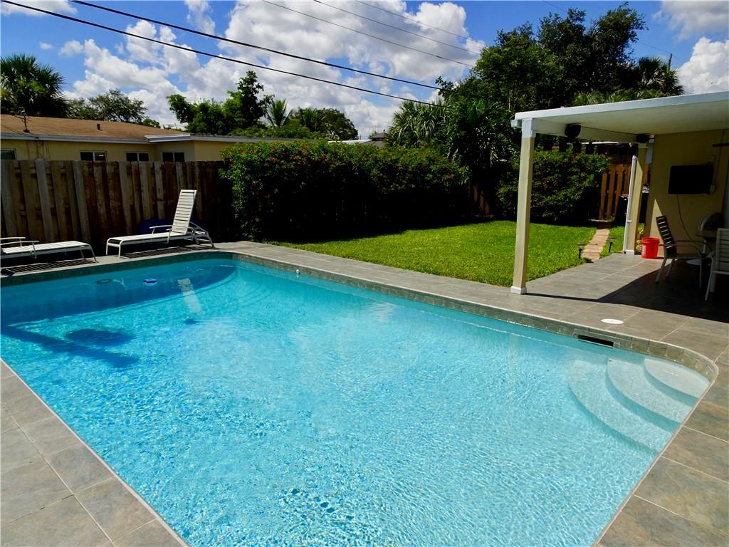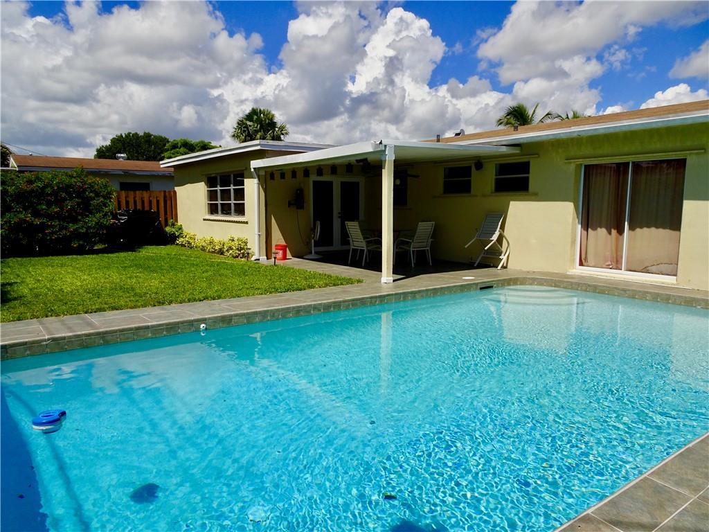 NEW ROOF!!! 3/2 Pool home fully fenced yard, w/Den/media or possible 4th bedroom if desired. Updated baths, very open flexible floor plan, hurricane shutters, great Riverland Community where you can have your boat or RV at your home NO HOA. Public Boat ramp with no fixed bridges just a few blocks away. Interior laundry, circular drive way, BRAND NEW ROOF. Close to elementary and middle schools. Highway, Beach, Hard Rock, Malls and Airport access are with in minutes. Lots of living space, custom doors. Island off kitchen is not fixed, you can remove it or keep it as a bar top/island. Stainless steel appliances. Amazing back yard not only with refreshing pool and separated space for your yard to play in, also has a storage shed for all your lawn and pool supplies.