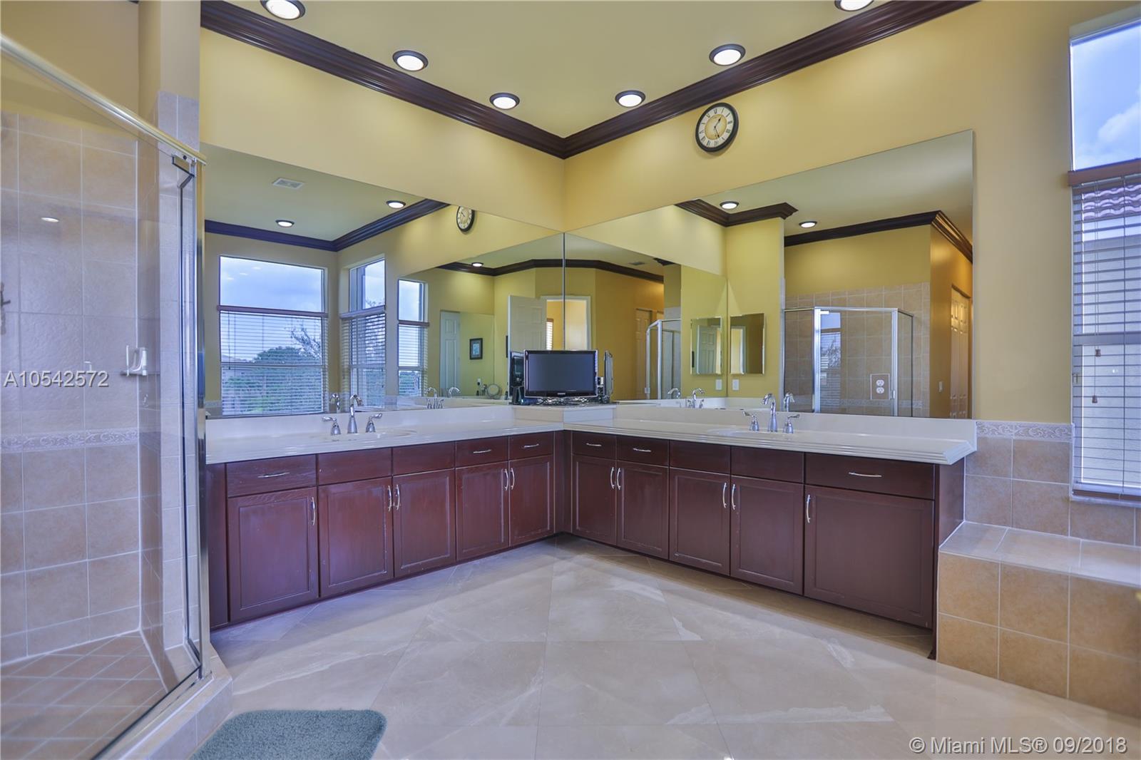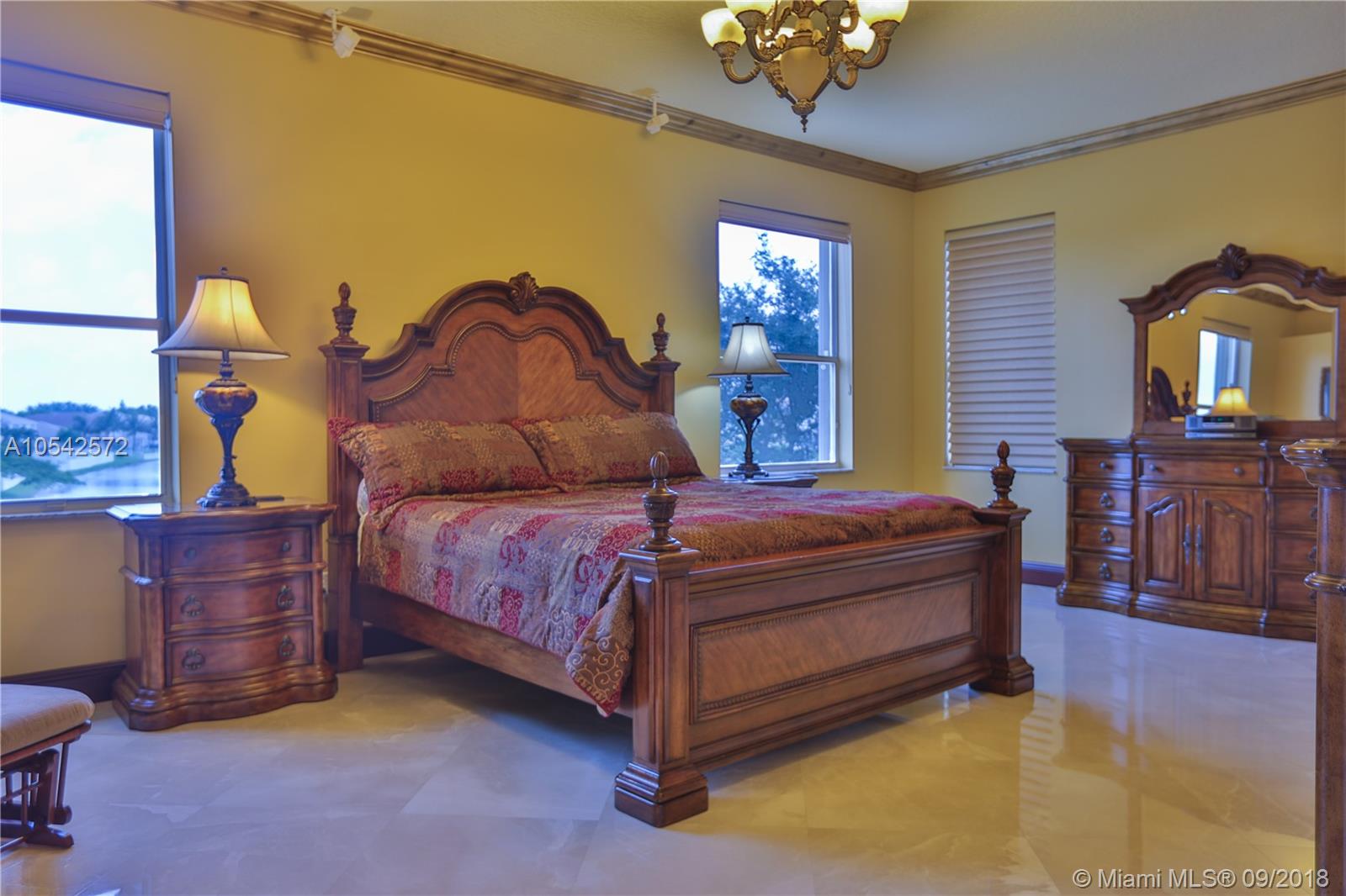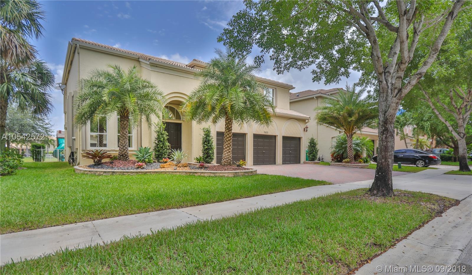 Stunning Lakefront 5 bedroom, three bath home, located in the prestigious community of Riviera Isles in Miramar, FL. Close to I-75. This home has a fabulous open floor concept, high ceilings with spectacular chandeliers and custom drapes/ modern kitchen with SS appliances, and double ovens/ tile on the first floor/wooden staircase/Marble floors all throughout the second floor, huge master suite with 2 custom made walk-in closets/ showroom style 3 car garage/separate laundry area/ Accordion Shutters/fenced backyard. This home is in move-in condition. Also, 24/7 guard, clubhouse, tennis, lagoon-style pool, and a fitness center.