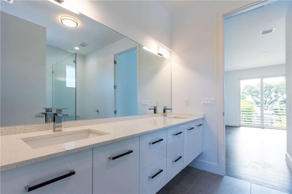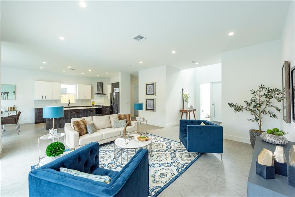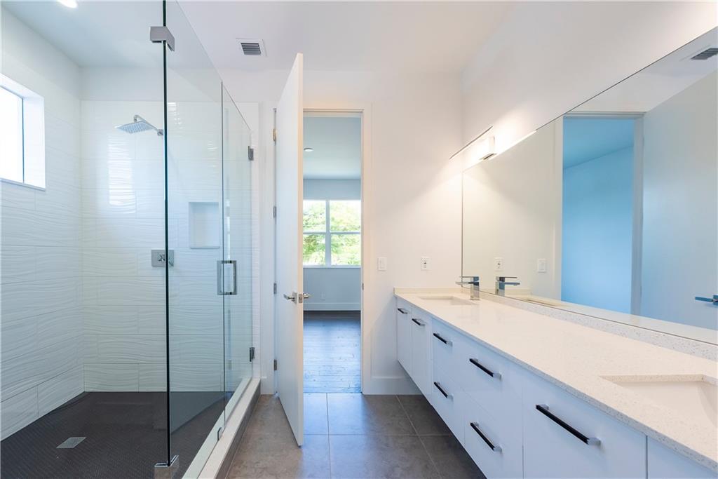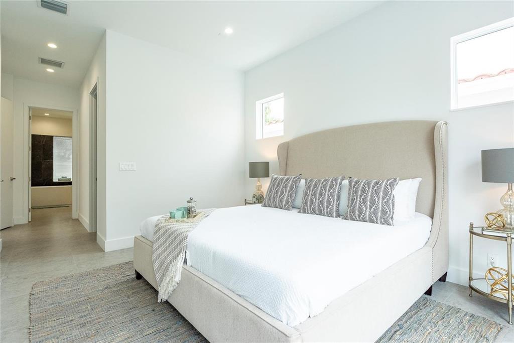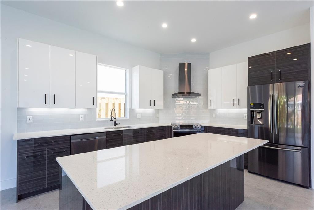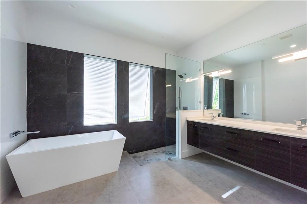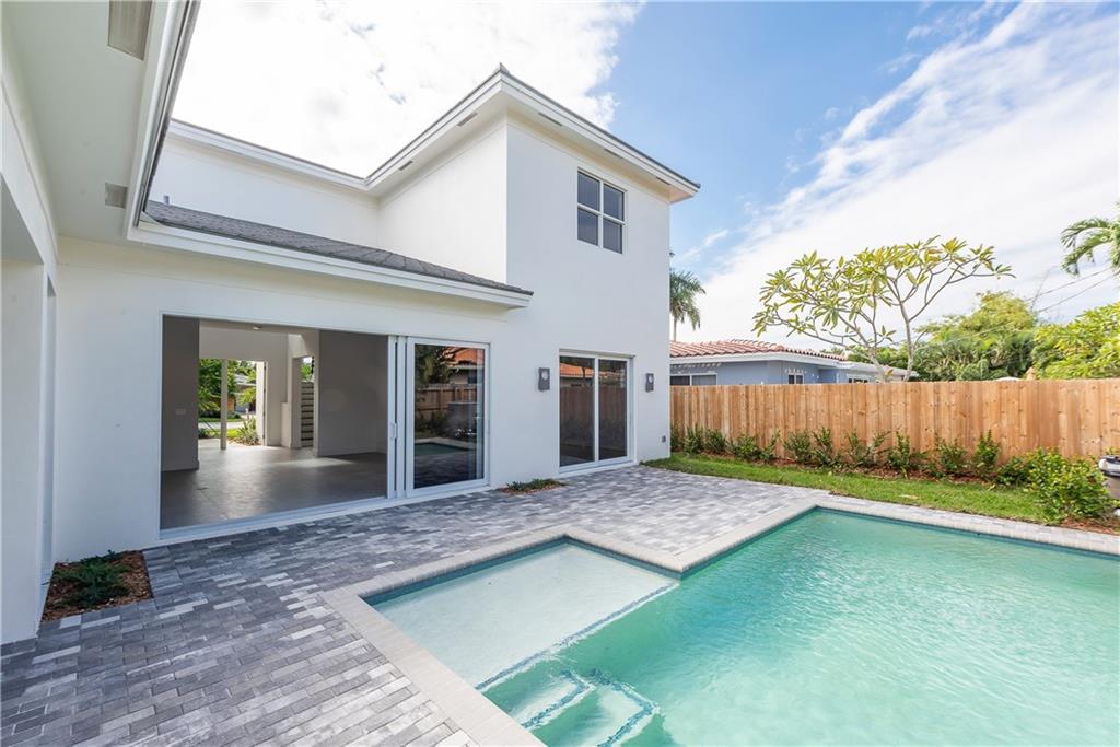 Ready for Occupancy! Dramatic 2-story new construction Modern offers well proportioned room sizes, volume ceilings, walls of windows and cool, contemporary finishes. Features incl: a first floor master suite, powder room, porcelain tile floors, a 2-story foyer, an open Great room design and a Chef's kitchen with Euro-cabinetry, stainless appliances and large center island. The second floor has Bamboo wood flooring, two guest rooms with a shared Jack and Jill bath plus a third guest room with bath in-suite. Other features include: a covered porch perfect for entertaining, a sparkling pool, a fully fenced back yard plus a two bay garage.