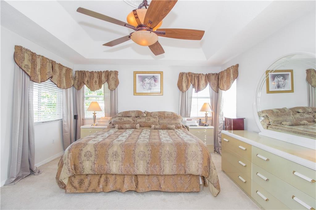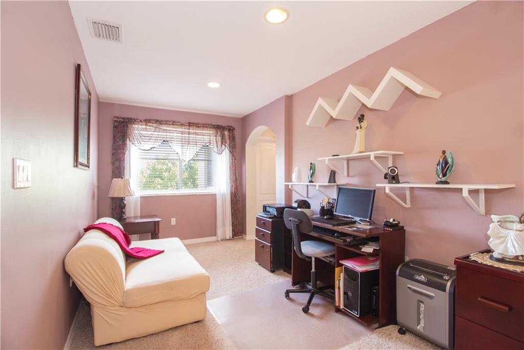 Gorgeous lake front home in gated community of Monarch Lakes! Home is located on a quiet cul-de-sac/situated on a large pie shaped lot! Soaring two-story high ceiling creates a feeling of openness and prestige. The recently updated kitchen features modern quartz countertops and a decorative backsplash, lg snack bar & breakfast area. 1 bedroom & full bath are located on first floor. Upper level you will find a loft which is currently being used as an office & 4 additional bedrooms. The master suite features a sitting area, tons of natural light, lg master bath with his & her vanities, separate shower & bathtub. Huge backyard perfect for entertaining w/covered sitting area overlooking the peaceful lake. Mango & avocado trees are in the backyard. There is plenty of room to build a pool!