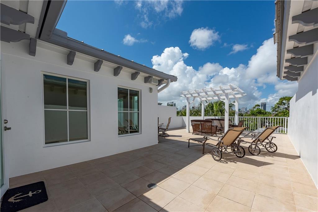 Island Enclave at Victoria Park. This estate-sized 3BR/4BA town home offers 3669 SF of living on three levels. Features include dramatic 3-story ceilings, an open floor plan, a floor-thru staircase, solid wide plank wood and travertine marble flooring and custom finishes throughout. Two new A/C systems (2017). Spacious interiors include: Den, a Family room and Living room, a Breakfast area, a formal Dining room plus a 3rd floor Media room w/built-in wet bar and full bath. A Chef's kitchen has hardwood cabinetry, island w/ counter seating, granite countertops, natural gas cooking and a wine bar. With two covered porches, a balcony, a roof top plaza w/ pergola and a courtyard with private pool this home offers tremendous outdoor living space. Only blocks to Las Olas, minutes to the beach.