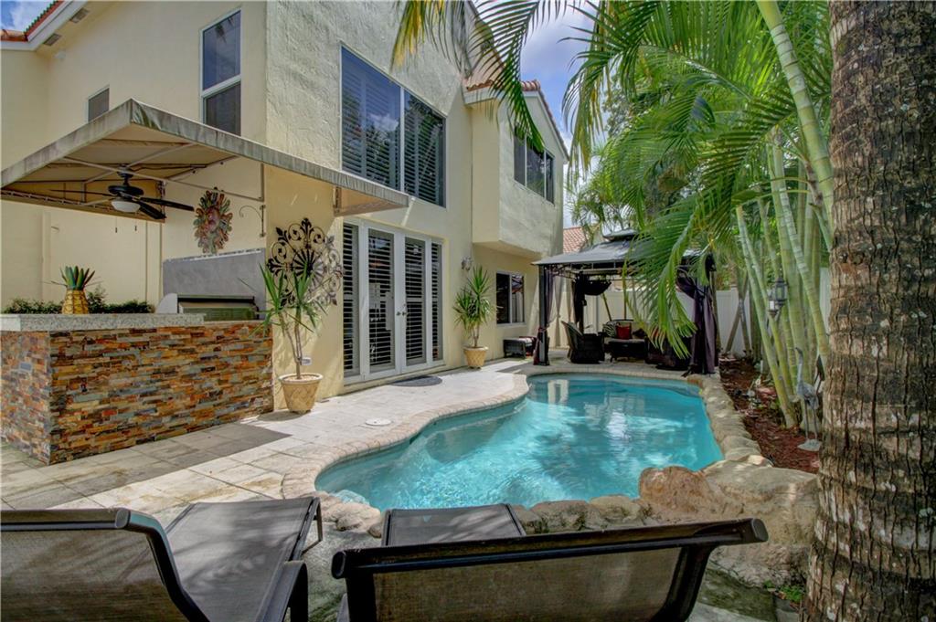 A rare designer gem in the heart of Weston. This 4 Bedroom + Den, 2 1/2 Bath home is a beautiful, super-versatile space that checks all the boxes. The home sits on a tranquil cul-de-sac nestled in a private picturesque setting. The home features a his and hers walk-in closet, a beautifully appointed cook's kitchen with generous food preparation spaces, sleek cabinetry, dark granite countertops and stainless steel appliances. The home hosts luxury fittings and fixtures; crown molding throughout, living room custom slate accent wall, stone accent walls throughout, pool, plantation shutters, ample storage space, and a custom iron staircase. Tranquil master bedroom & bathroom designed for pampering with a personal steam shower. Hurricane Impact Windows, 4 Years Old Roof & 1 Year Old AC
