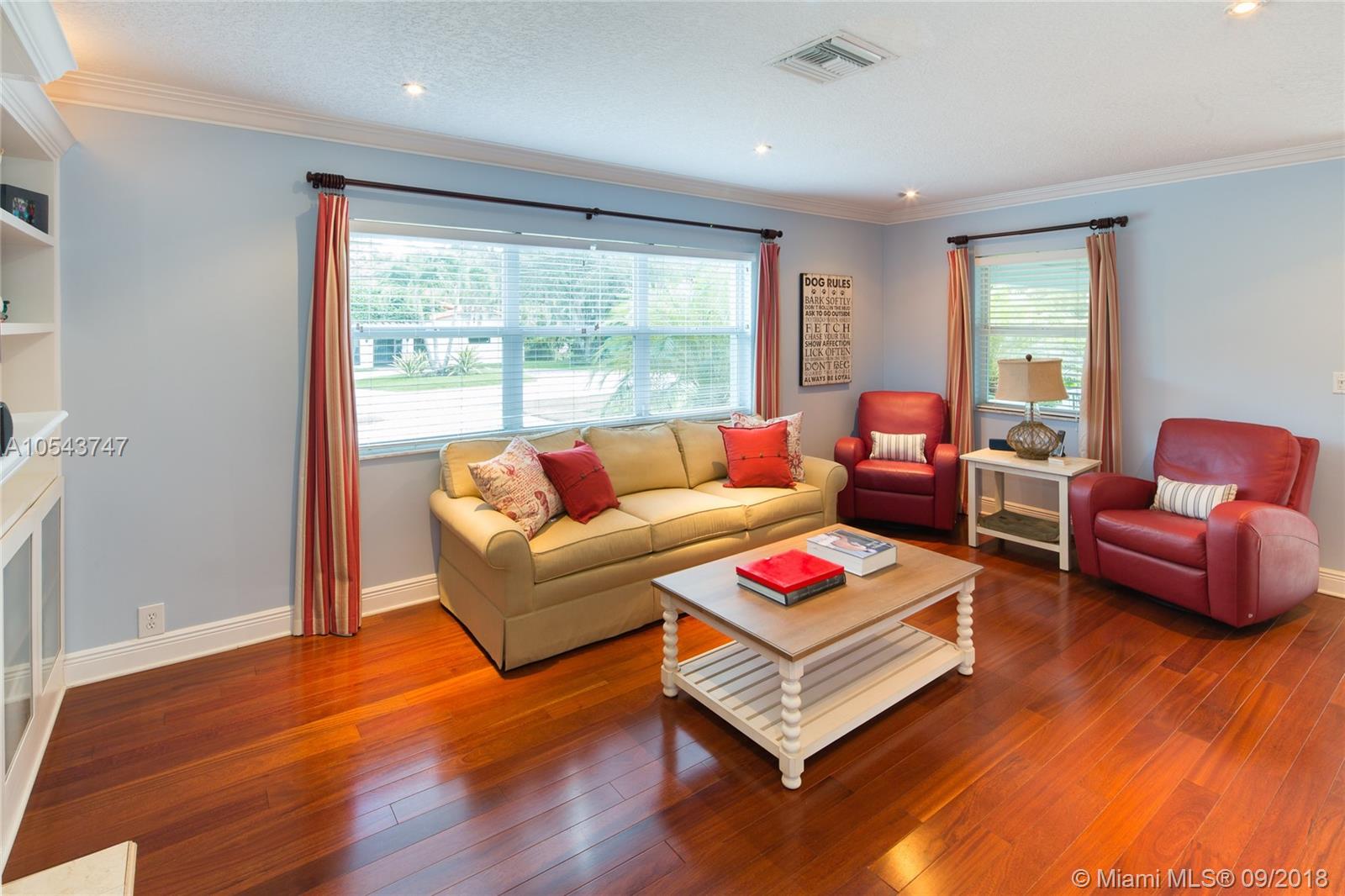 This immaculate turn-key Miami Shores home has much to offer!! Located East of Biscayne Blvd, this spacious, bright & airy three bedroom two bathroom home is adorned with beautiful finishes including Brazilian cherry and marble flooring, electric fireplace, crown moldings, recessed lighting,newer kitchen w/wood cabinets , quartz countertops and stainless steel appliances.Tastefully remodeled bathrooms with quartz countertops, large bedrooms w/walk in closet in master, oversized covered deck with awning, impact windows and doors freshly painted inside & out, new drainfield, fenced backyard w/room for a pool, new tankless water heater, security system, water filtration system, Nest thermostat.