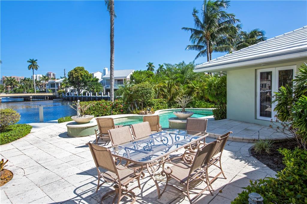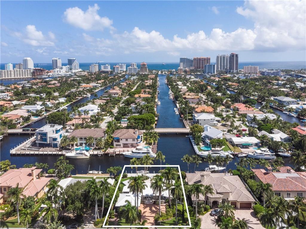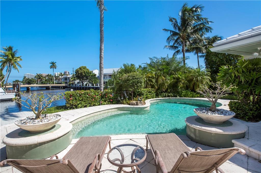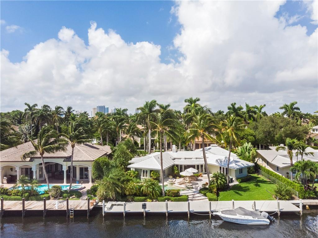 Captivating waterway views from the moment you enter this tropical retreat in E. Fort Lauderdale's Las Olas Isles. The commanding curb appeal & towering Royal Palms leads you into an open floor plan with an abundance of natural light provided by floor to ceiling windows overlooking the expansive outdoor living space, freeform pool & waterway. The great room boasts a tray ceiling & the dining area has a vaulted wood beamed ceiling. The open gourmet kitchen with expansive counter tops offers a 6 burner gas range & lots of cabinet space. The kitchen opens to a screened in tropical loggia ideal for alfresco dining. The master bedroom overlooks the pool, waterway & offers a large walk-in closet. Ideal for the avid boater with 100' of deep waterfront & no fixed bridges. Sq ft from IMAPP