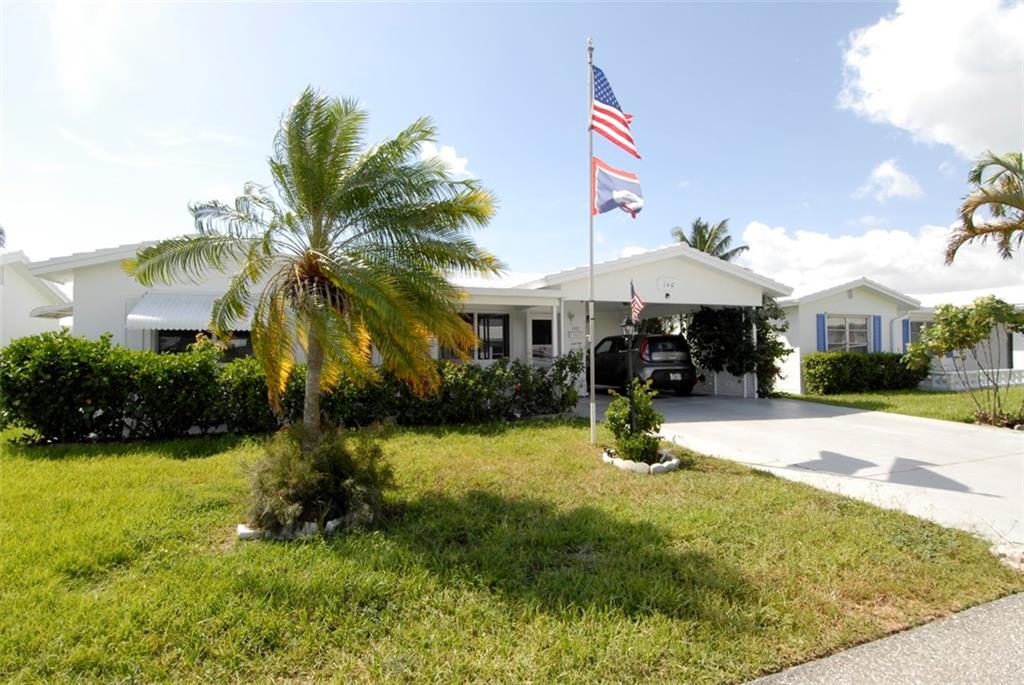 Immaculate 2/2 with Newer Roof and approximately $25,000 in Upgrades! Free golf for all owners. All NEW hurricane impact and tinted windows and storm doors, NEW Central Air conditioner, NEW tiled floors in Florida and Living rooms, Freshly painted, Renovated Kitchen with NEW cabinetry, Renovated Baths. NO LAND LEASE. Large outside patio for entertaining. New Security System. Close to beach, I95, and entertainment. Two clubhouses with heated pools, Nine hole golf course, picnic area, active lifestyle in this 55+ community.