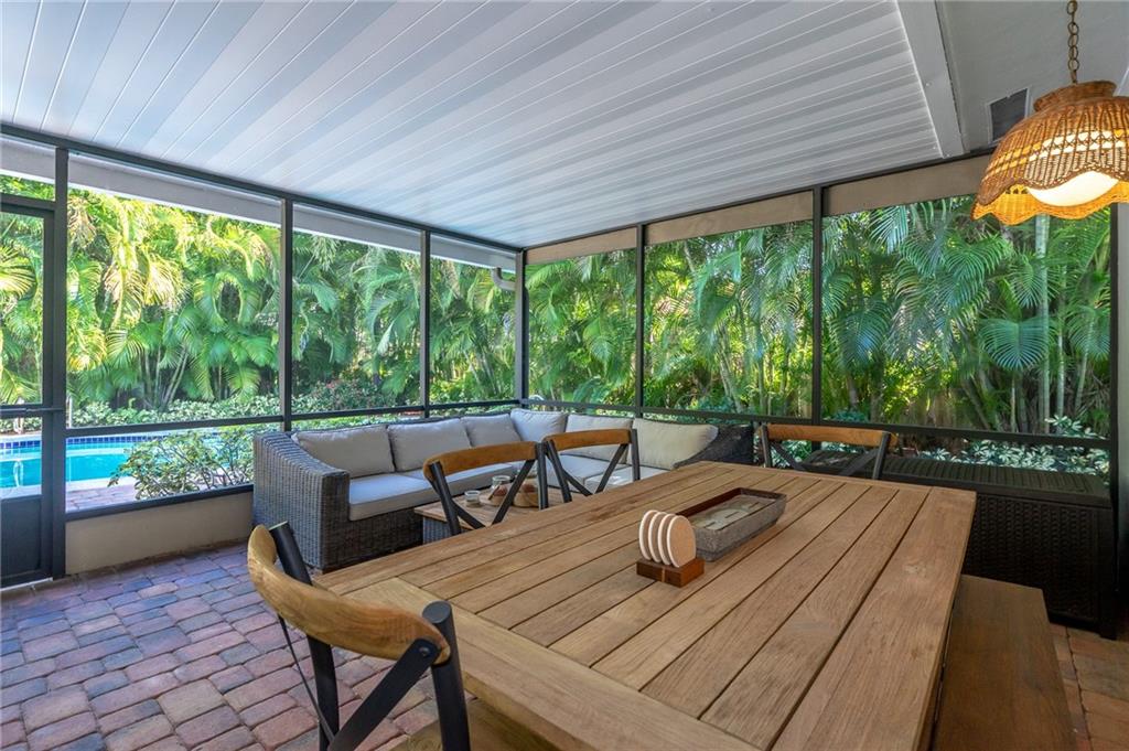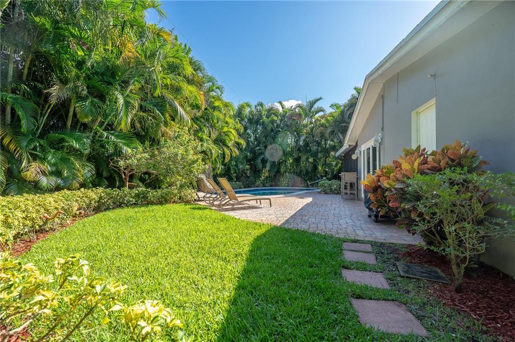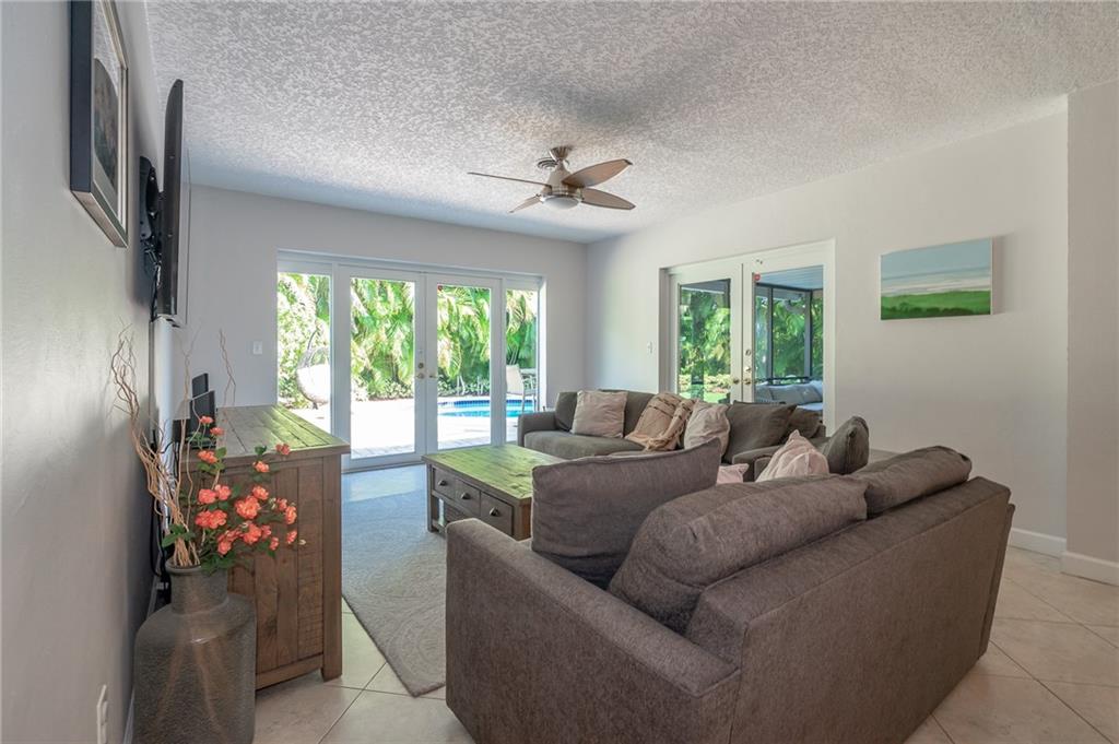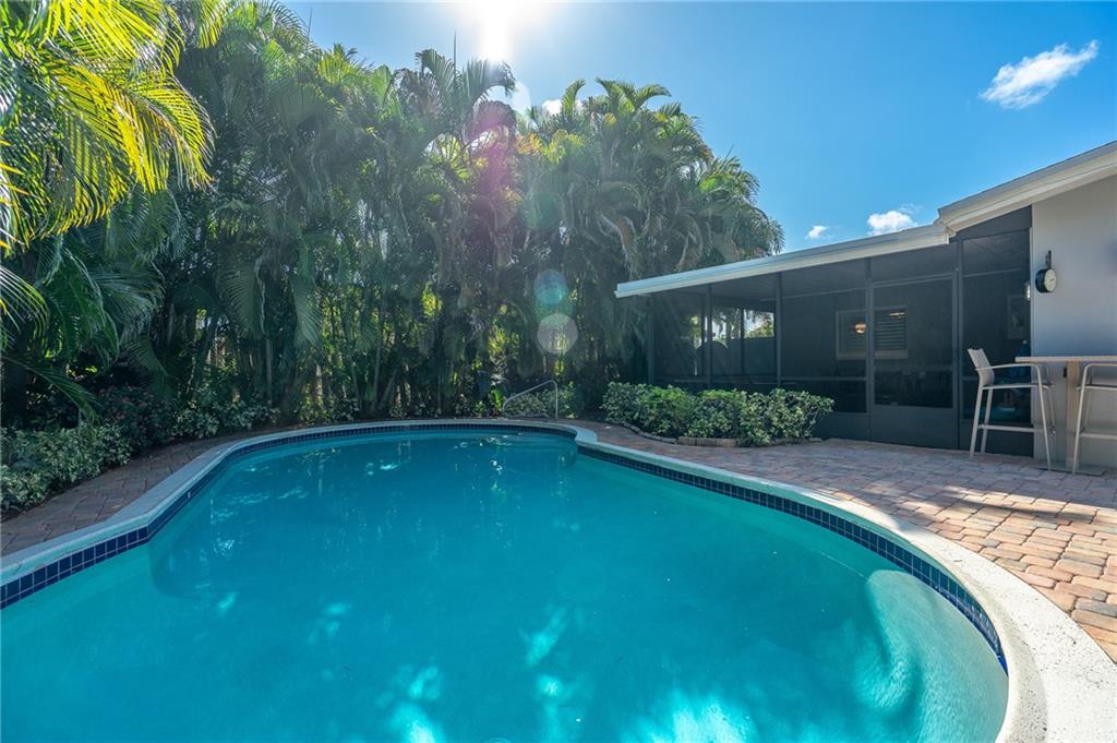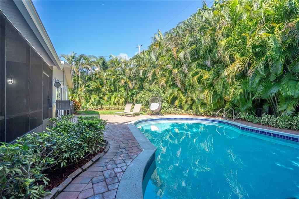 Delightful 3/2 Pool home set amidst lush tropical landscaping for total privacy w/,outdoor lighting & water feature creating a resort like oasis, free form pool & large paver patio complete this fenced yard . Kitchen appliances new in 2016, AC 2017,WH 2018. Other features: screened sun room, Plantation shutters, impact windows and French Doors, separate laundry room. Updated master bath, Second Bath/Cabana Bath updated in 2016. Kitchen open to living & dining area great for entertaining, kitchen features granite counters and under counter lighting + tile back splash. Irrigation system on well water, pump new 2017. Exterior storage room in back yard. Nest thermostat, Comcast Security Camera and alarm in back of house. Close to stores & major hwys & less than 3 miles to the beach!