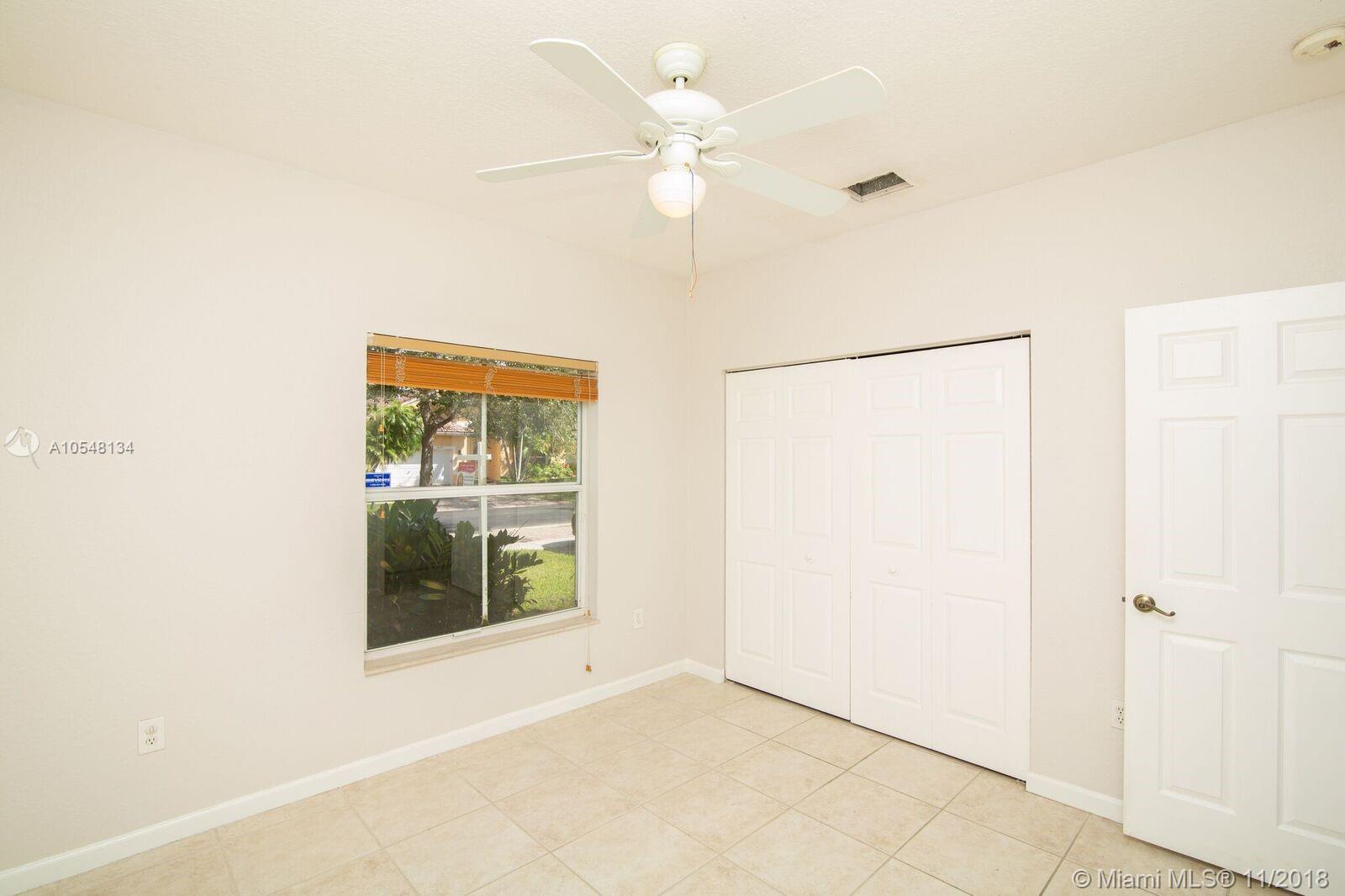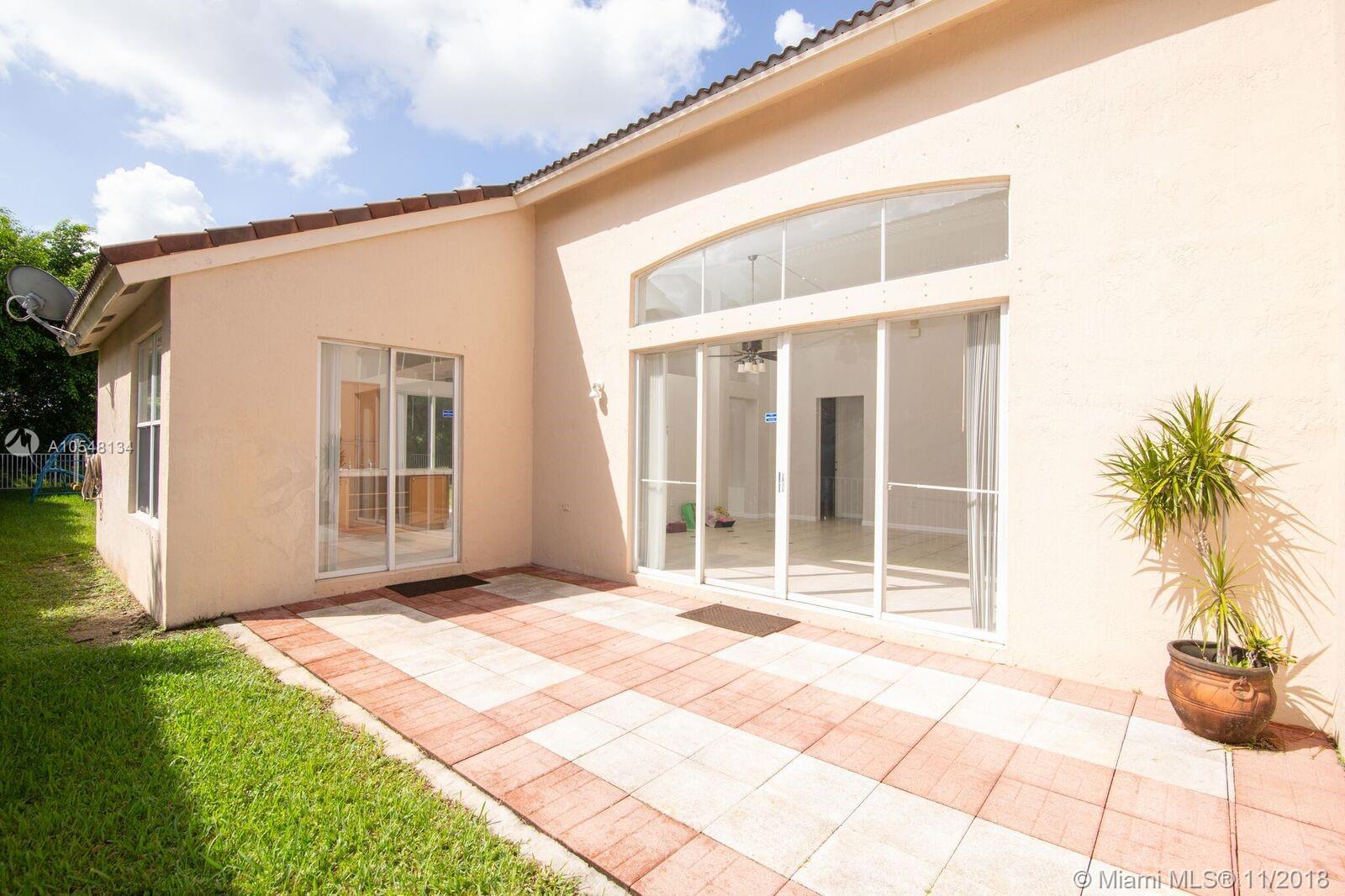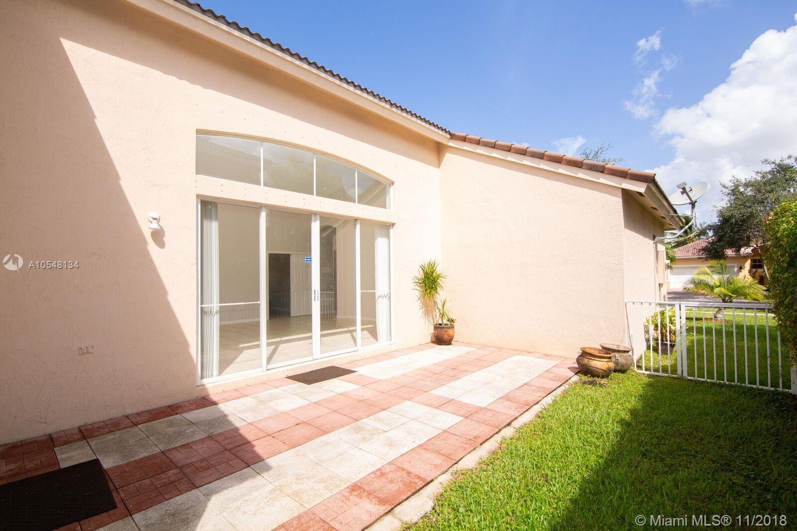 HUGE AND VERY PRIVATE BACKYARD! SPACIOUS AND BRIGHT HOME WITH A LAYOUT THAT INVITES YOU TO FEEL IMMEDIATELY AT HOME. ALL HOUSE IS TILED. DINNING AND LIVING ROOM AREA HAVE A VIEW TO A SMALL PATIO. MASTER BEDROOM IS SEPARATED FROM TWO OTHER ROOMS. GREAT COMMUNITY WITH HEATED POOL, CLUBHOUSE AND BIG EXERCISE ROOM. DON'T MISS VISITING!!!