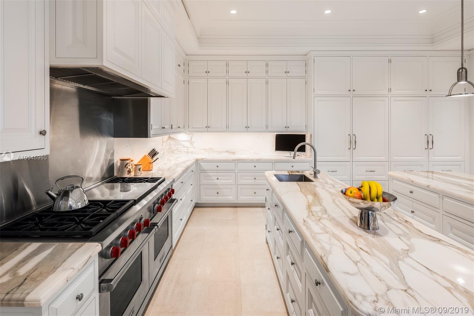 Impeccable waterfront estate located in the heart of Miami Beach on desirable Sunset Island I. This meticulously curated property is the epitome of luxury with 116 ft of waterfrontage, 6 bedrooms, 7 full and 3 half bathrooms, summer kitchen, saltwater pool and spa, and endless water views throughout. Exquisite soaring archways frame large living and multiple dining/entertaining spaces. The gourmet eat-in chef’s kitchen features top of the line stainless steel appliances, double islands and opens into the spacious family room. Enjoy tranquil water views from the master suite complete with hardwood floors, two spacious walk-in closets and serene master bath with dual vanity and soaking tub. Additional features include library/office, 2 car garage and separate guest house.