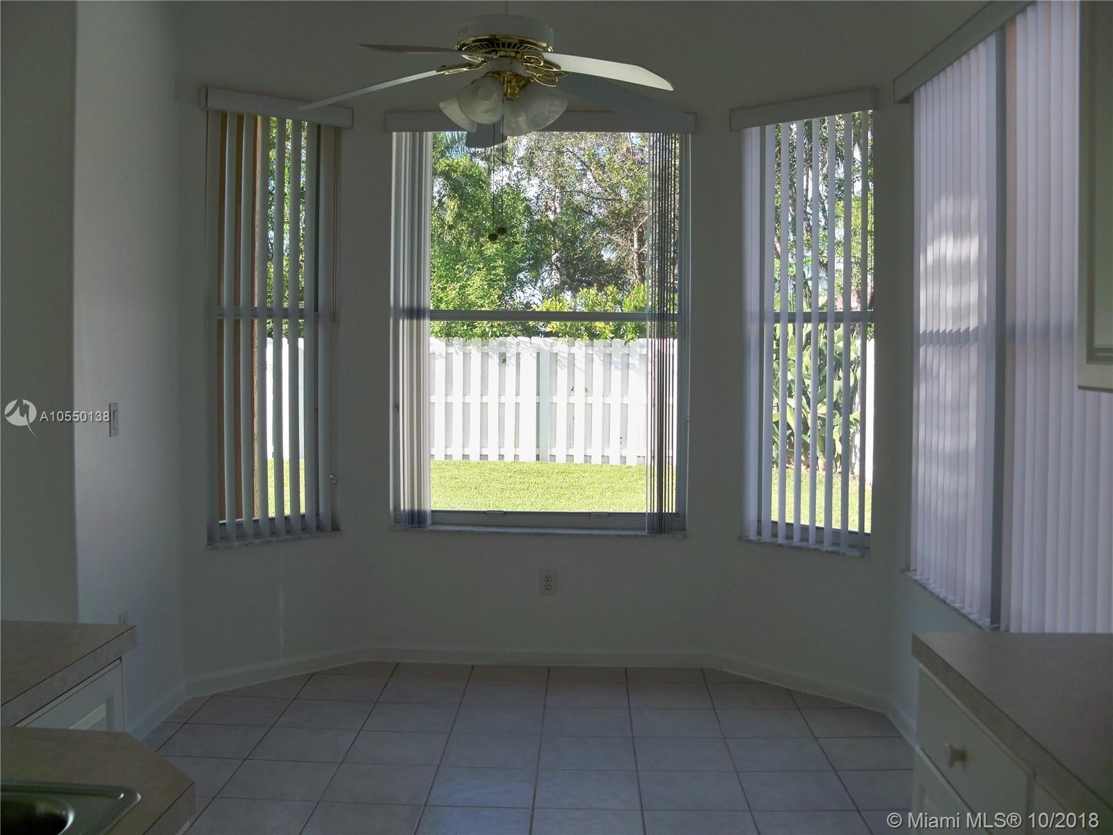 Beautiful 4/2.5 Grace model located in the prestigious Sunset Lakes community. NO rear neighbors.Ample DEN with sliding glass door to access covered terrace. Separated formal living and dining rooms. Family room with 2 sliding glass doors to easy access to the covered terrace. Kitchen with large eat at island and 42' European style cabinets. Breakfast nook. Master suite with 2 walking closets. Master bath with double sink vanity, 2 cultured marble vanities and cultured marble Roman tub.Bath #2 with double sink, cultured marble vanity and private shower. Laundry room with sink. EXTENDED covered terrace. Fenced backyard. Side entry garage. South facing home with low sun exposure since the majority of windows facing North (only one little window facing West).