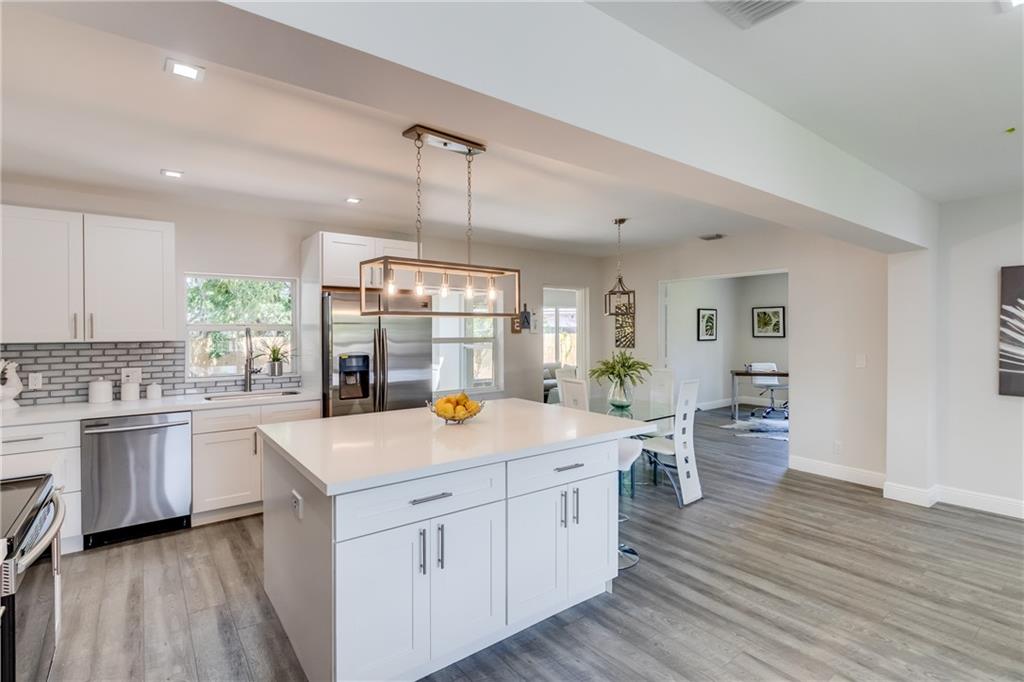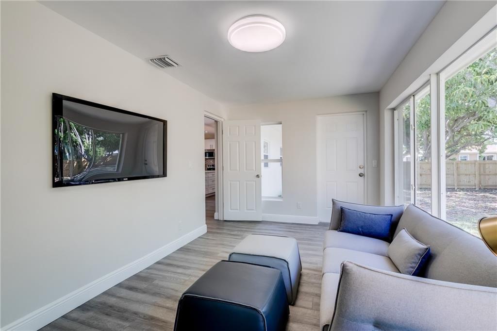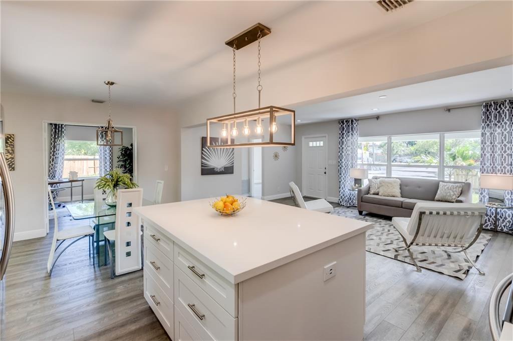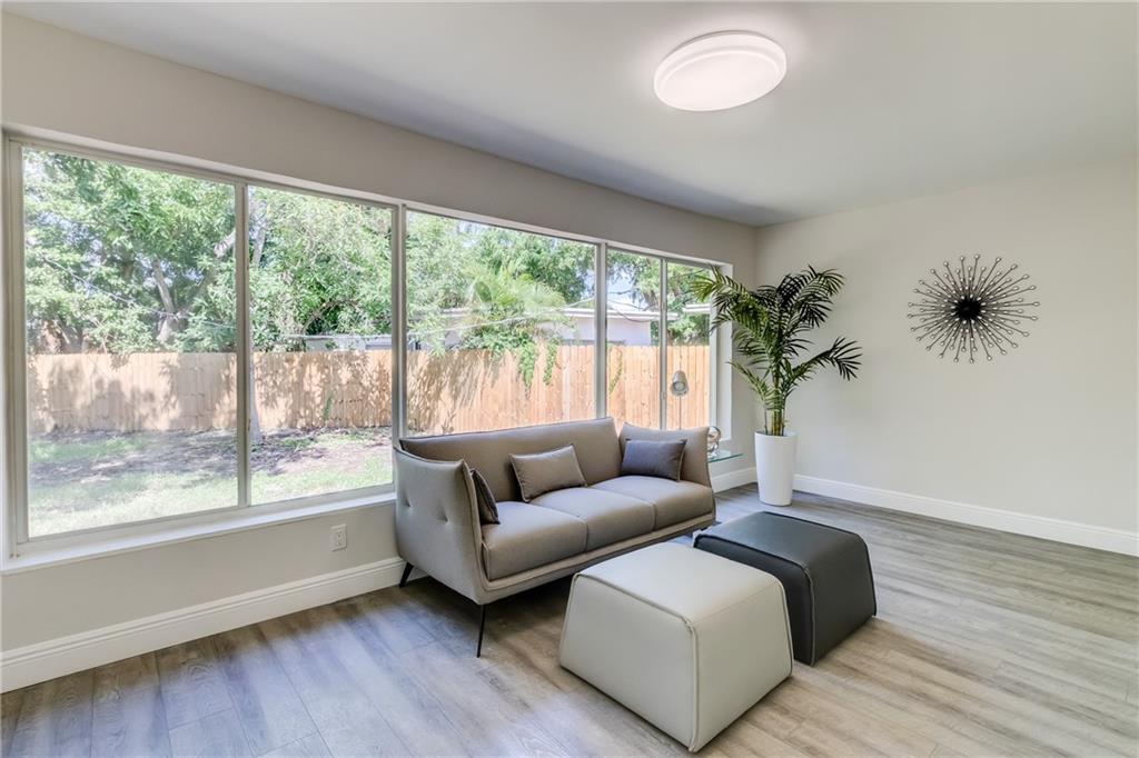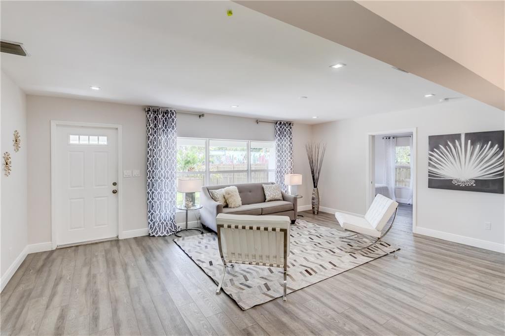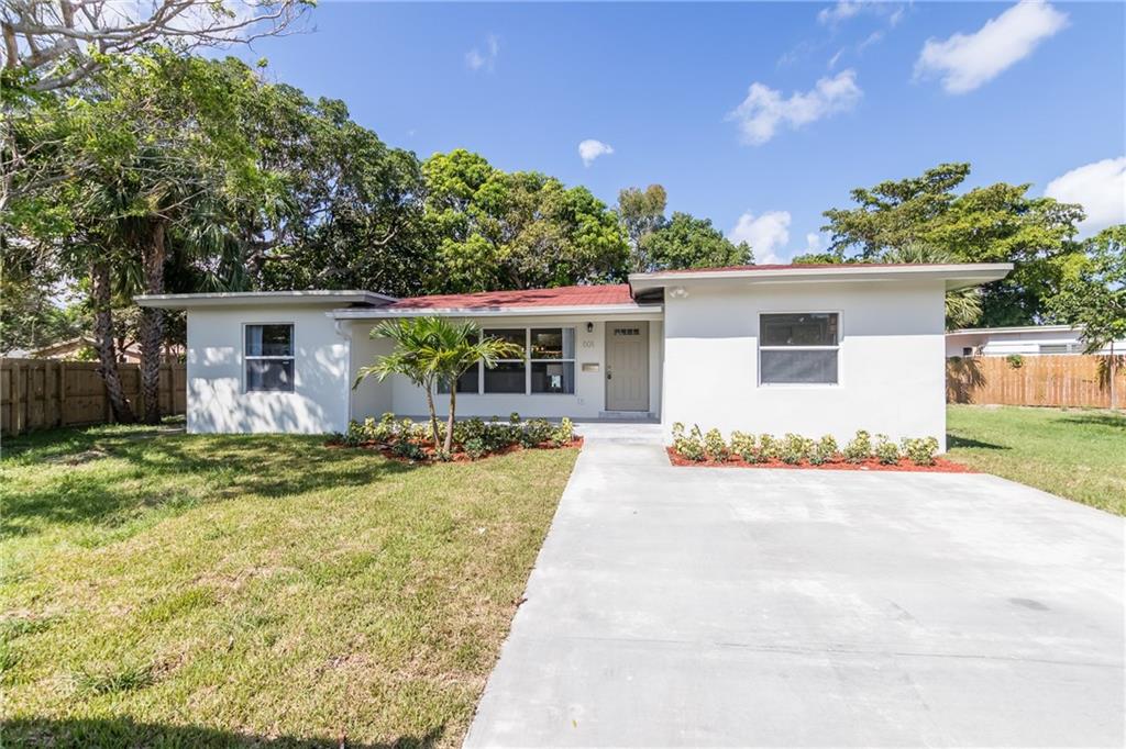 Absolutely stunning renovation in Lauderdale Park just around the corner from Wilton Manors!!! Large open concept 3 bedroom 2 full bathroom home with bonus room in the rear, overlooking the nearly half-acre fenced corner lot. Gorgeous island kitchen with 3-D glass back-splash, solid cabinetry, stone counter tops, stainless steel under-mount sink, disposal and all new appliances. Bathrooms built to be loved with fresh clean look, modern tiled showers, solid cabinetry, stone counter-tops and brand new fixtures. Whole house is trimmed in bright white, cool-look neutral paint and new plank flooring throughout. Master quarters has its own AC unit to make your sleeping space an icebox! All new electric, plumbing, central AC, roof, fencing and much more...