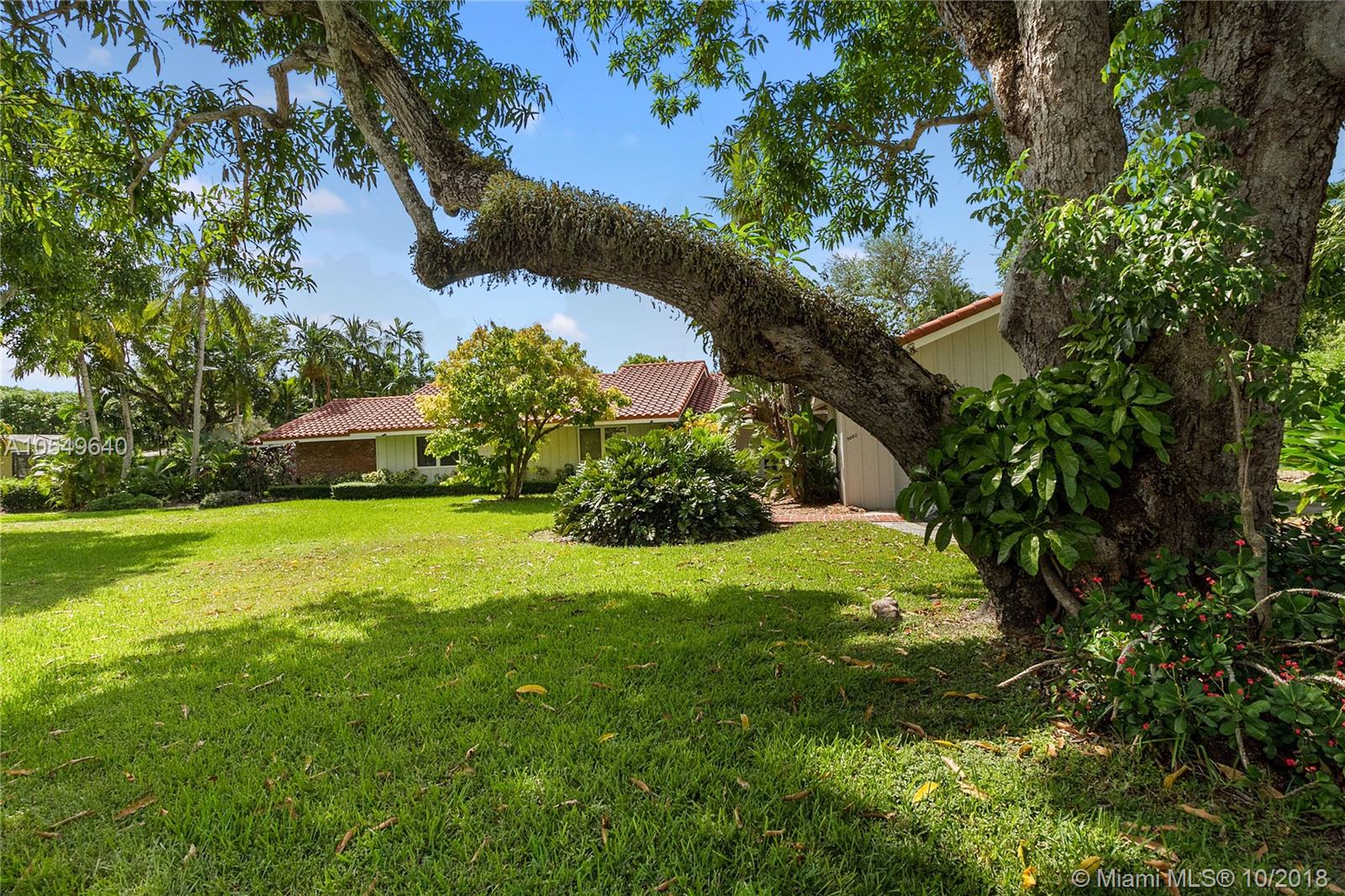 LOCATION, LOCATION, LOCATION! This North Pinecrest Estate is nestled at the end of a quiet CUL-DE-SAC with large mature trees. A beautiful home with 5 bedrooms + Den / 3.5 Bathrooms / 2 car garage, oversized Pool updated Kitchen with wood cabinets, granite, SS appliances, gourmet gas Dacor Range, high vaulted wood beam ceilings, 24x24 rectified Italian tile, Impact Windows/Shutters, New A/C and 2014 Roof. The master bedroom retreat has Bamboo floors and Spa-Styled Bathroom with Private Courtyard. Outdoor areas and chickee hut Bar-B-que area provides enjoyment for full Florida living. Secluded, yet in the mist of everything. Walk to the Royal Palm Tennis Club, or be minutes away to Trader Joe’s, great restaurants, Dadeland Mall, Metrorail, major thoroughfares and the Best Schools.