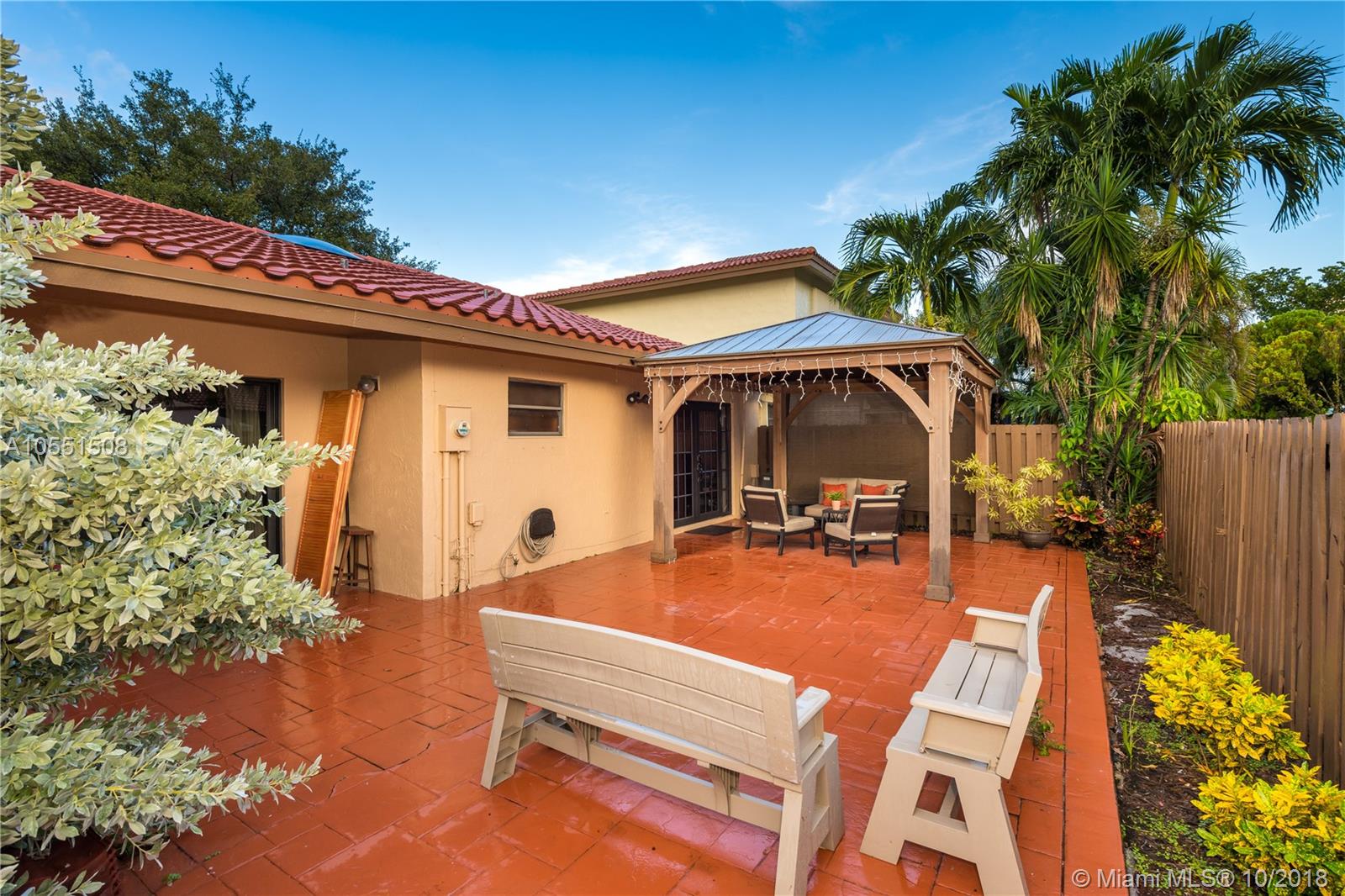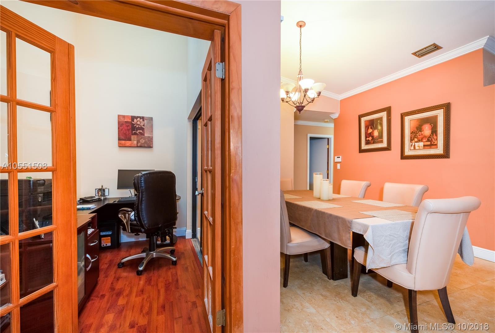 Completely upgraded & very well maintained home with a new roof, located in a quiet, family oriented & gated community. This beautiful home has a spacious layout with a Living/Dining & Kitchen/Family room combinations & an extra office/den. Upgraded Kitchen featuring granite counter tops, wood cabinets & SS appliances. Finishing touches include Crown molding, Impact french doors, Tile & Wood floors throughout. Upgraded bathrooms with granite & tile. Large paved backyard with a custom built pergola offering plenty of space for outdoor lounging or entertaining guests. This gated community offers a wide variety of services & amenities such as multiple sports courts, picnic area, fitness center, club house & pool. Also featuring 4 car parking spaces aside from the garage and is a Corner home!