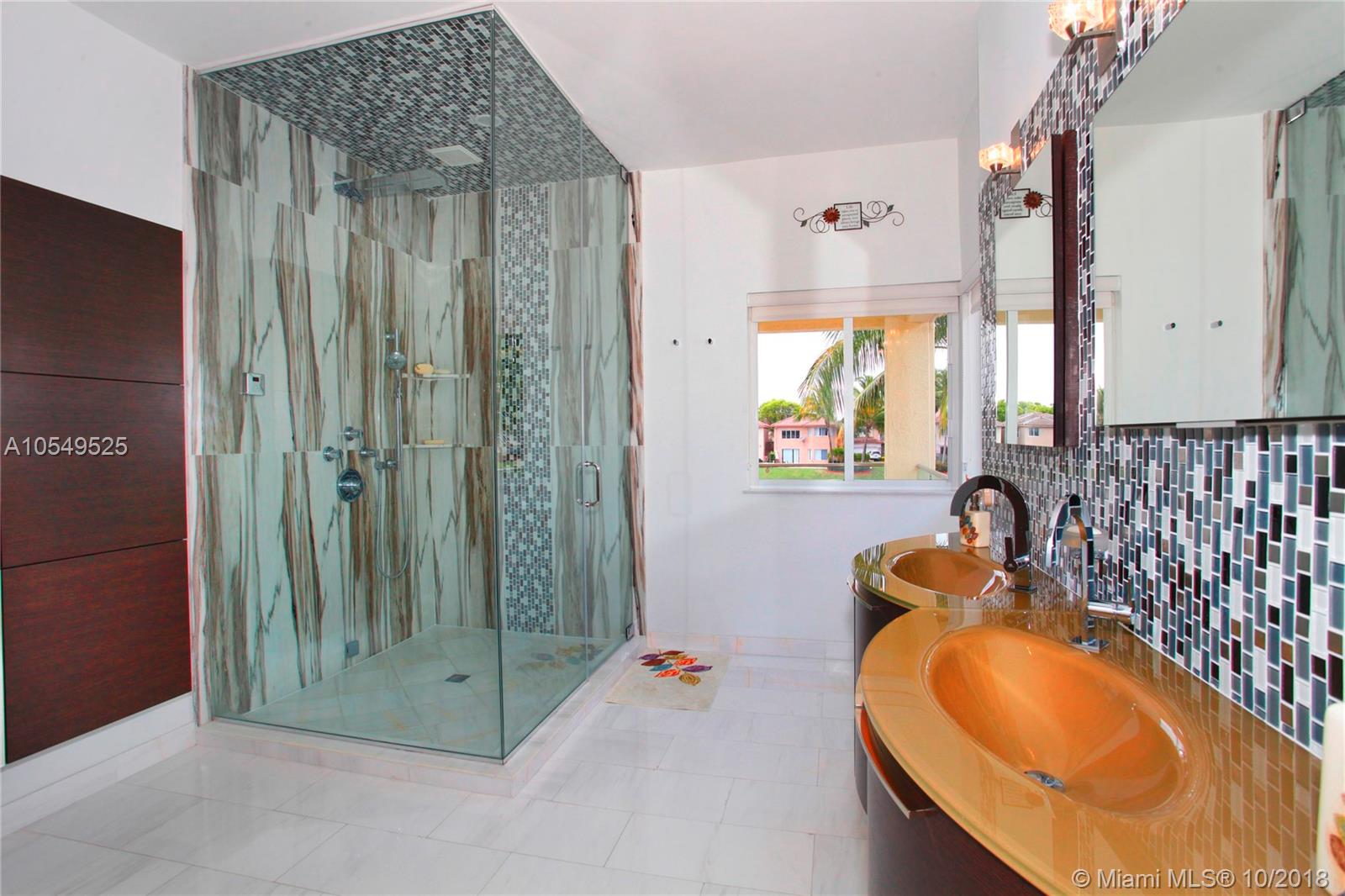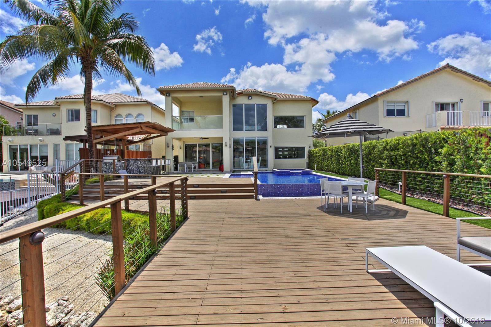 Best lakefront home for sale in exclusive DORAL ISLES-CATALINA. Completely & tastefully remodeled inside and outside (with permits). Redone w/ top of the line materials: 48x48 marble slabs on 1st floor, hardwood floors on 2nd. Floating stairs & glass railing. VENETA CUCINE Italian Kitchen, WOLF & SUB-ZERO top-of-the-line appliances, impact resistant windows, designer light fixtures, Italian doors, designer closets, 2 new AC units w/ UV light purifier, modern bathrooms by PORCELANOSA & Master Bath w/ steam shower. Beautiful infinity sparkling heated pool & whirlpool. Best features for entertaining: A Spacious wood deck to enjoy the lake view and the sunsets, & a Summer Kitchen w/ LYNX top-of-the-line BBQ, 2 burner stove, ice-maker, granite countertop. Too much to mention it's worth a visit!