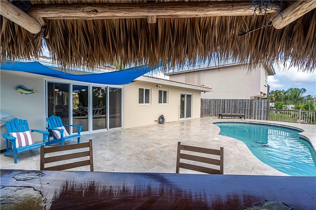 This 3/2 with marble pavers, pool, tiki hut, and spa in Cypress Harbor is perfect for entertaining! Tile roof and impact windows and doors. Granite counters and under air laundry. Updated electric. One fixed bridge that has 12 feet of clearance at high tide. This is a sought after street in Cypress Harbor!