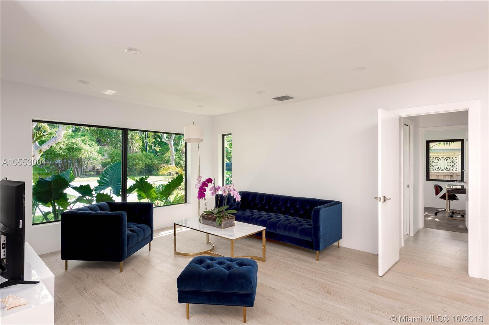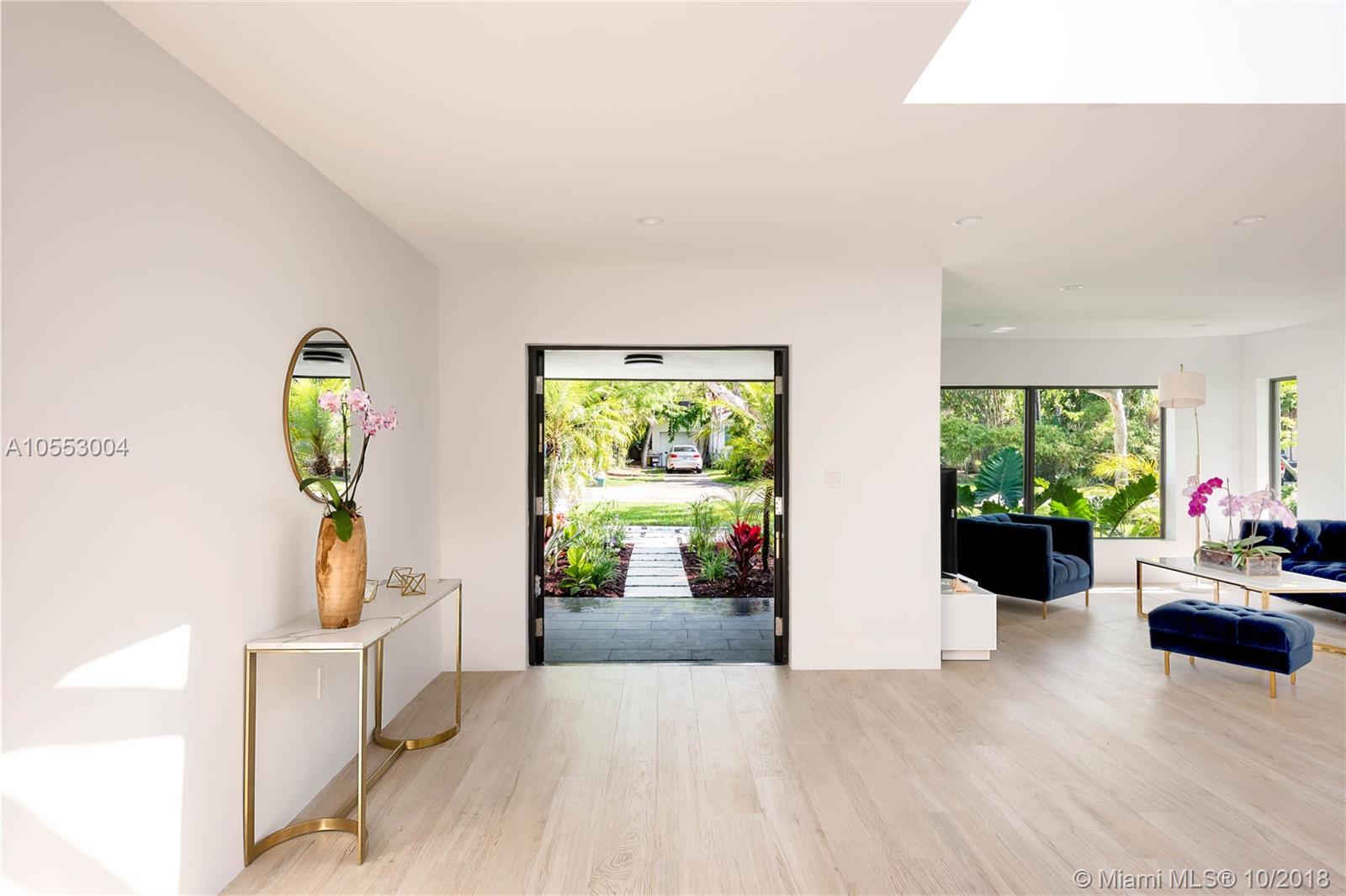 Dream house in Miami shore. Fully renovated with a unique 100sq/f Skylight on a quiet cul-de-sac street. Come to see this European style house made by a french designer. This stunning house features new roof, new high impact windows and steel double front doors, new A/C system and many more. The porcelain wood look tiles add a welcoming touch on this huge family room and integrated kitchen. The skylight, the numerous and large sliding doors transform the space into a true in/outdoor living experience. Come to see this breathtaking, modern and exclusive house. Other features: master suit with double shower and walking closet, big wood deck, outdoor patio, new garage, new pool resurfacing Inside tiles and stone, new sprinkler system, new driveway, and new inside and outside lighting system