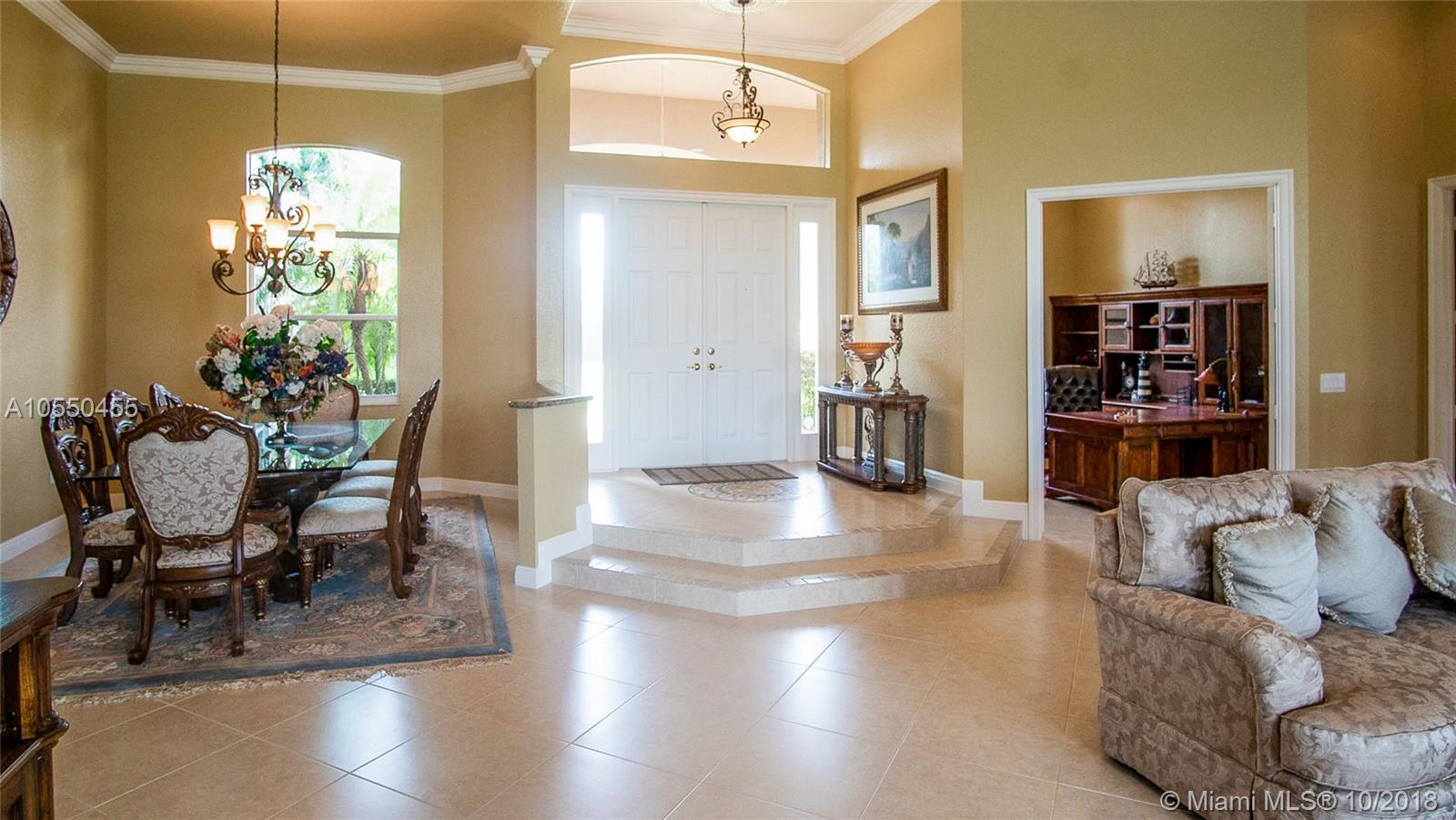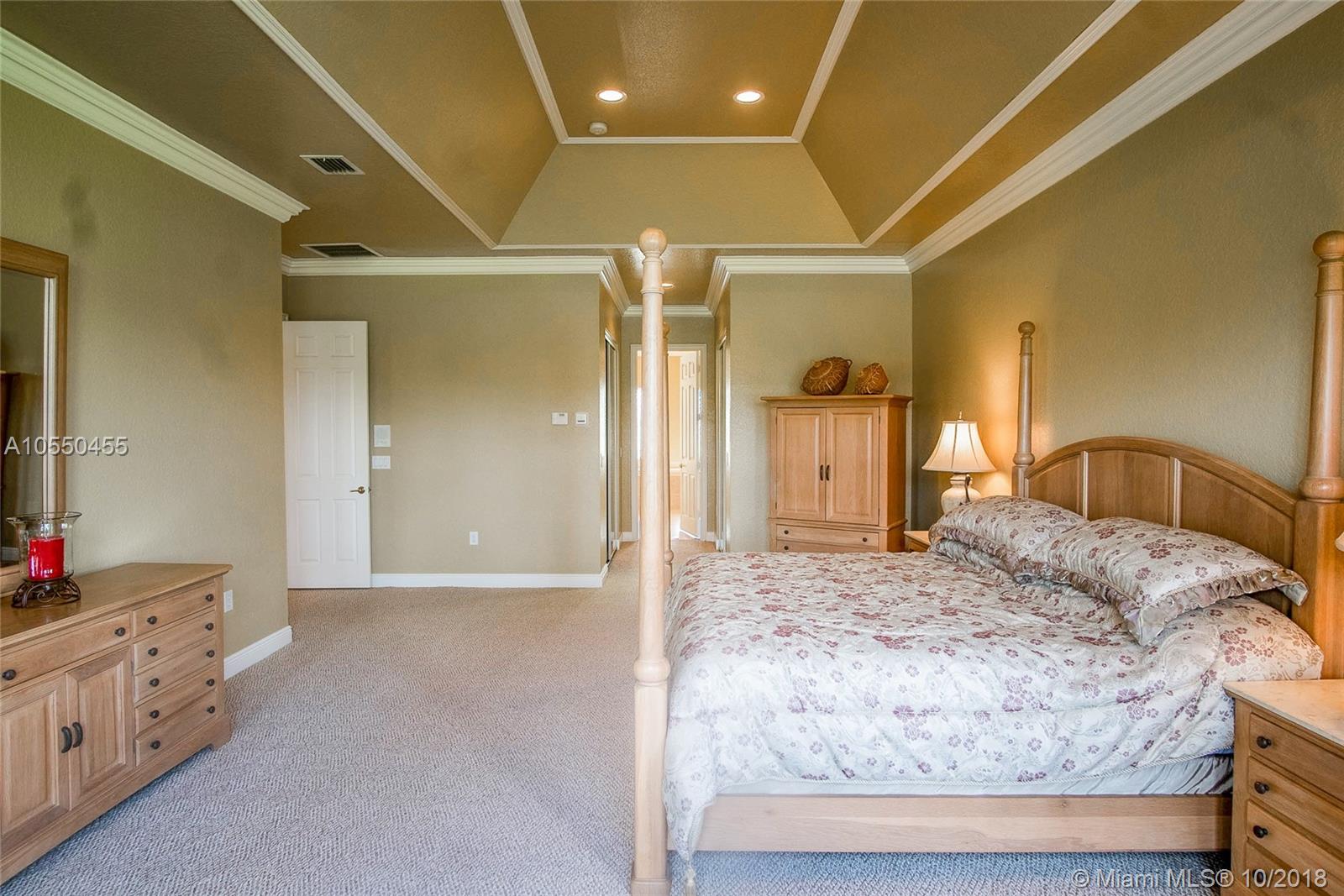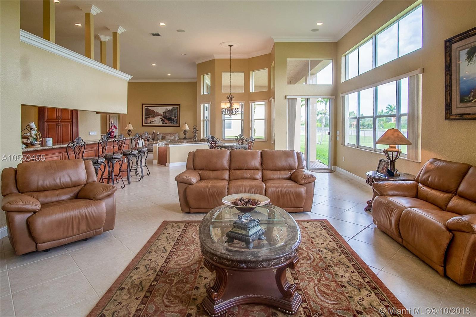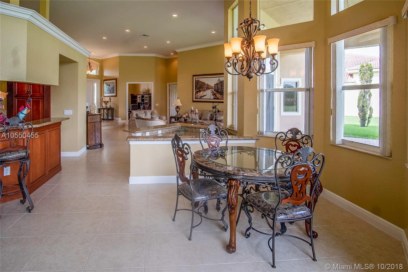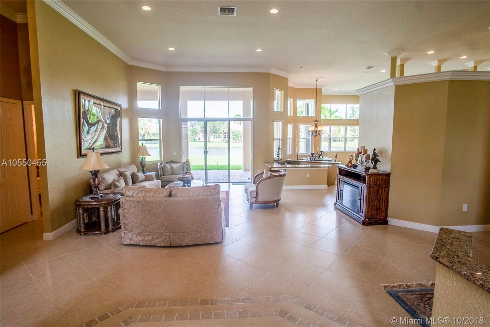 ABSOLUTELY SPECTACULAR HOME A MUST SEE!!! This home has all the imaginable upgrades including crown moulding in every room, tray ceiling in master, built-in sound system, wet bar, gorgeous tile floors, full guest/pool bathroom, all recessed lighting, walk-in kitchen pantry and much more. The 5th bedroom can be used as a den/office. The home has abundant natural light throughout. 3 zone a/c system in perfect condition as well as a new HWH. The home is situated on an expansive lot with a 180 degree lake view. All openings have shutters in the event of a storm. The home has never been lived in since originally purchased and perfectly maintained.