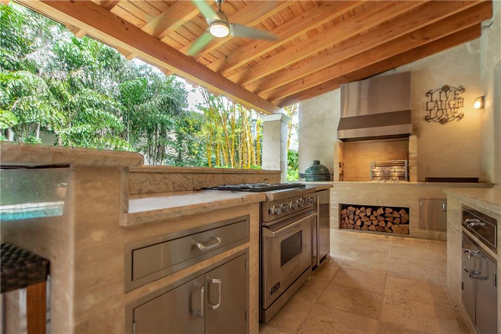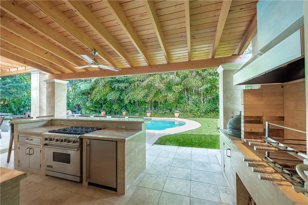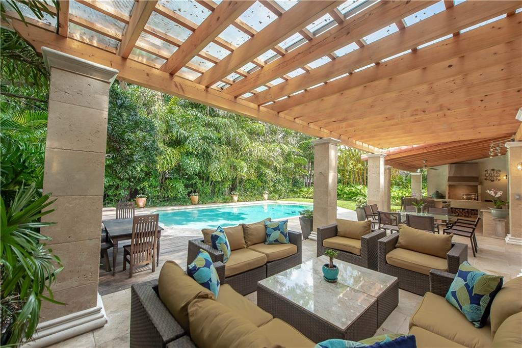 Superbly updated home designed for active living. Easy flowing indoor and outdoor living areas with wide rooms and high ceilings. Walls of French doors access a roofed terrace facing the huge pool, lushly landscaped gardens and lawn. The kitchen has ample areas for baking and chef's prep. Outdoors, the long bar faces a beverage center and adjacent second kitchen with a professional gas range. The master suite has a sunny office-sitting room, two generously sized walk-in closets and fabulous bath. On a large walled and gated lot, the house is perfectly located across from Victoria Park with access for paddle boarding and kayaking. Adjacent property at 1 N Victoria Park Road is also available. Properties may be combined to create a magnificent (nearly half acre) compound. See MLS# F10156861